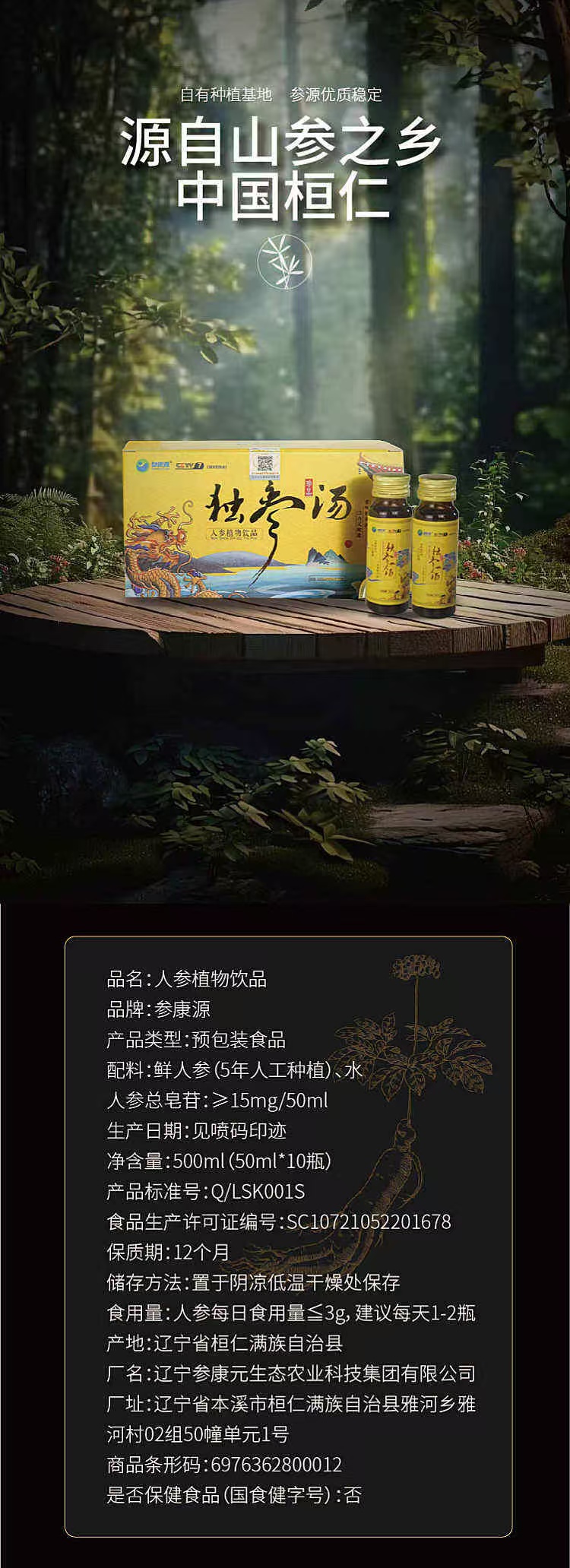【蓝十字】参康源 独参汤人参饮料饮品 500ml/盒