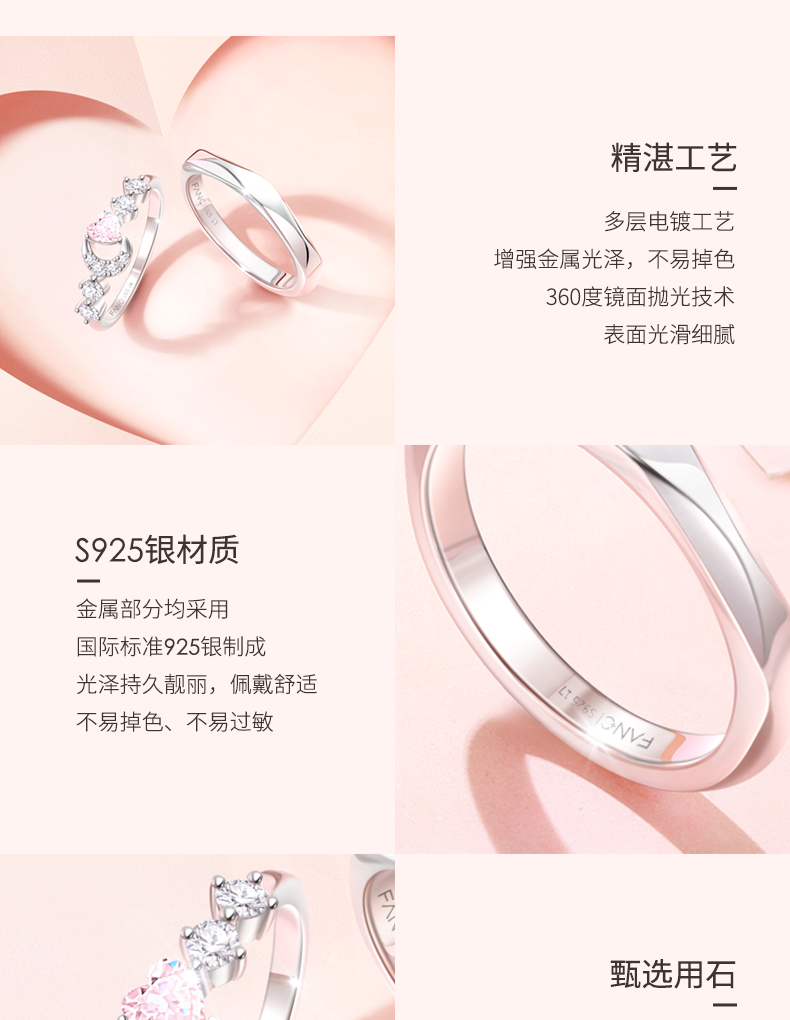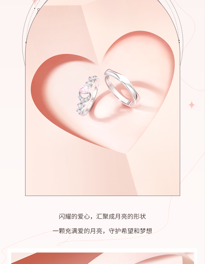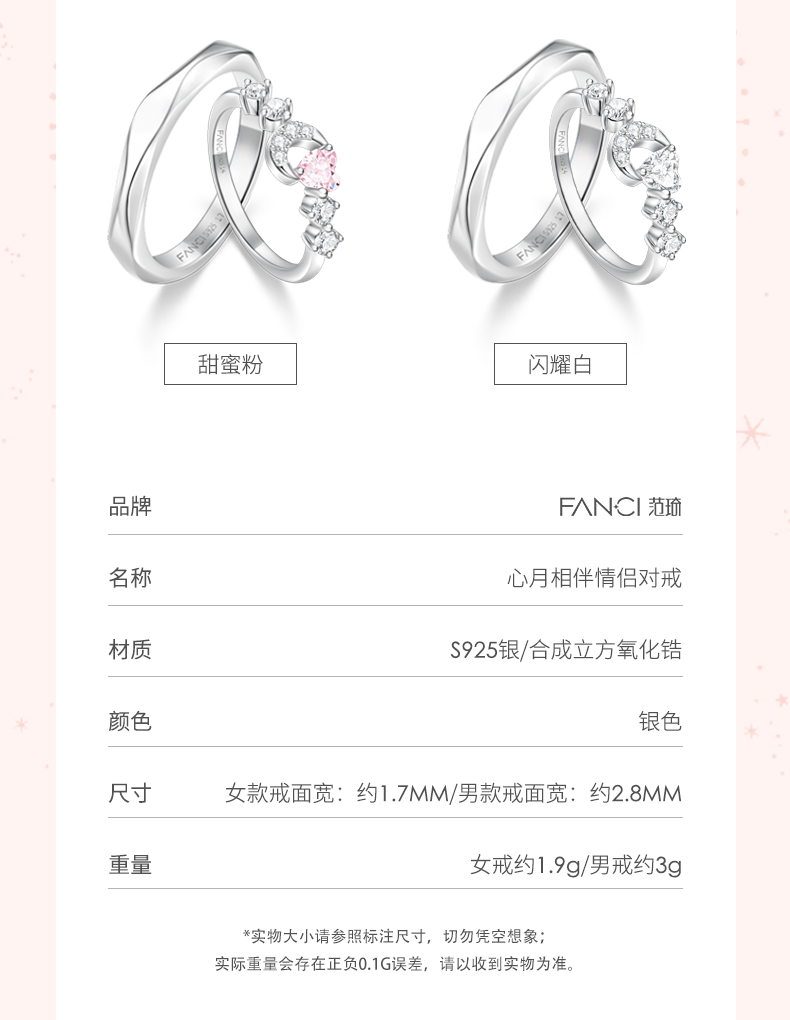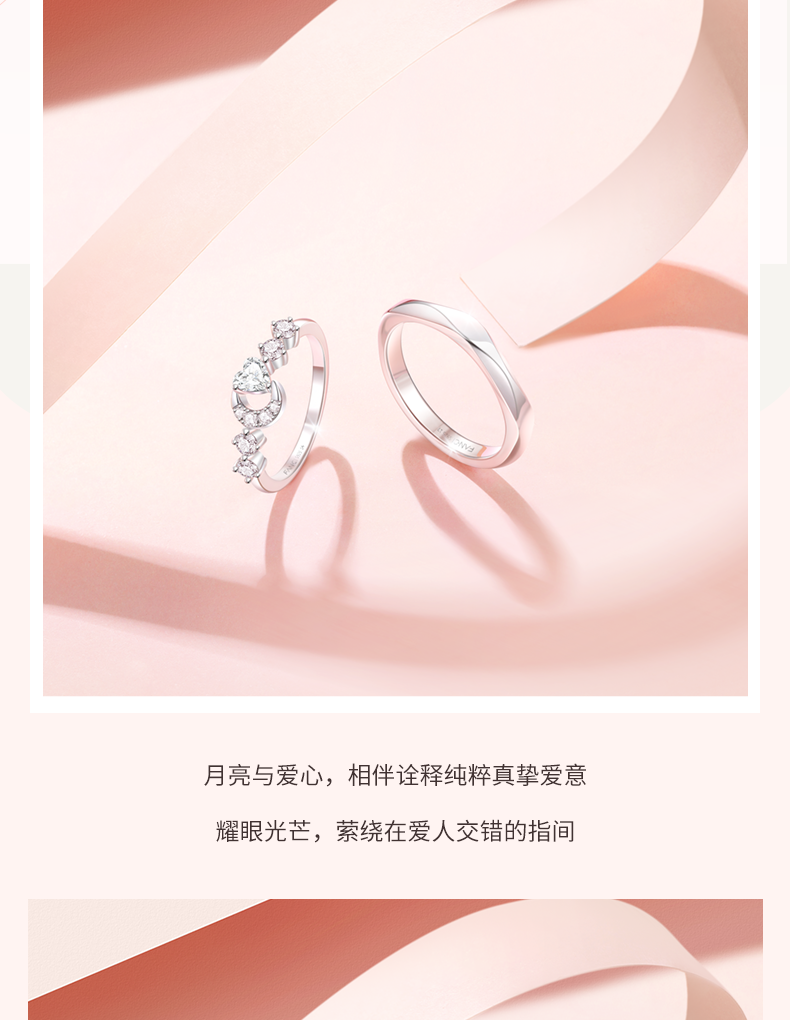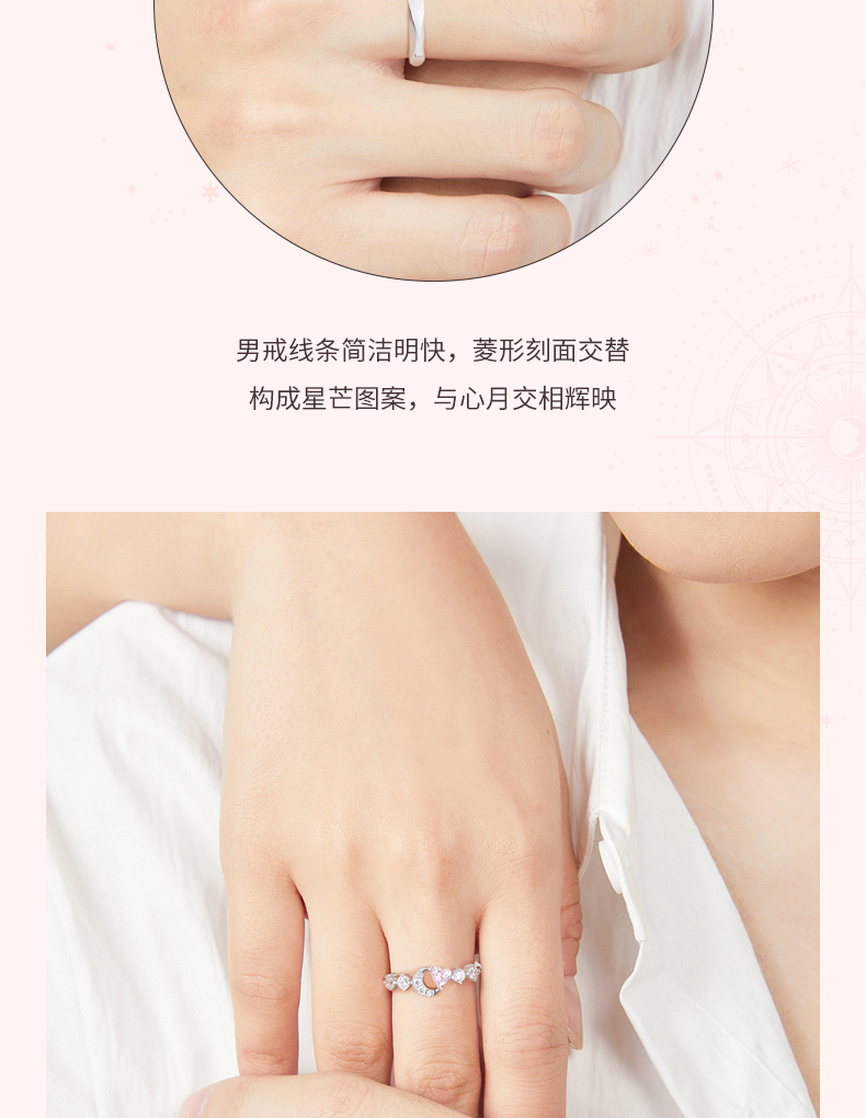 Fanci范琦【幻梦心月系列】心月相伴情侣对戒925银小众设计戒指纪念日女友送礼物