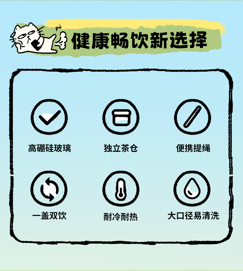 bablov玻璃吸管杯茶水分离泡茶水杯女生高颜值便携杯子耐高温学生