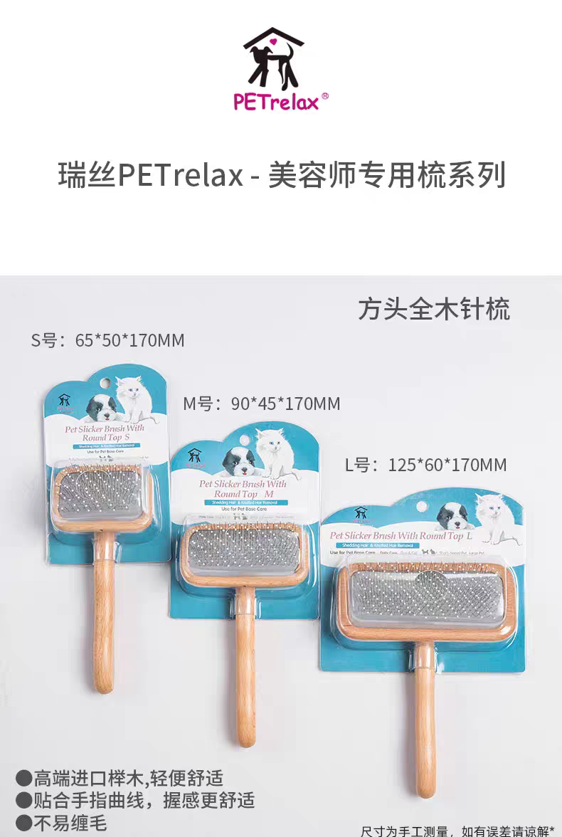 PETrelax木柄方形梳