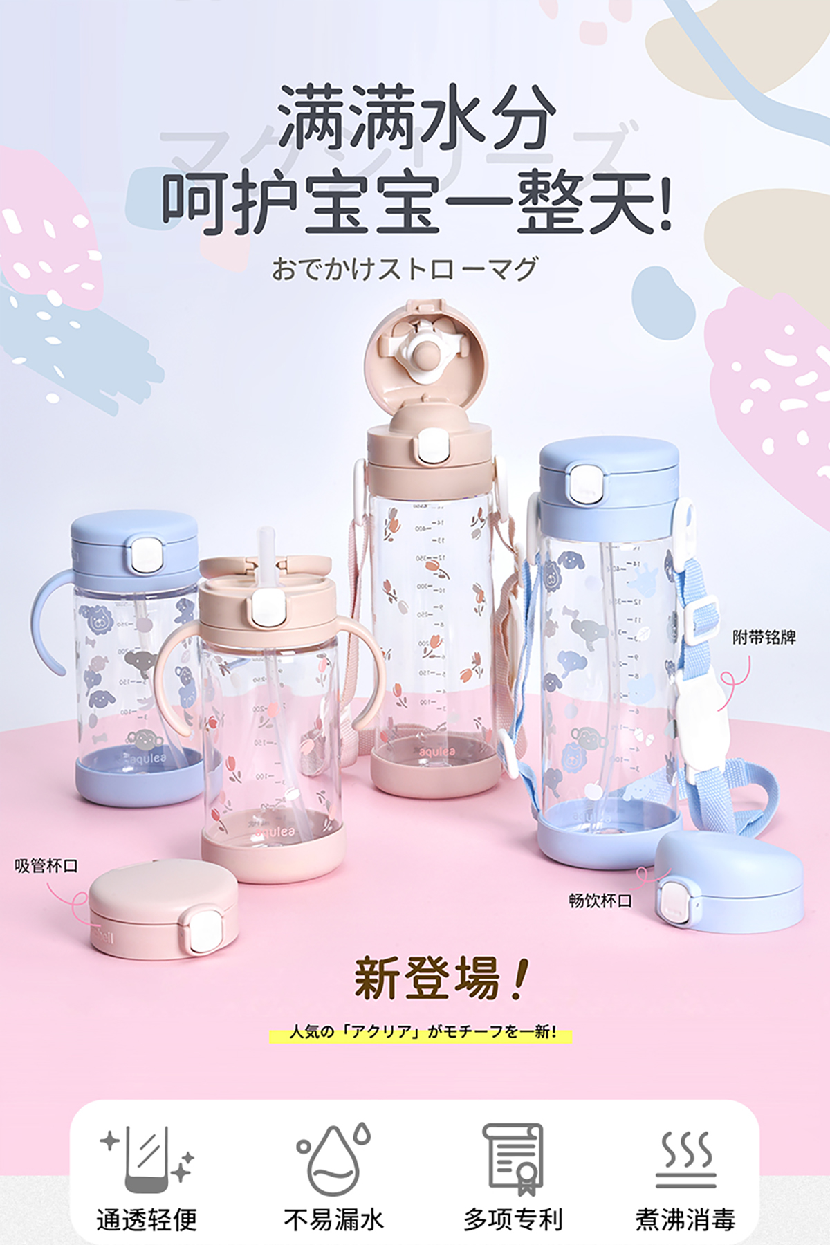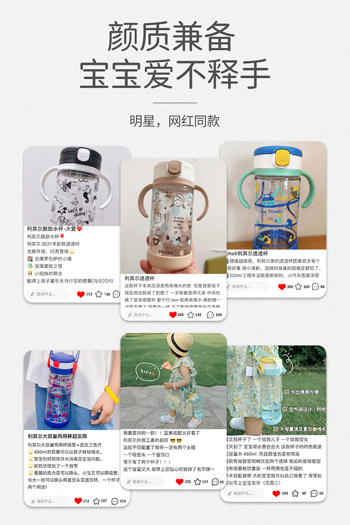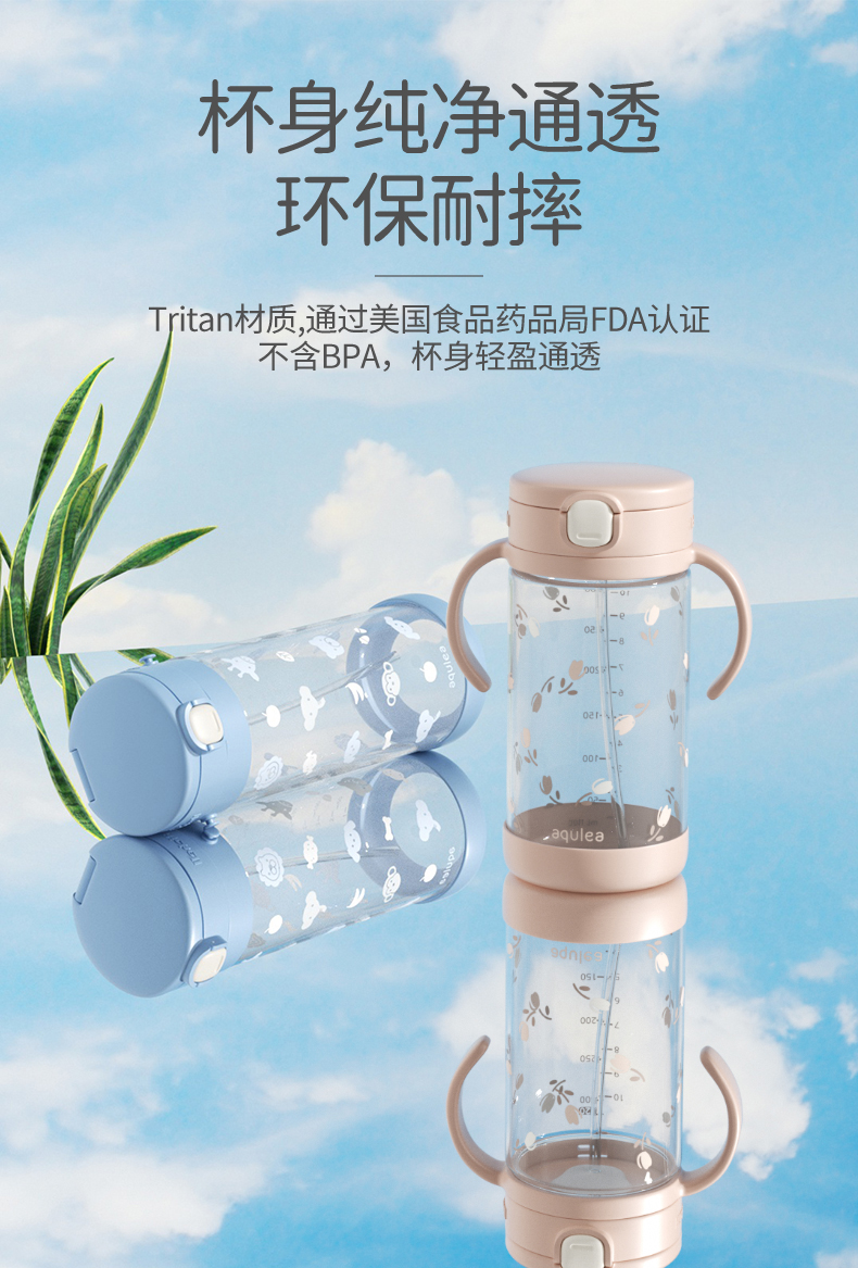 利其尔儿童水杯宝宝喝奶婴儿奶瓶学饮杯家用外出吸管杯直饮防呛