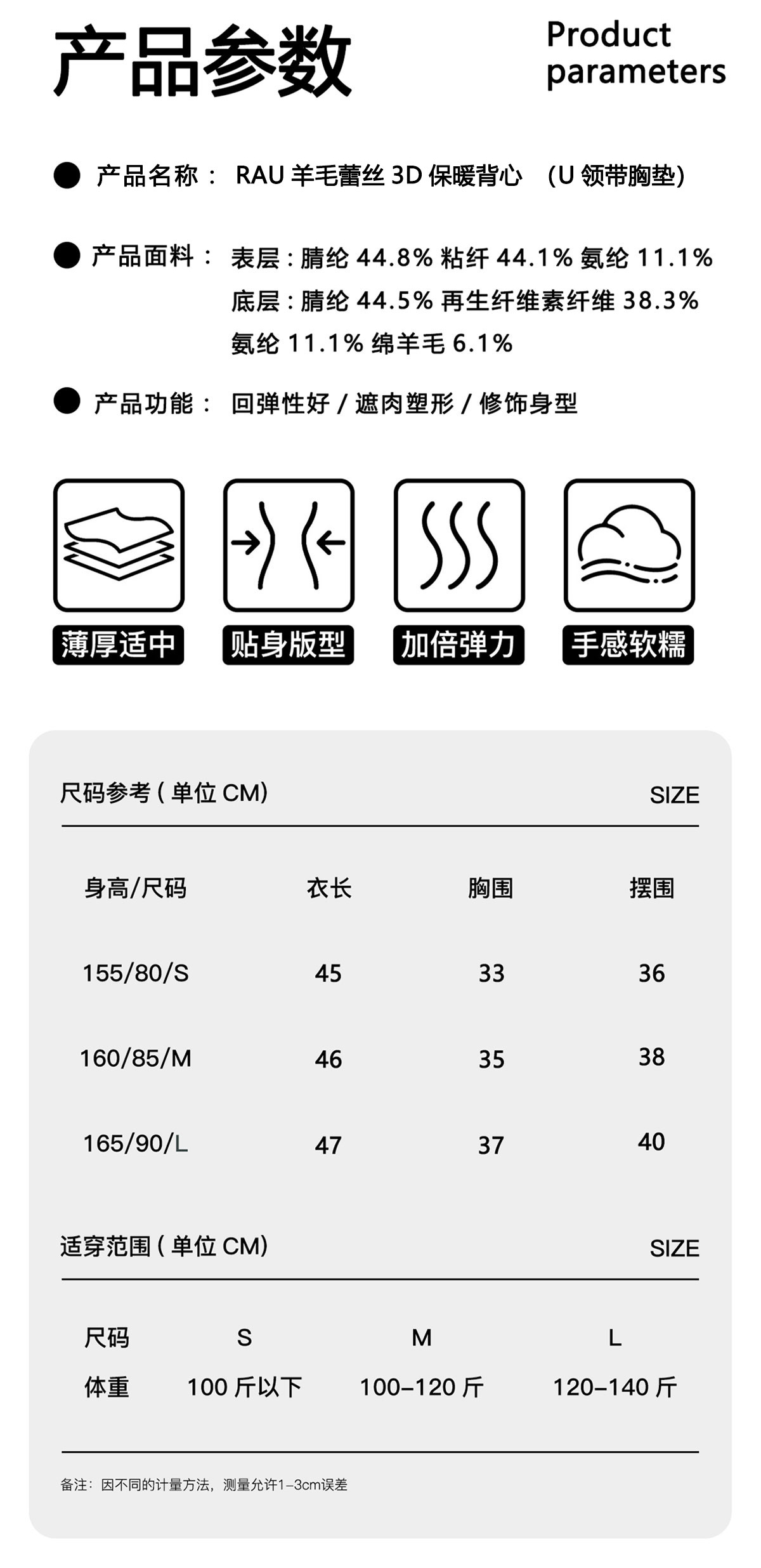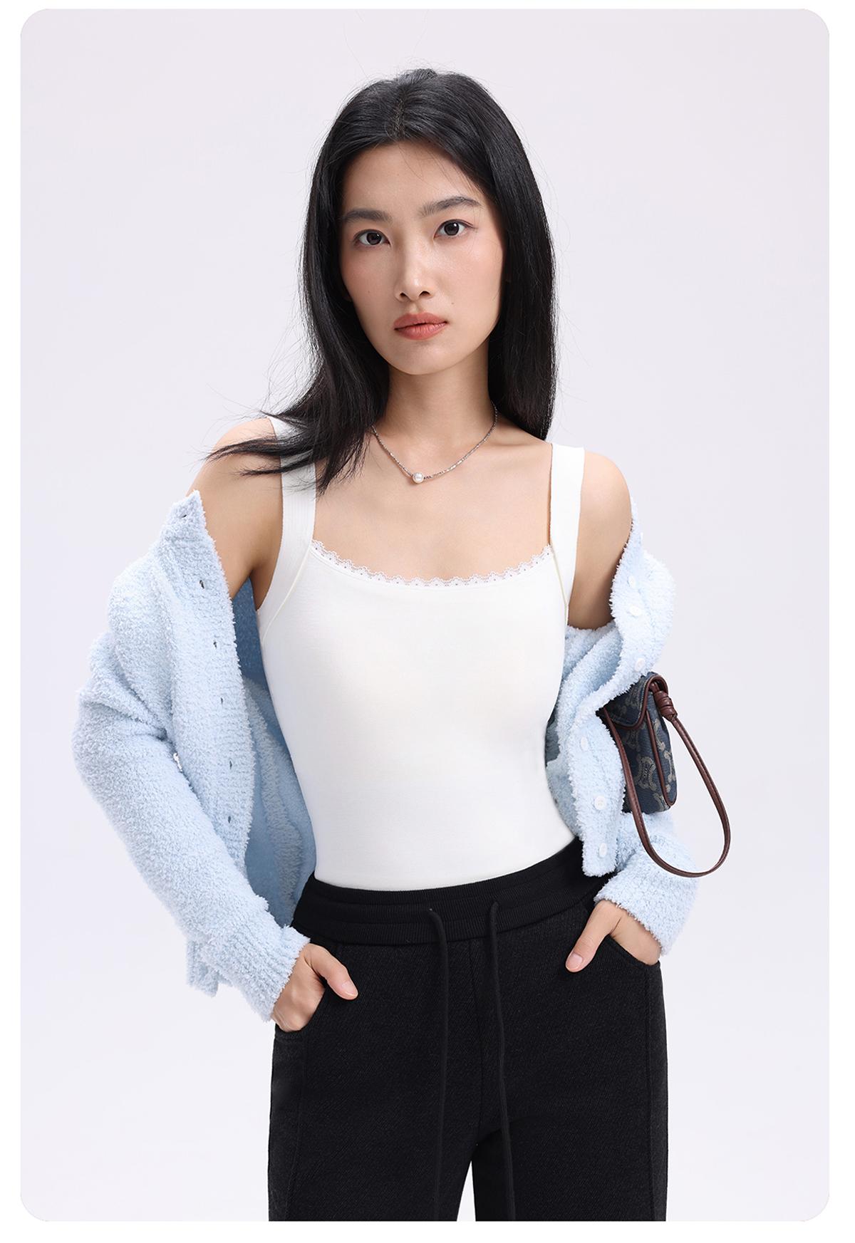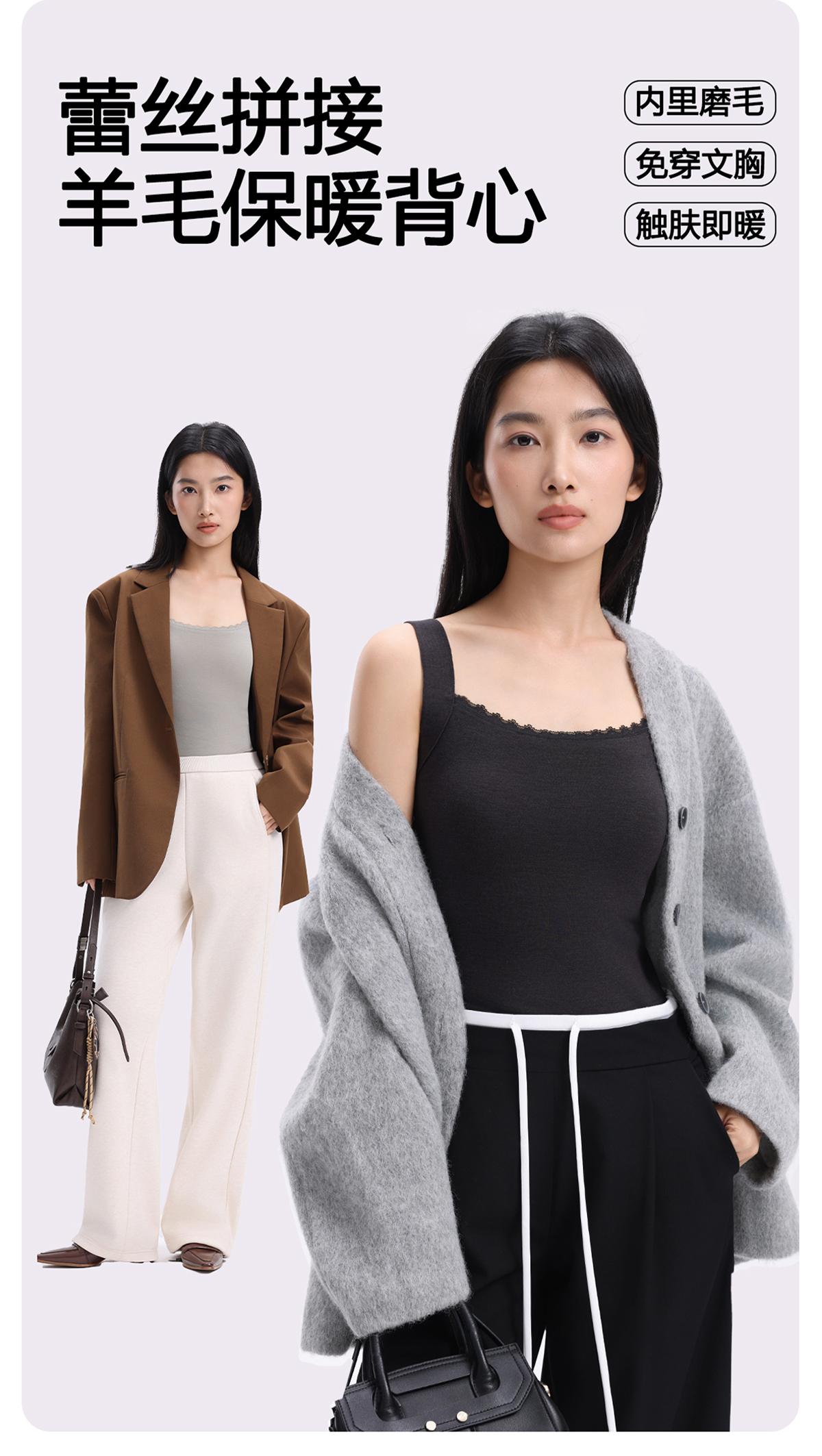 【秋冬好物】RAU羊毛蕾丝3D保暖背心【u型带胸垫】【福利品】