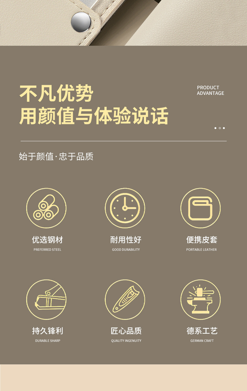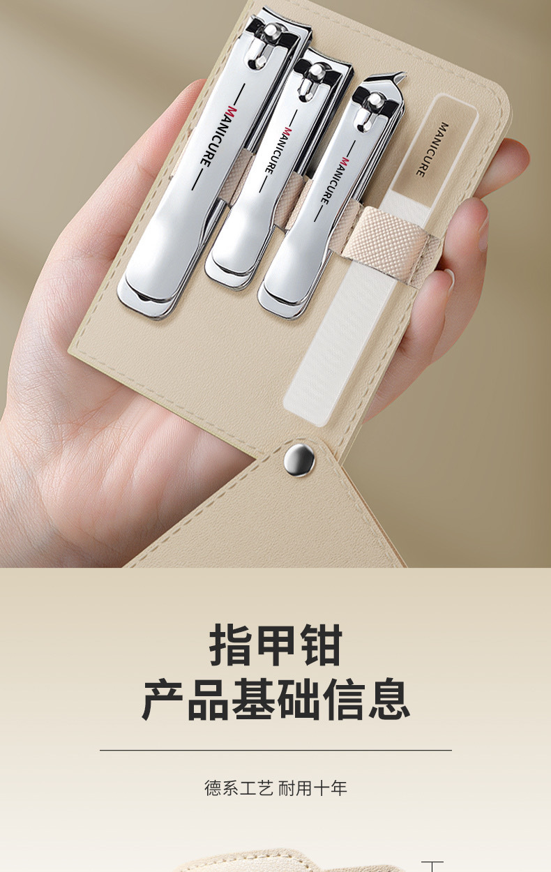 「4件套!精美PU皮套」指甲刀4件套不锈钢指甲套装 居家日用随身便携修甲美容美甲工具指甲刀钳