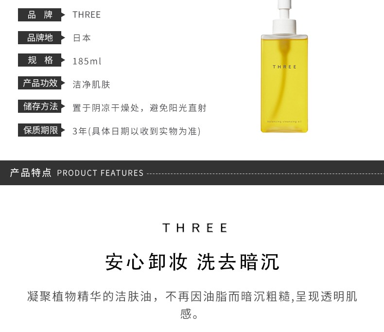 Pola旗下Three有机植物温和卸妆油,不添加任何色素,含88%的天然成分,孕妇也可以用!味道很好闻,