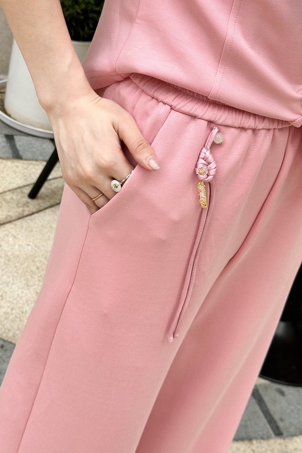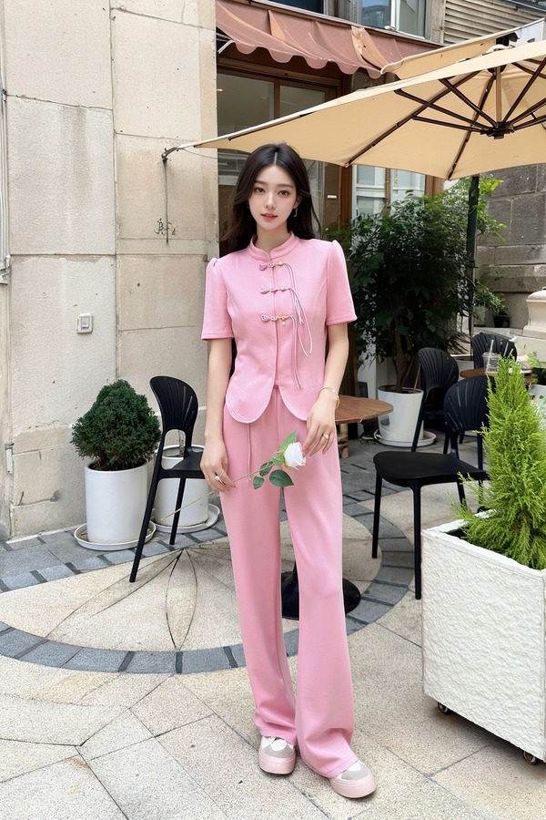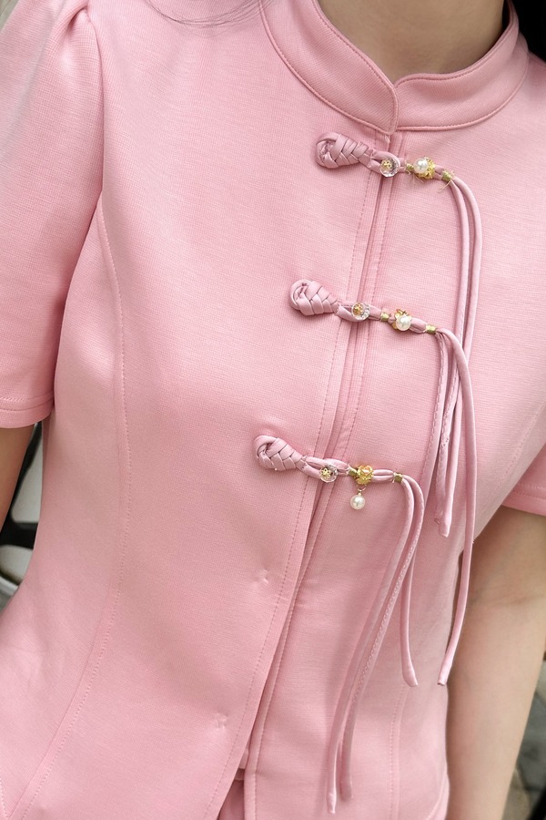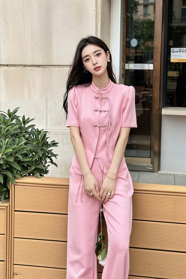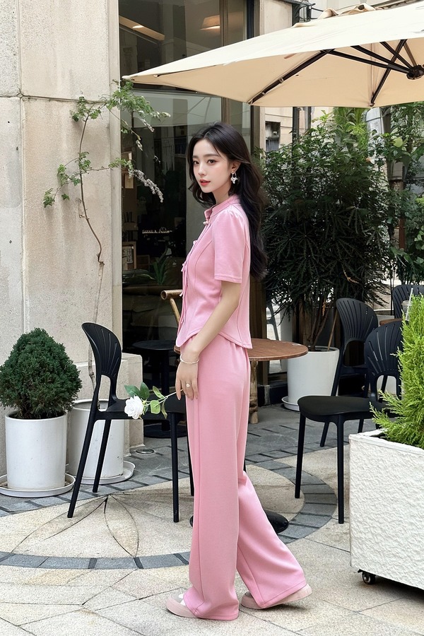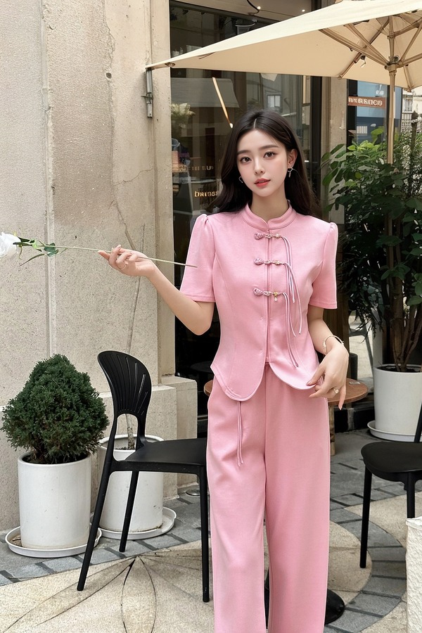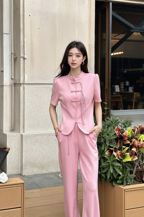 HAYES 粉色新中式盘扣上衣长裤套装 20330