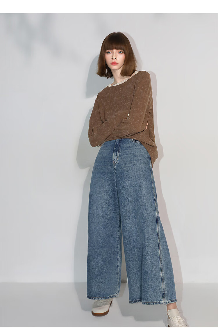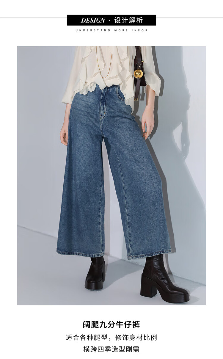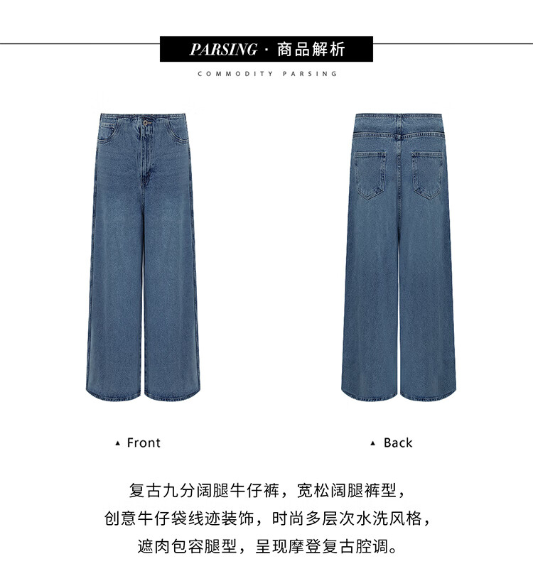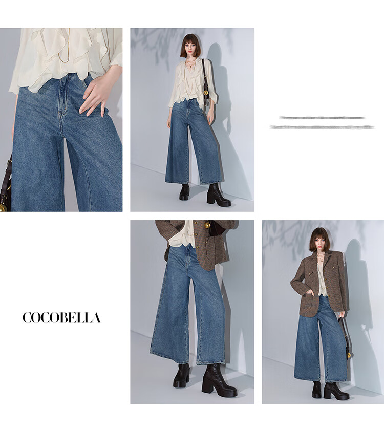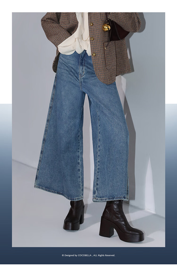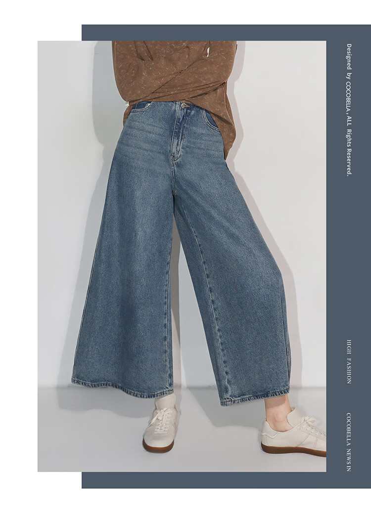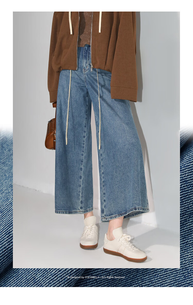 COCOBELLA高街复古九分牛仔裤女早秋宽松遮胯直筒阔腿裤DN87