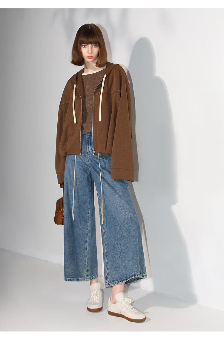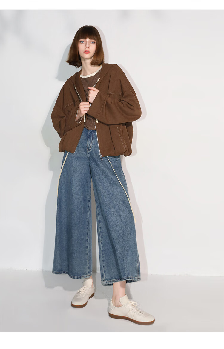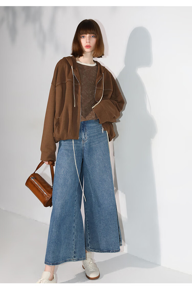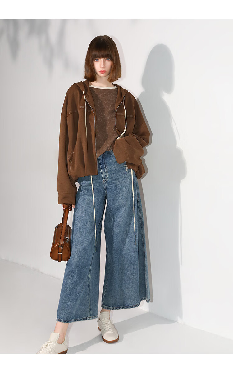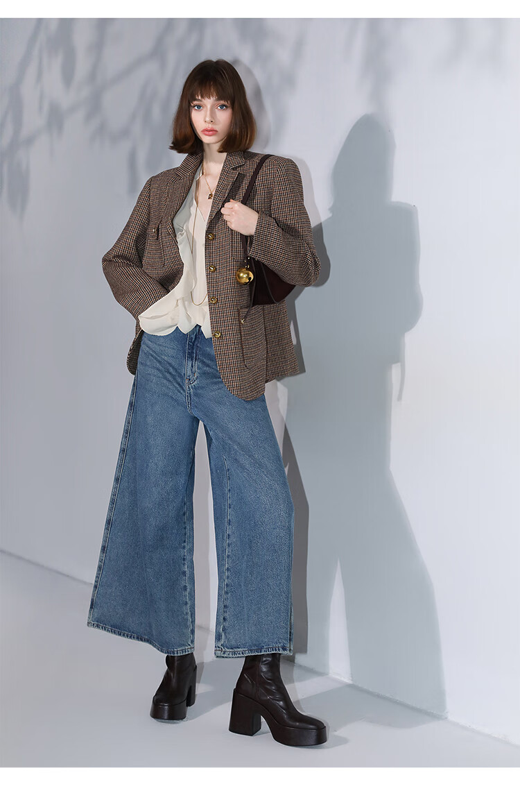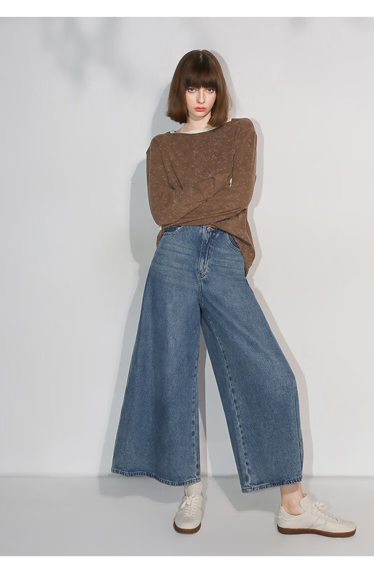COCOBELLA高街复古九分牛仔裤女早秋宽松遮胯直筒阔腿裤DN87