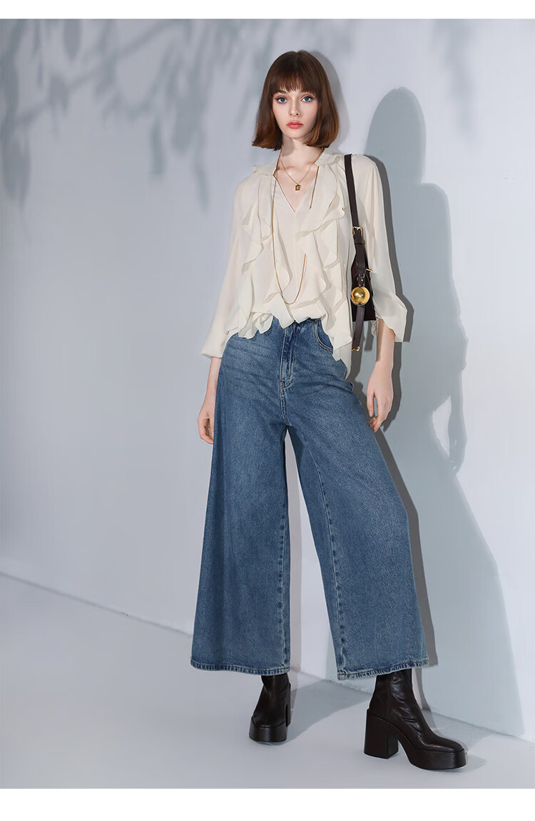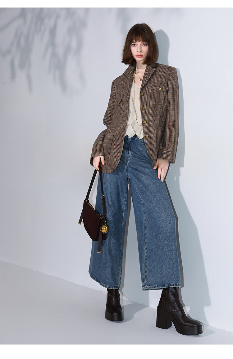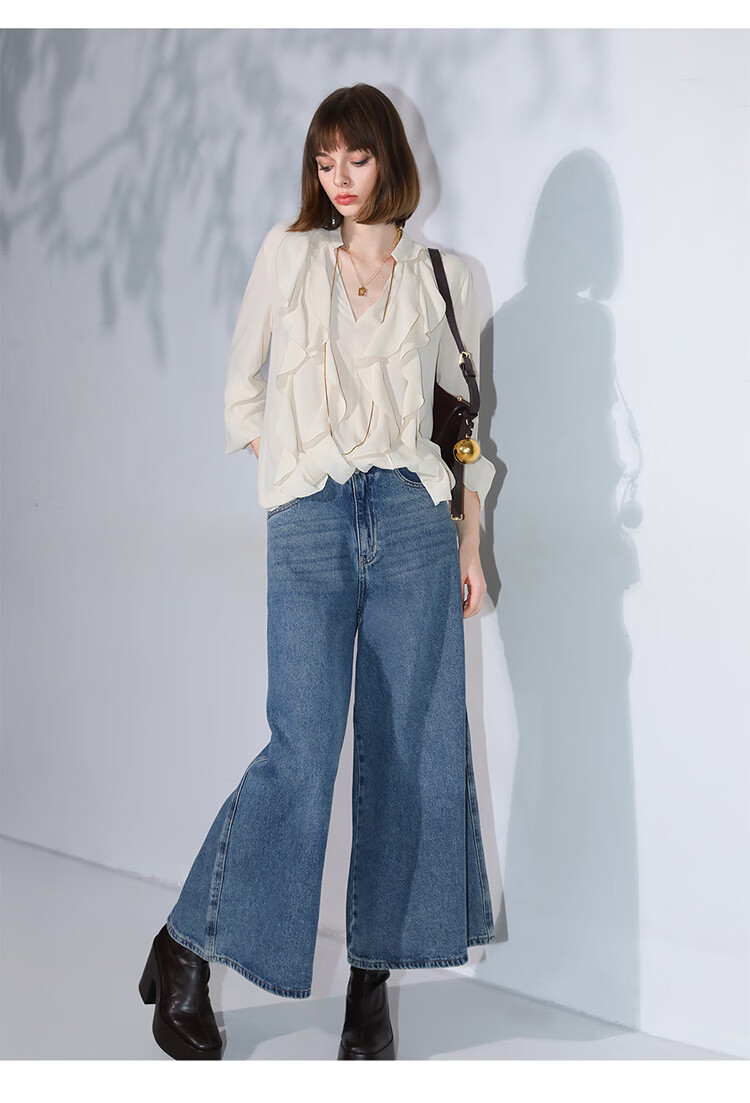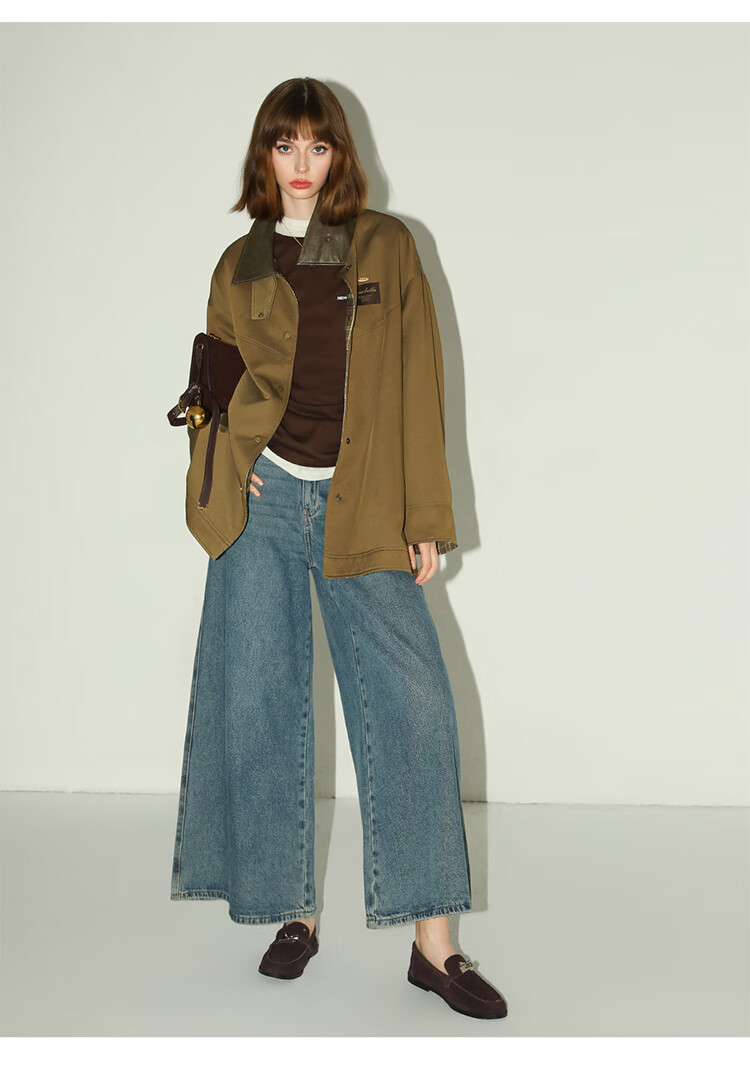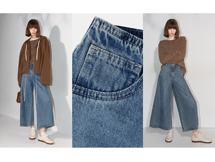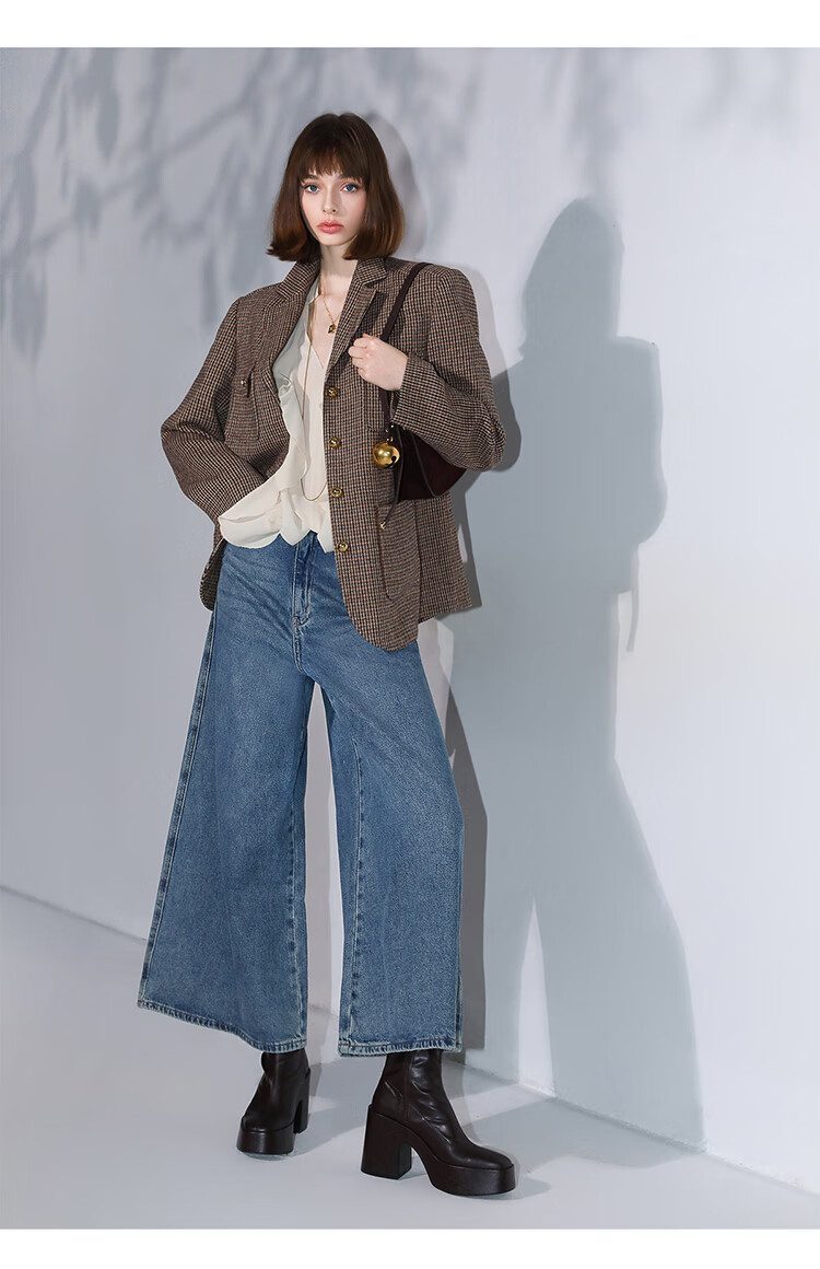 COCOBELLA高街复古九分牛仔裤女早秋宽松遮胯直筒阔腿裤DN87
