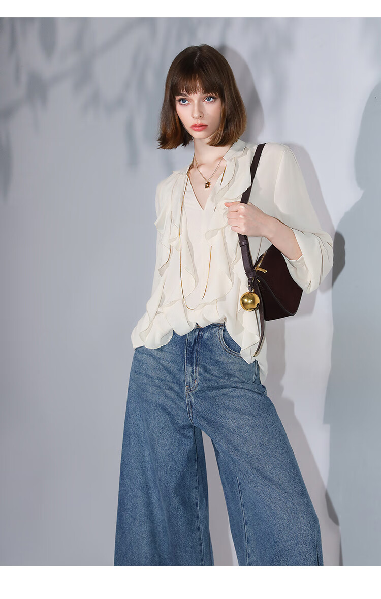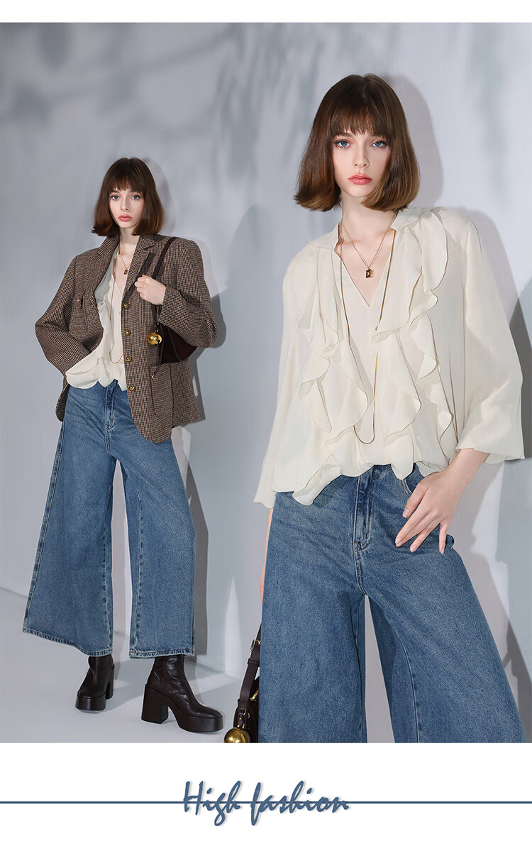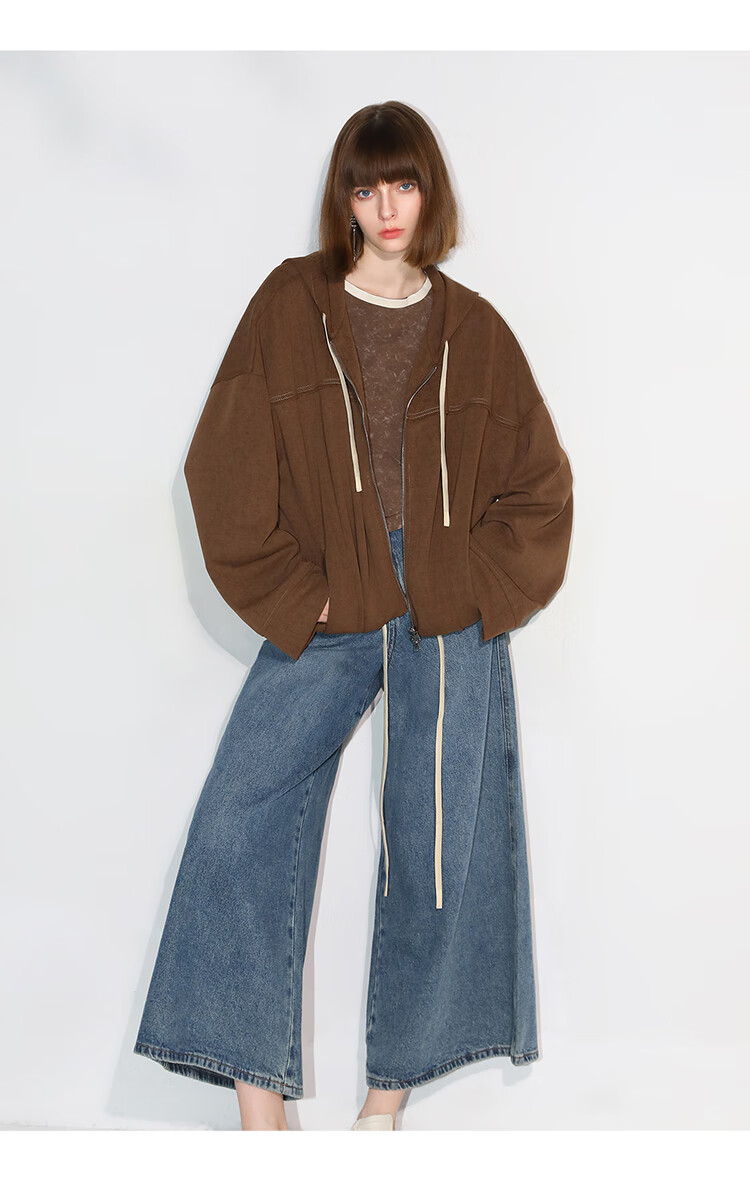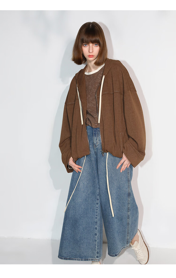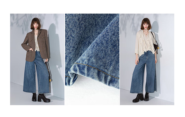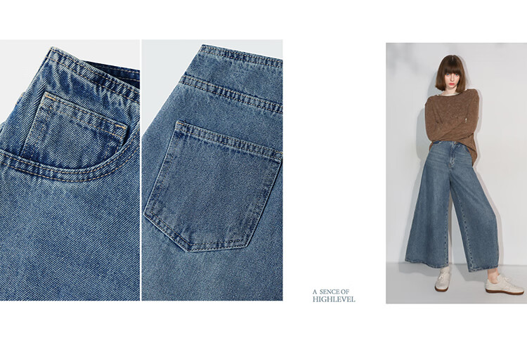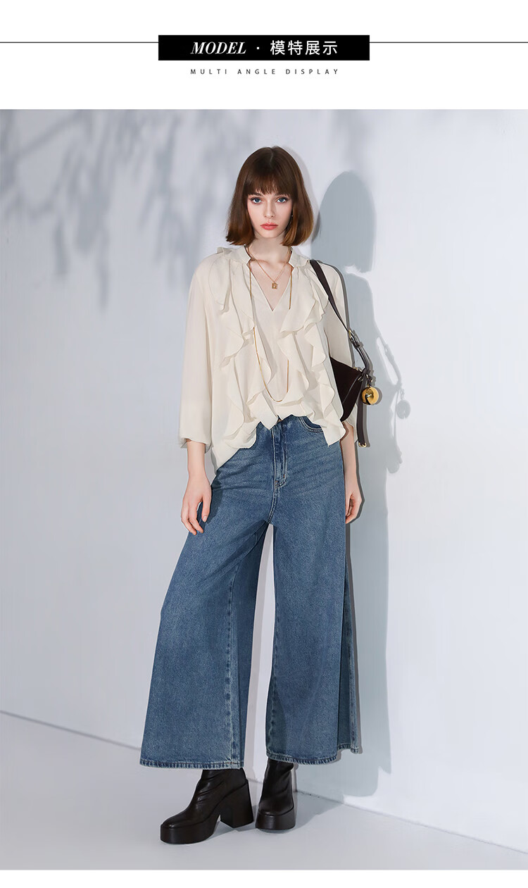 COCOBELLA高街复古九分牛仔裤女早秋宽松遮胯直筒阔腿裤DN87