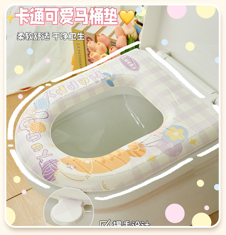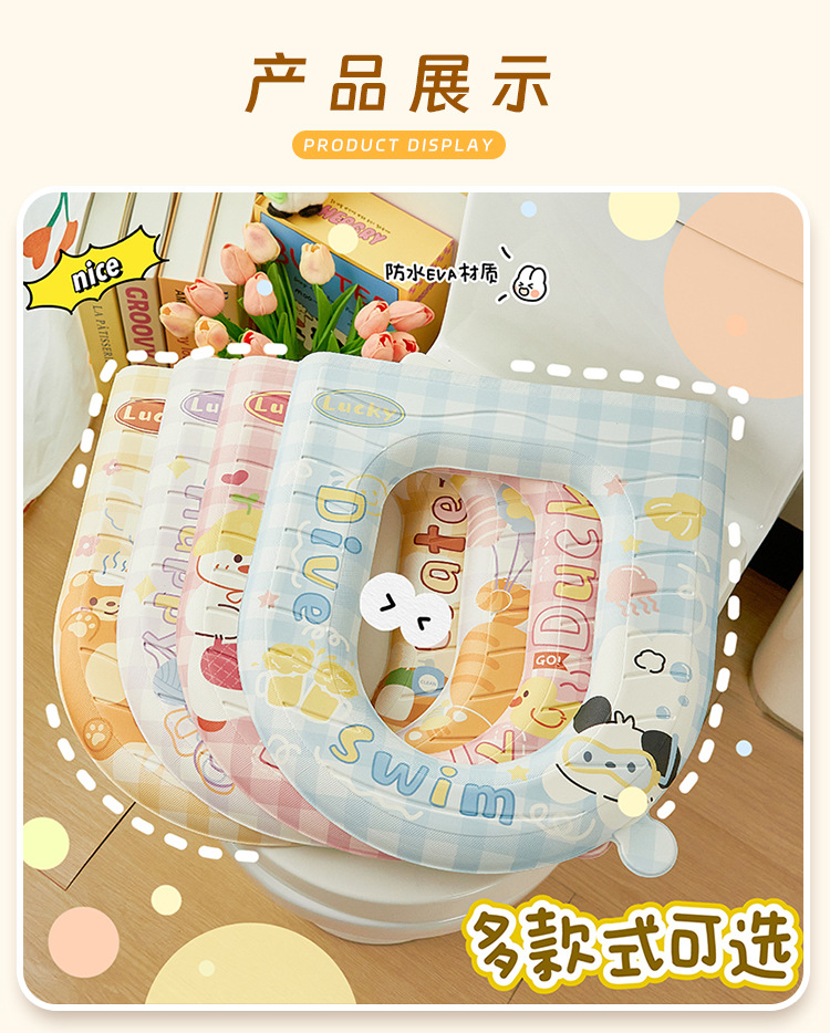 「四款可选!可爱卡通马桶垫」防水马桶垫子 四季通用EVA粘贴式可爱坐便器垫圈套子厕所居家日用坐垫