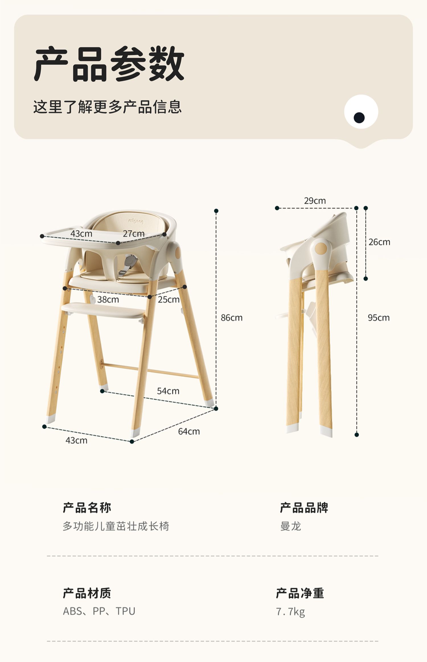 【曼龙】宝宝餐椅儿童茁壮成长椅可折叠多功能成长餐椅婴儿吃饭学习椅