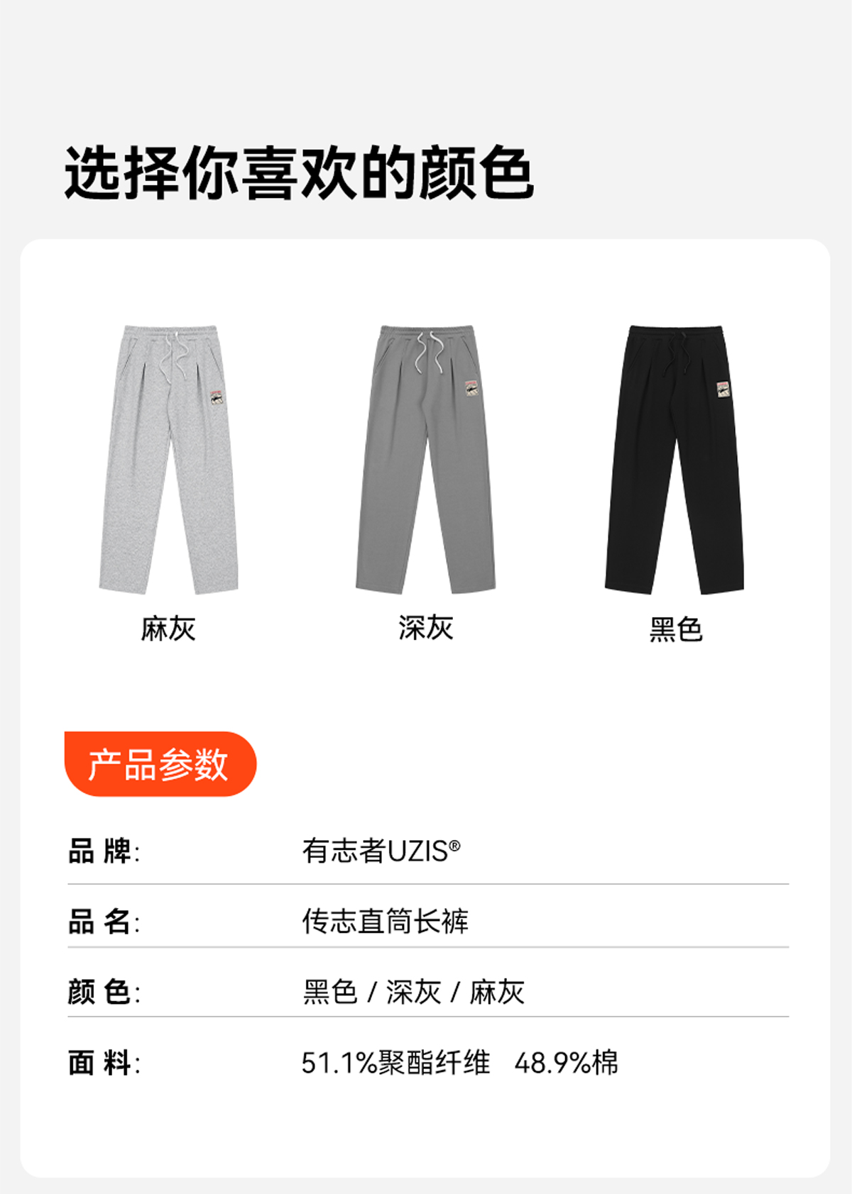 有志者UZIS 美式运动长裤男篮球跑步健身训练宽松针织直筒裤[传志