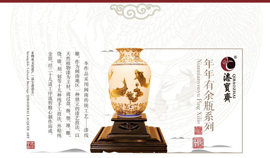 福建省非物质文化遗产 厦门老字号 漆宝斋年年有鱼漆线雕系列 9寸