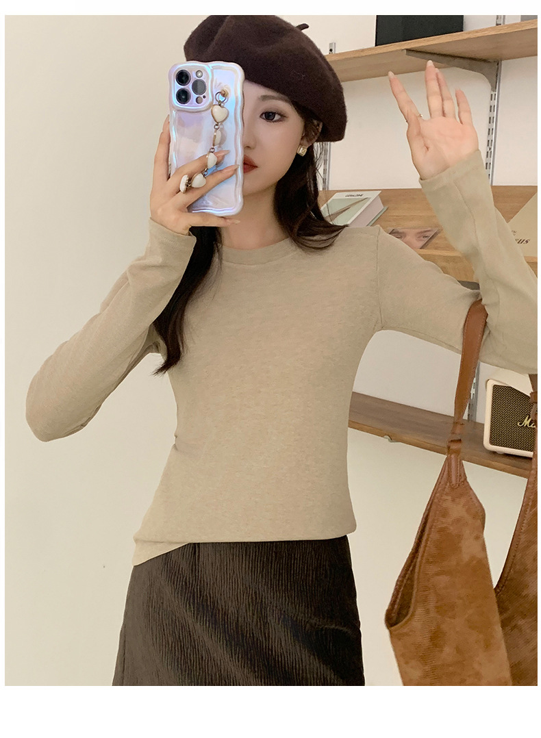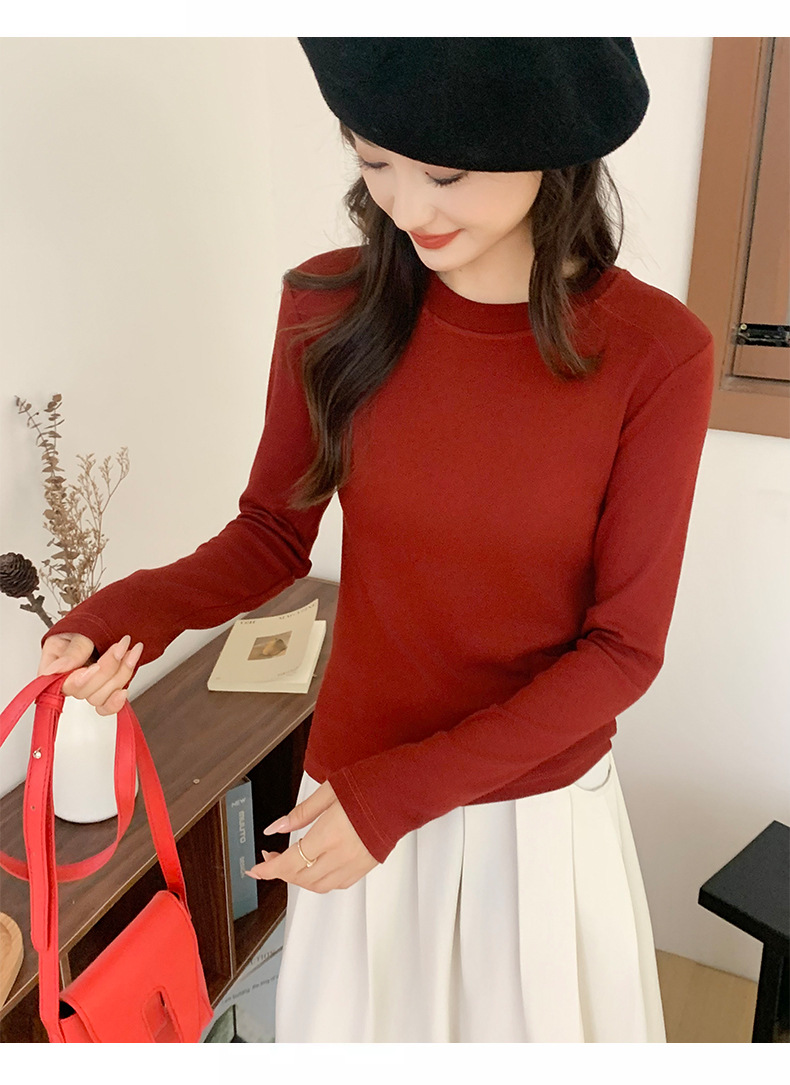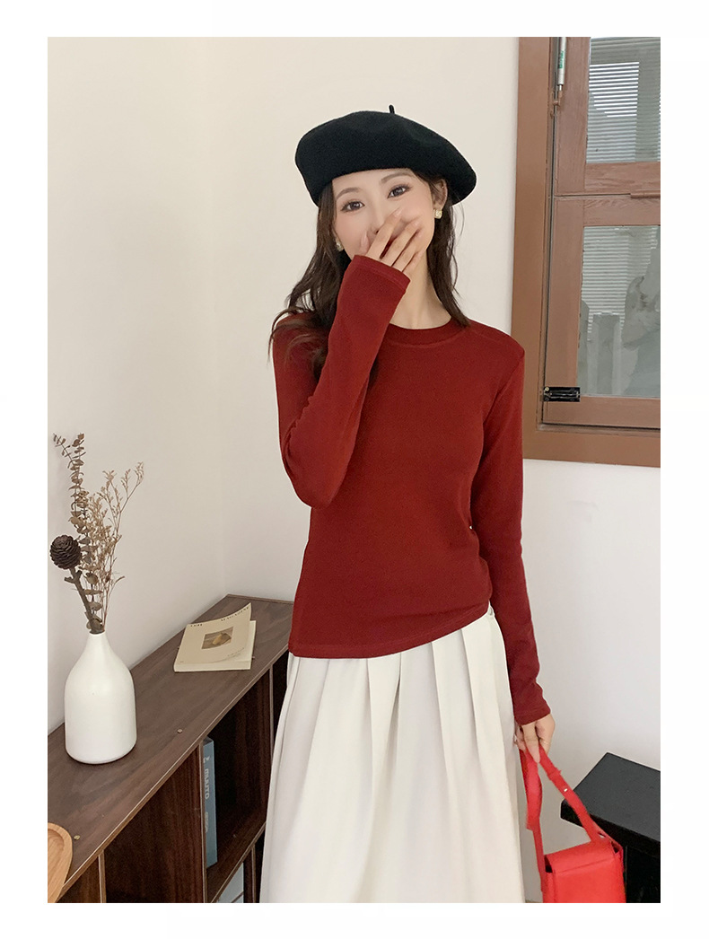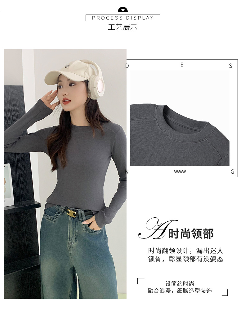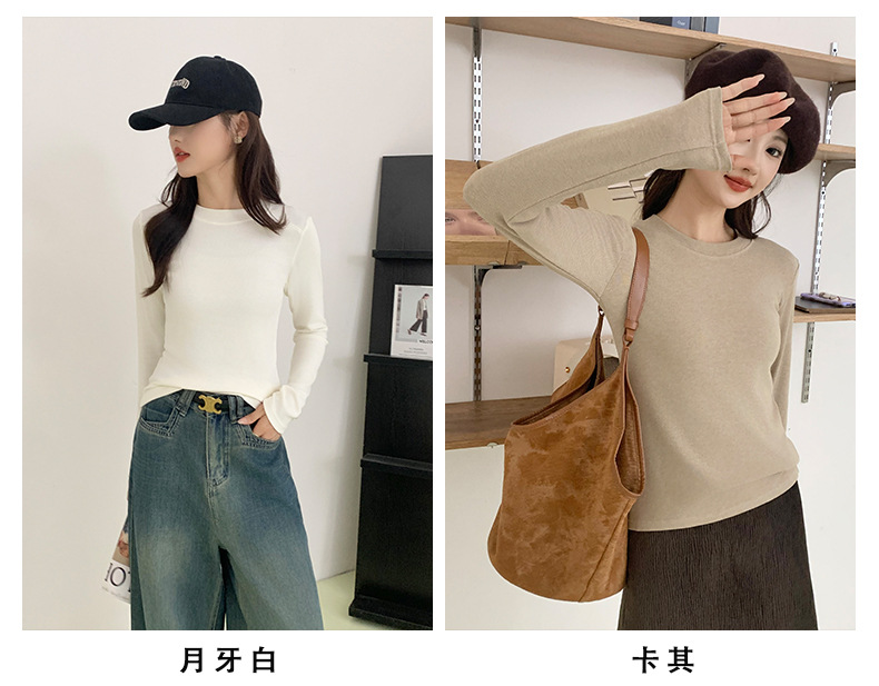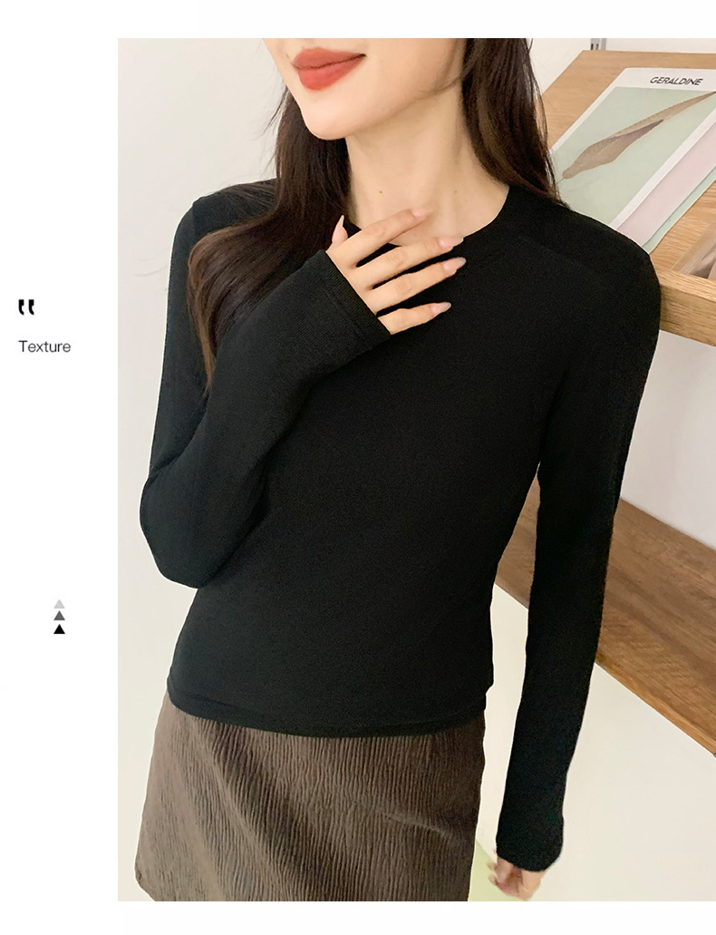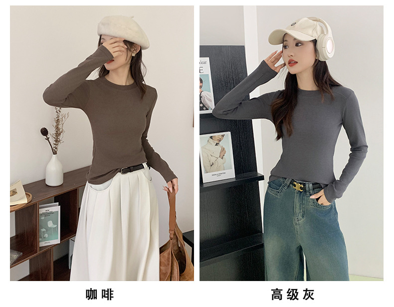 秋冬螺纹诺羊绒圆领打底衫秋季女t恤内搭长袖上衣可外穿针织衫 商品图6