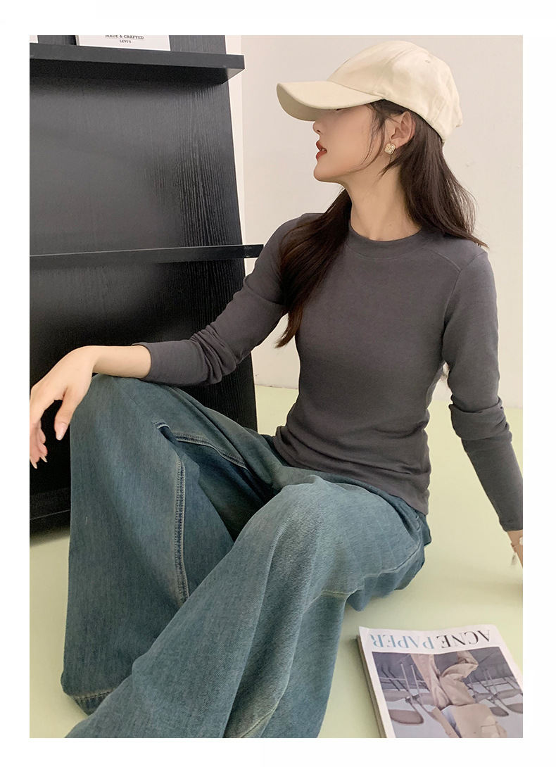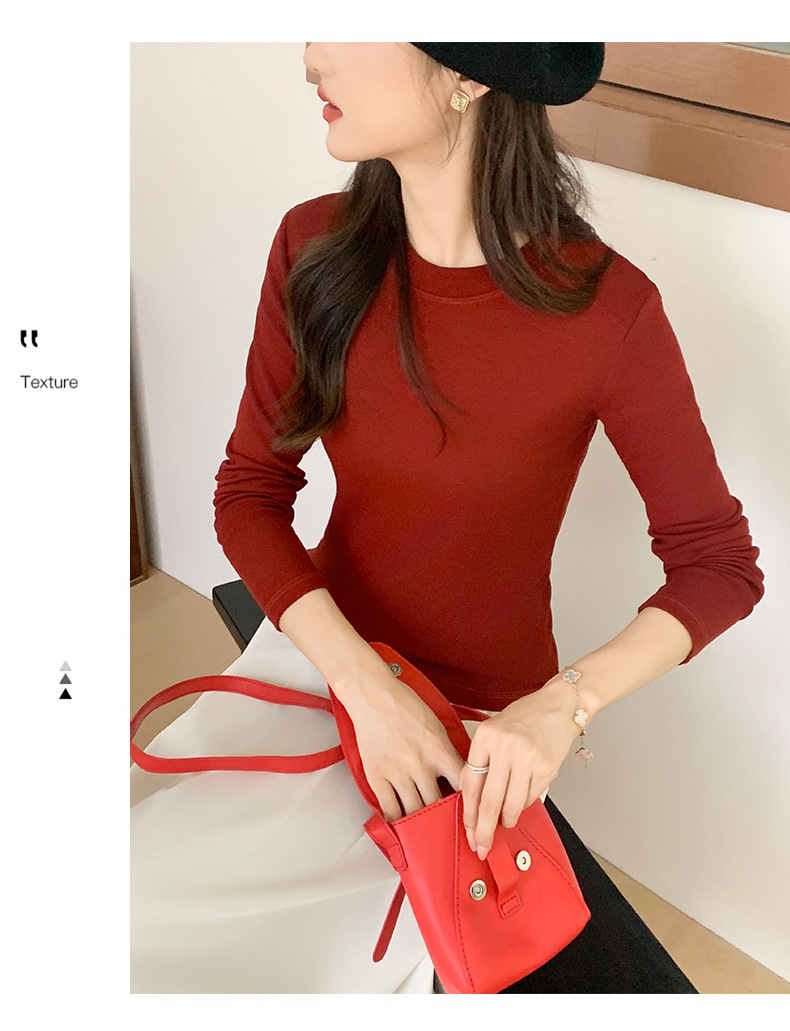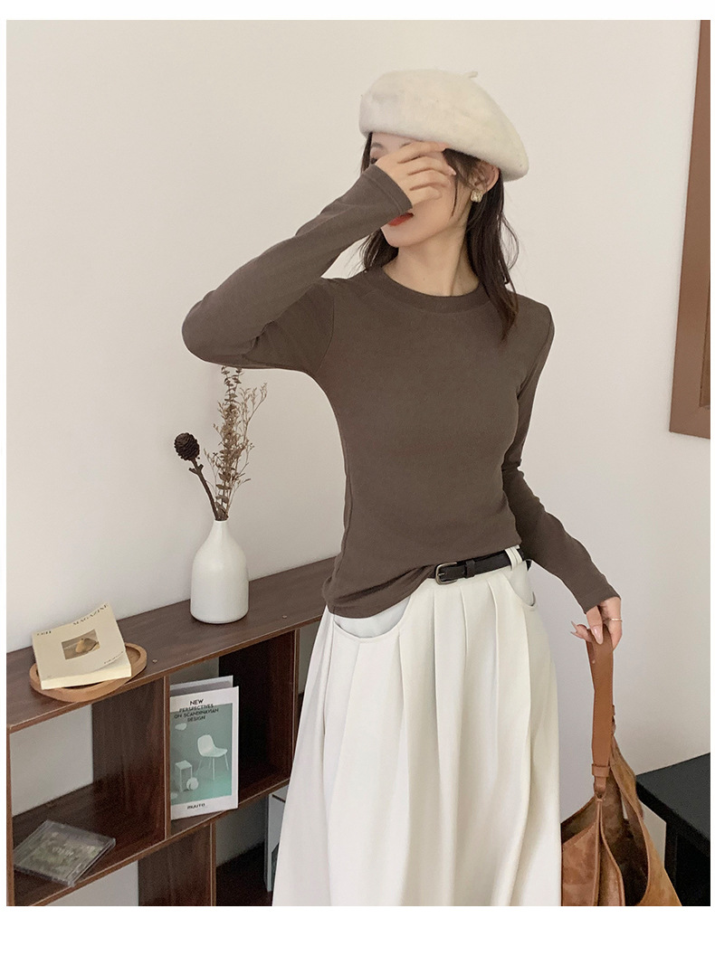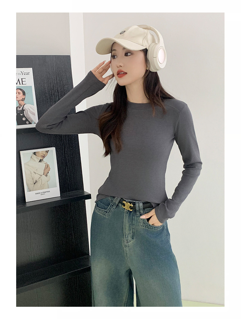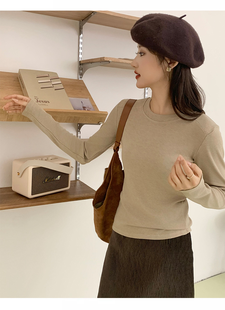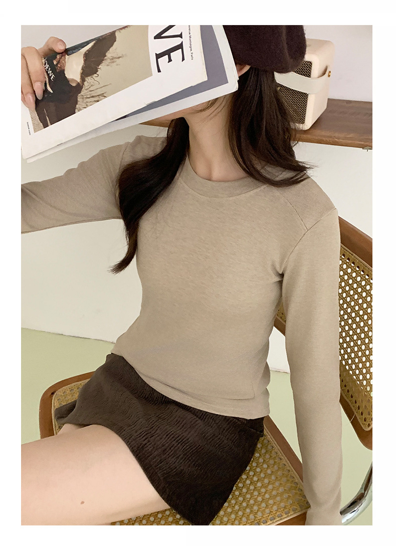 秋冬螺纹诺羊绒圆领打底衫秋季女t恤内搭长袖上衣可外穿针织衫 商品图6