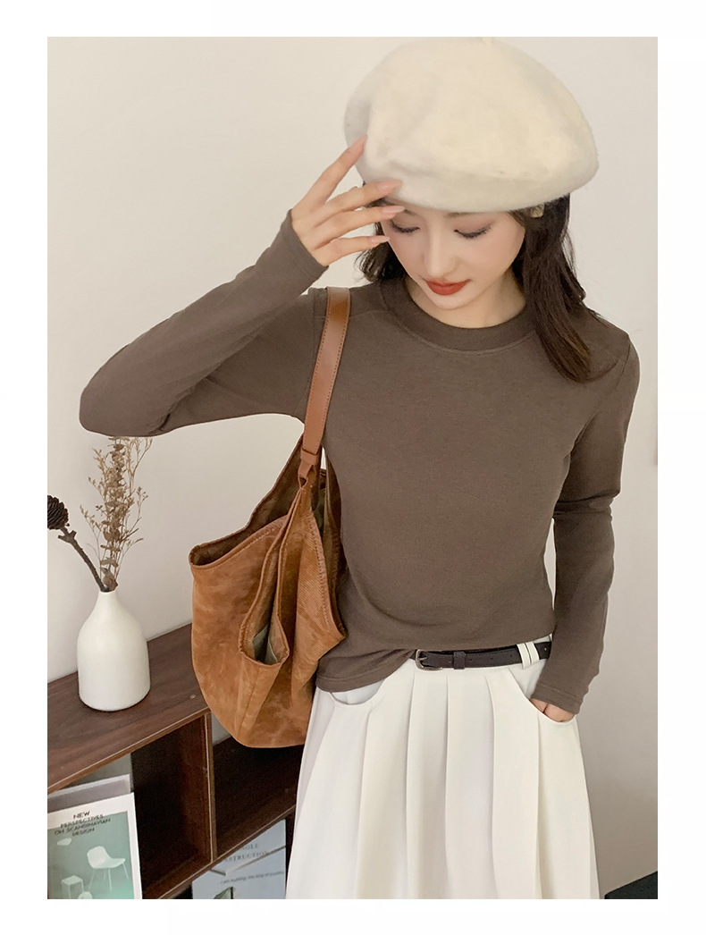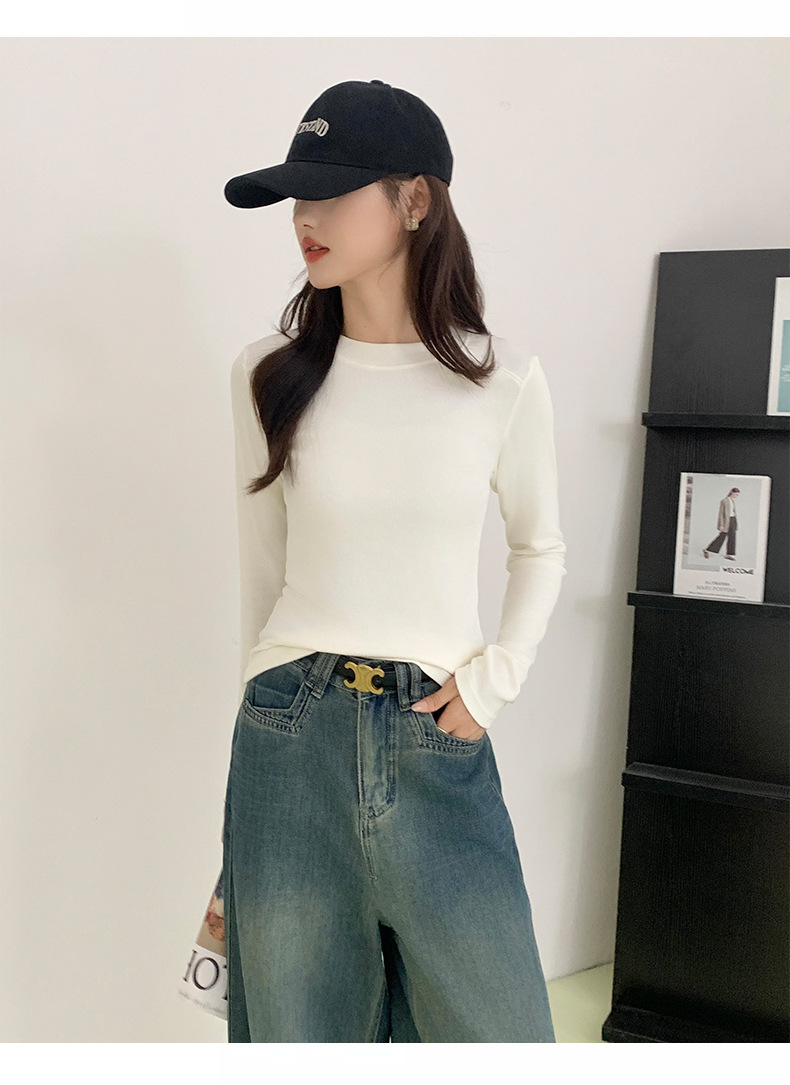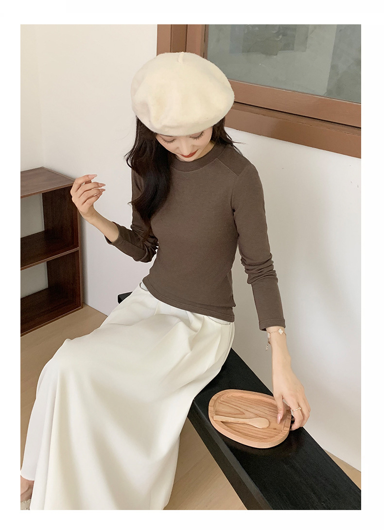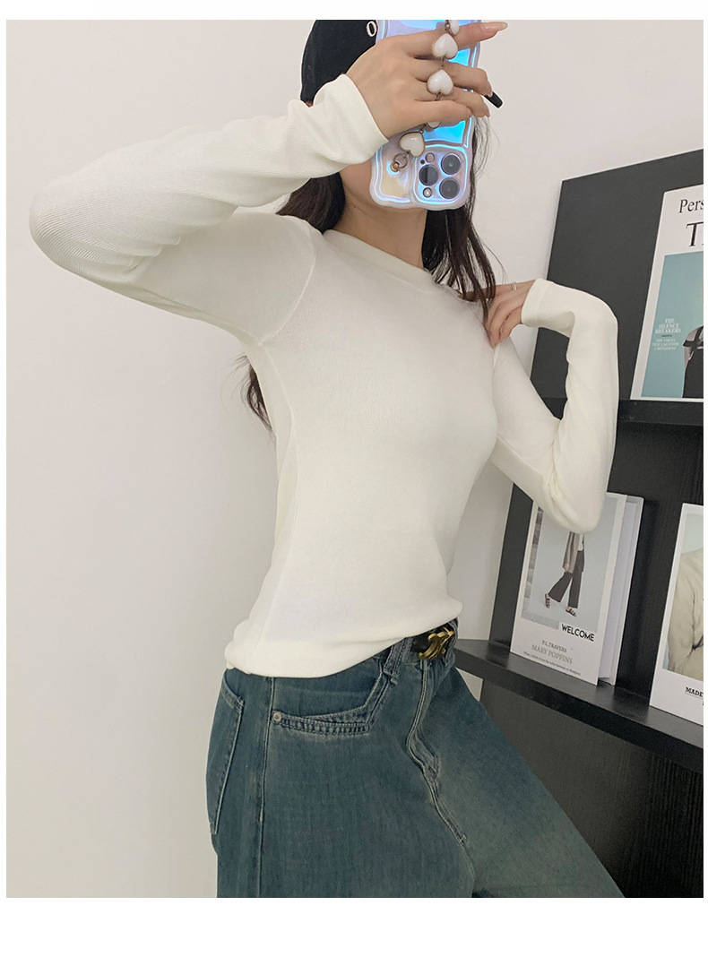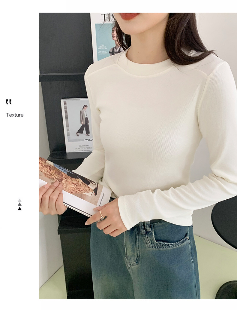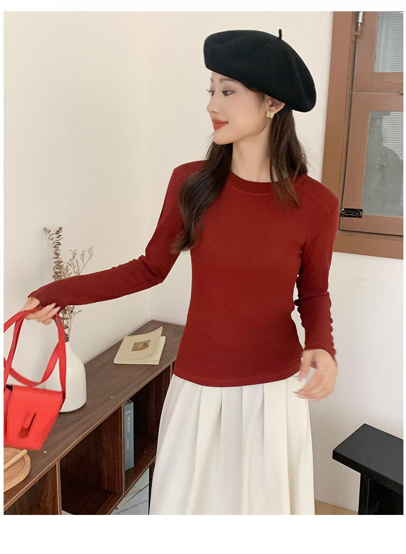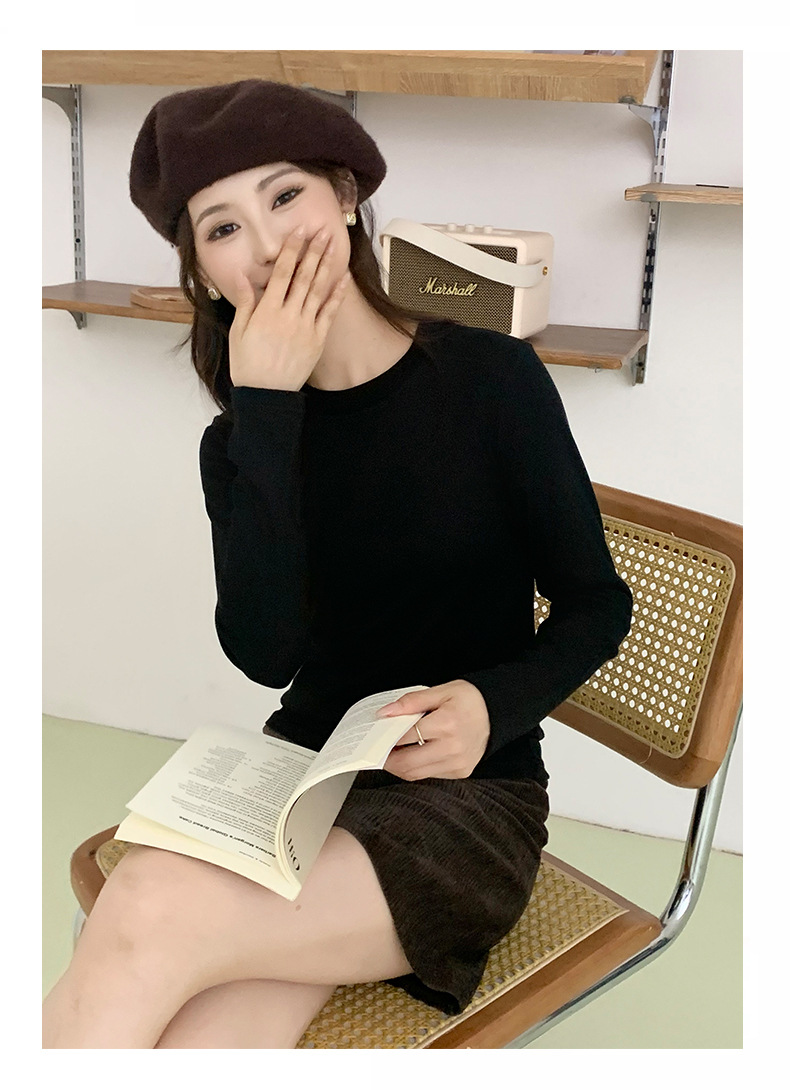 秋冬螺纹诺羊绒圆领打底衫秋季女t恤内搭长袖上衣可外穿针织衫 商品图6