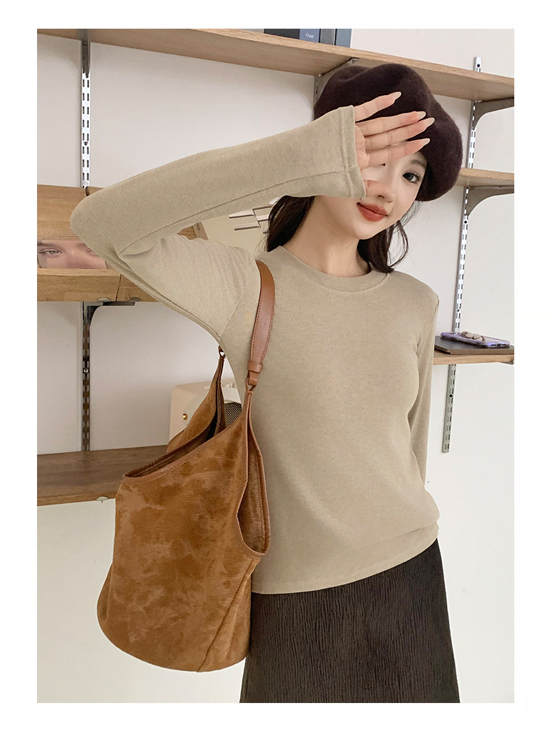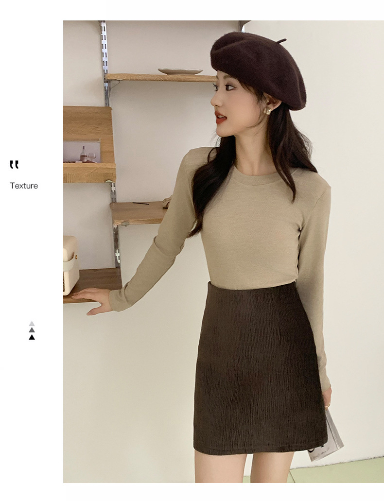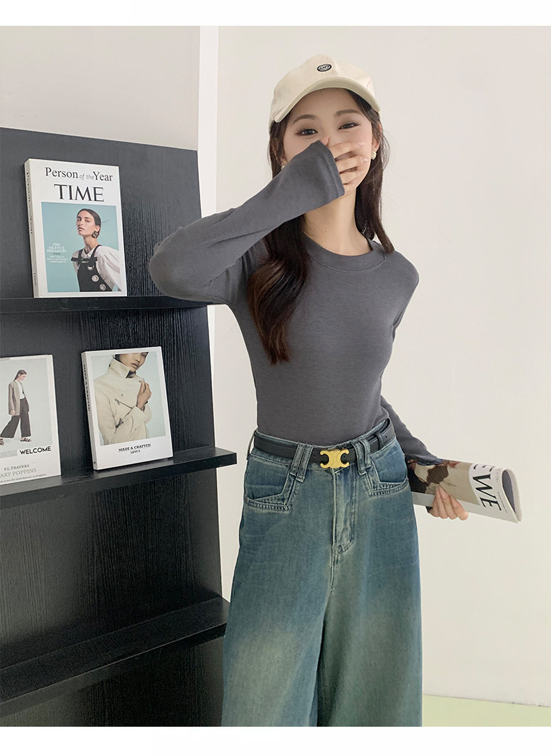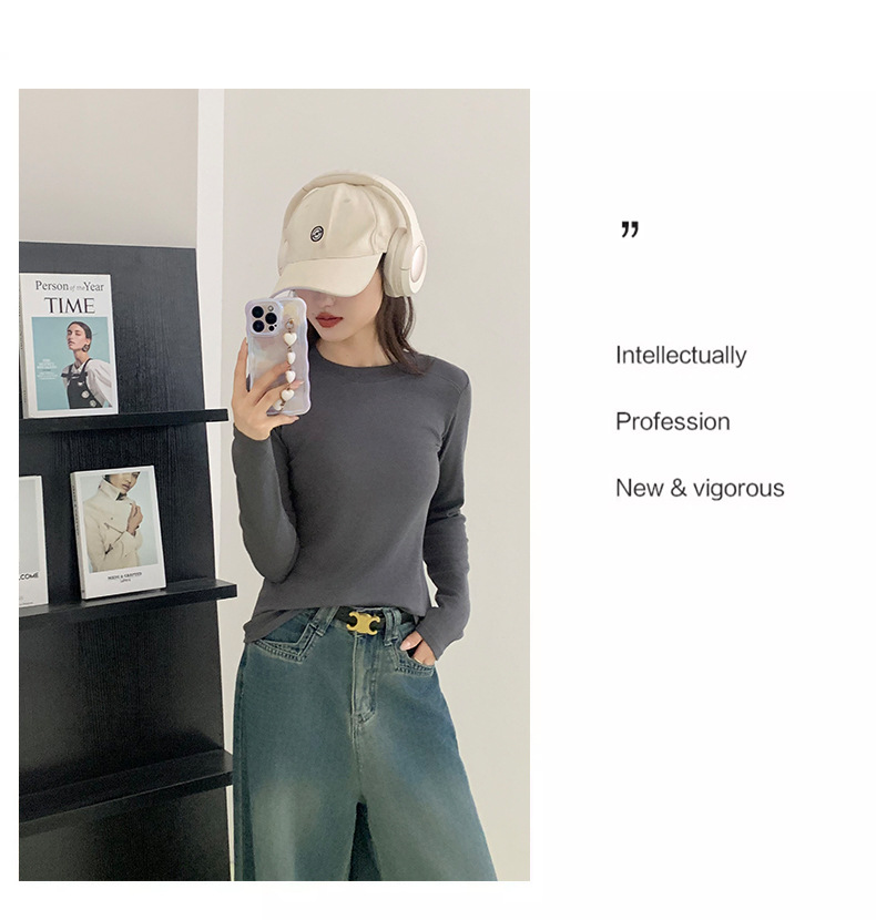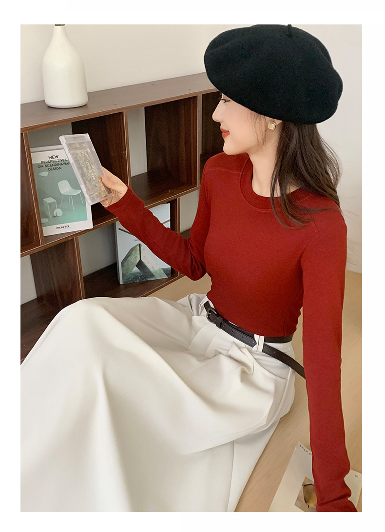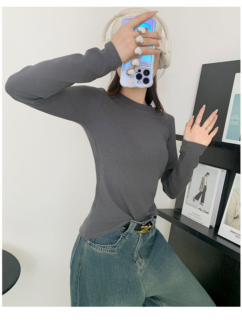 秋冬螺纹诺羊绒圆领打底衫秋季女t恤内搭长袖上衣可外穿针织衫 商品图6