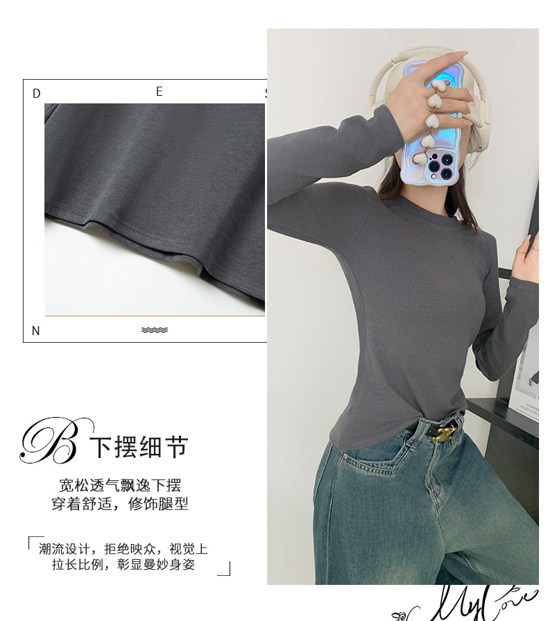 秋冬螺纹诺羊绒圆领打底衫秋季女t恤内搭长袖上衣可外穿针织衫 商品图5