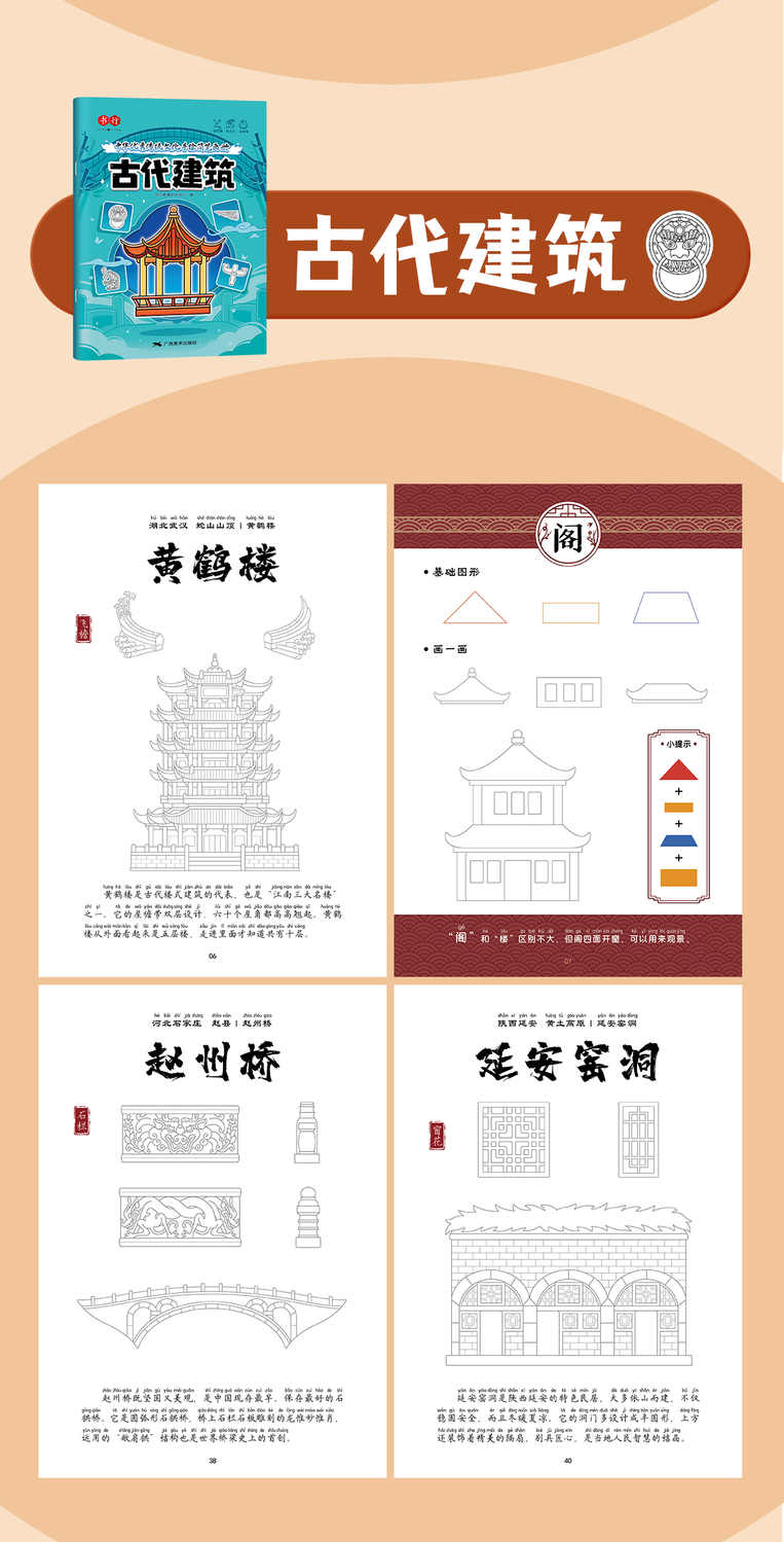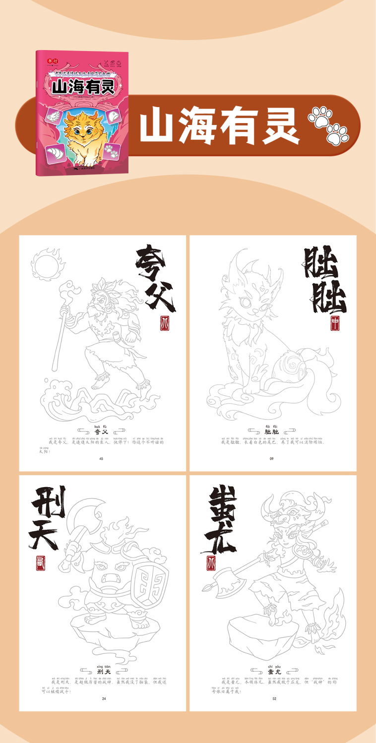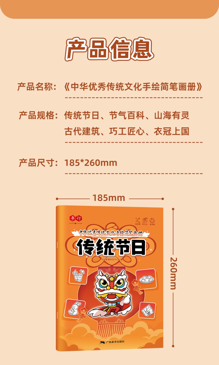 中华优秀传统文化手绘简笔画册儿童涂鸦书填色本控笔训练美术教程