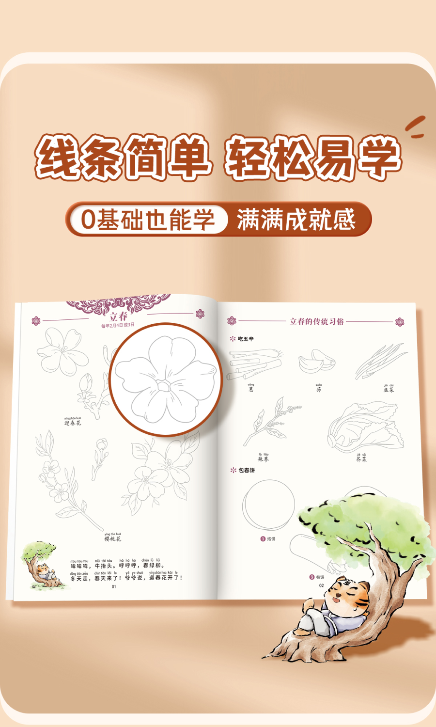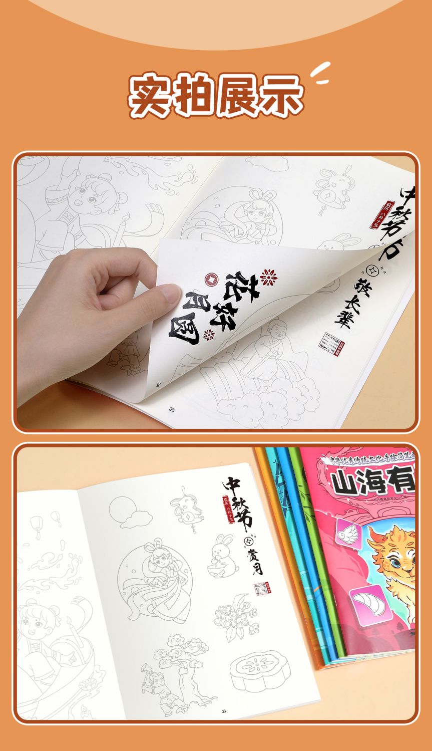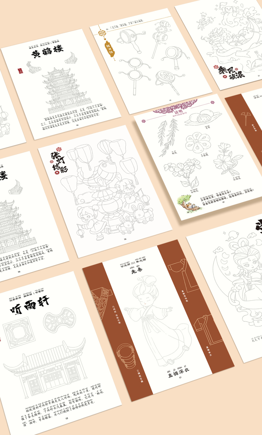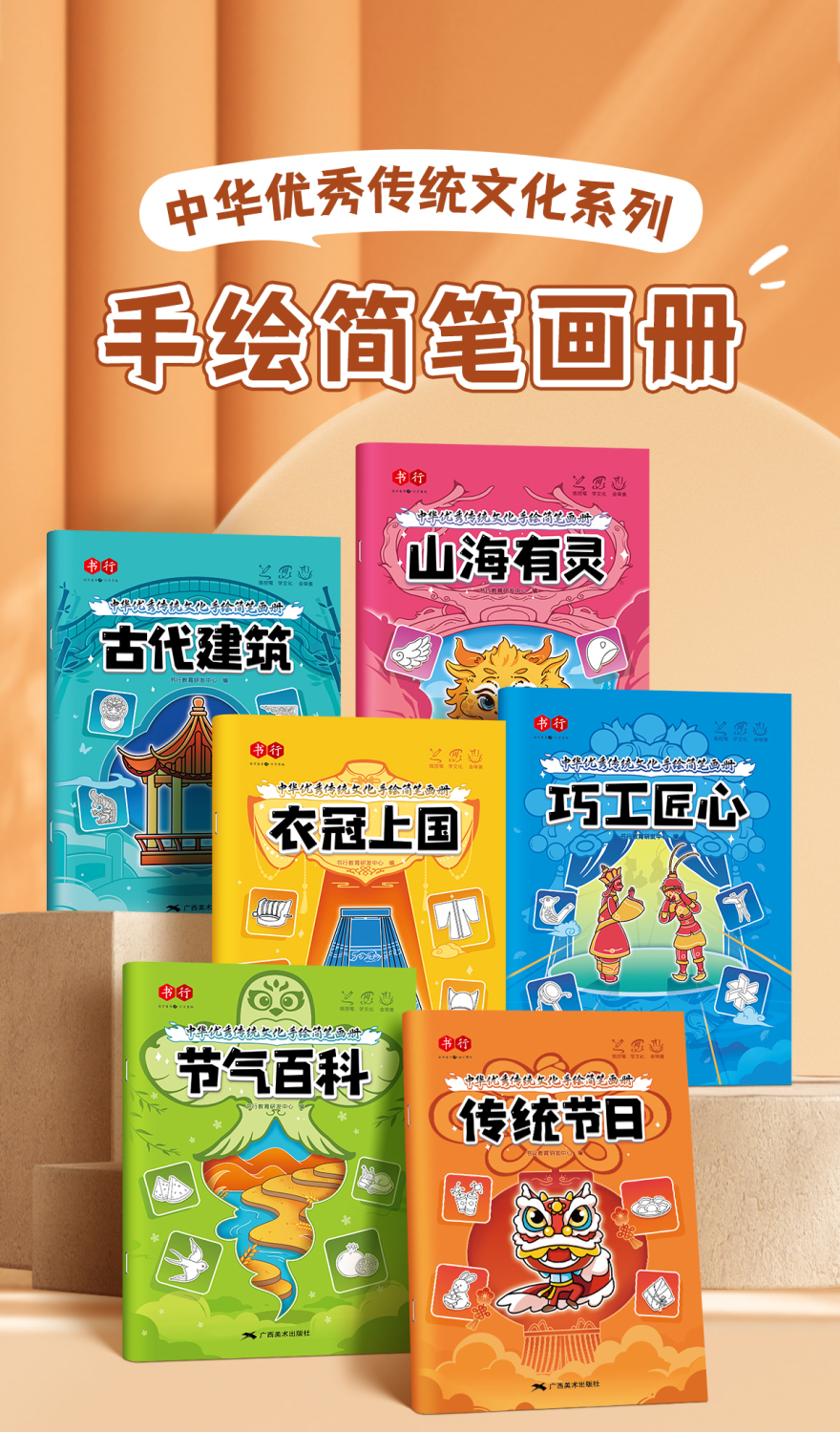 中华优秀传统文化手绘简笔画册儿童涂鸦书填色本控笔训练美术教程