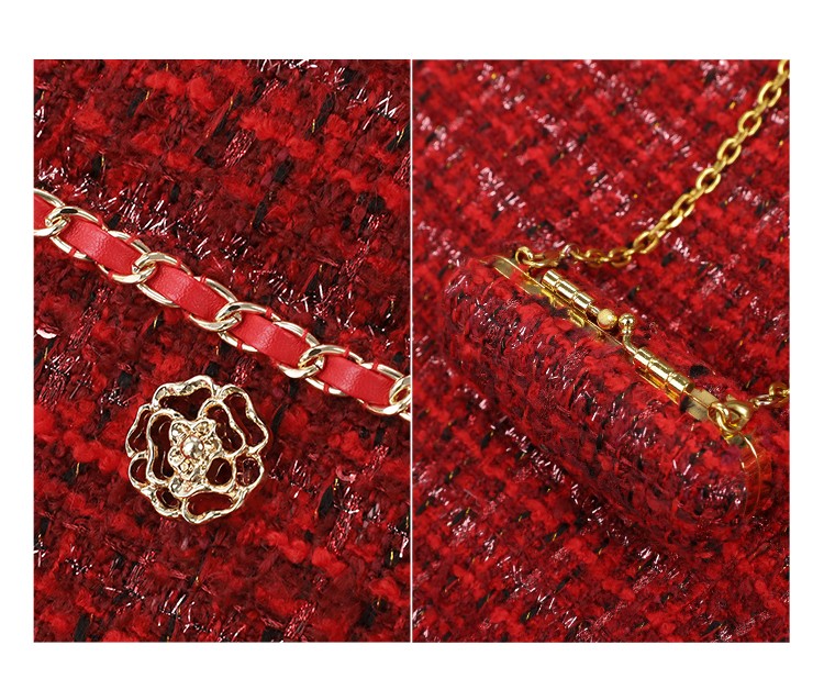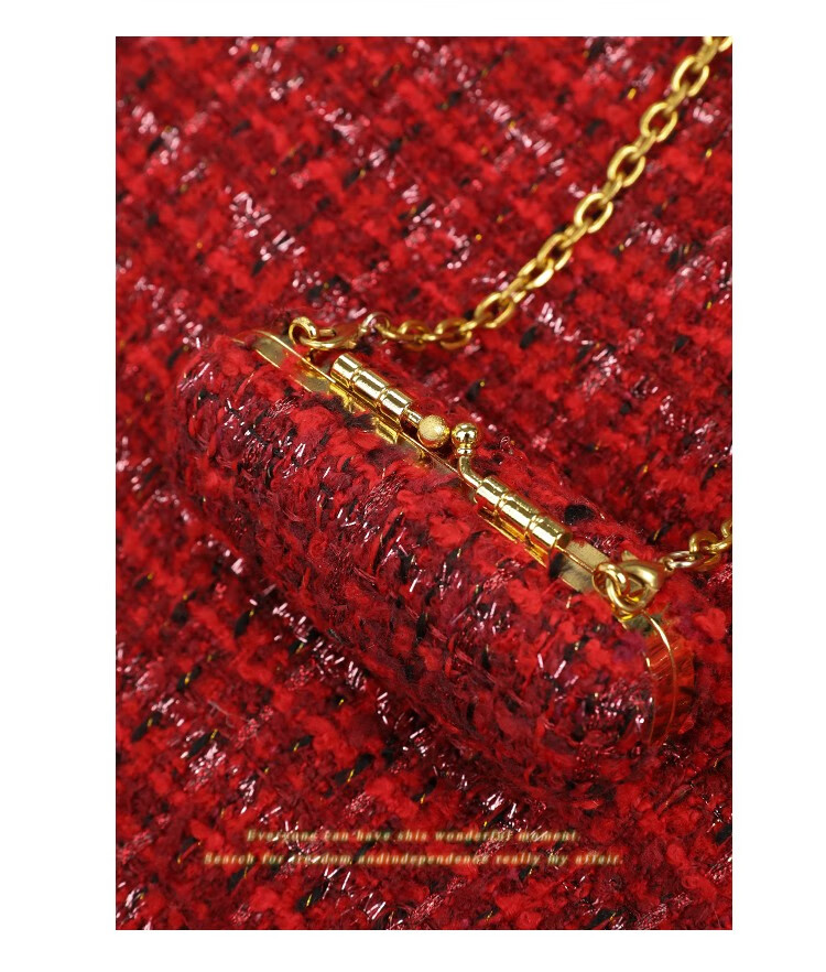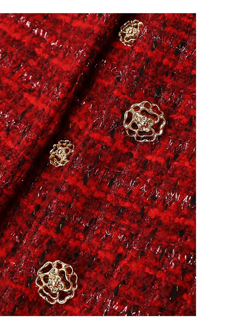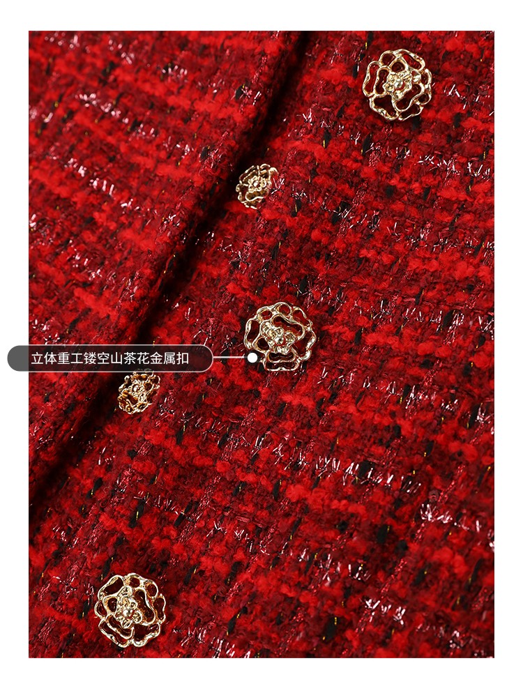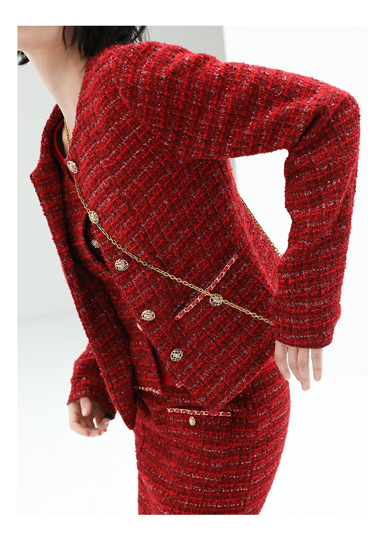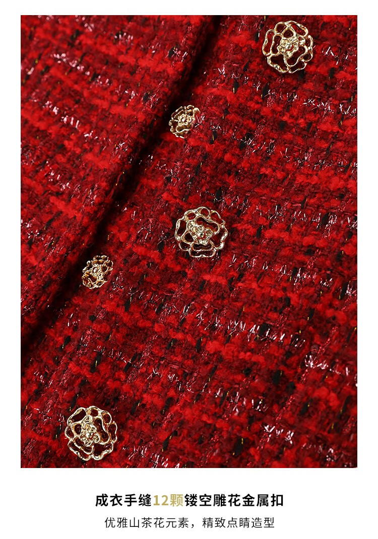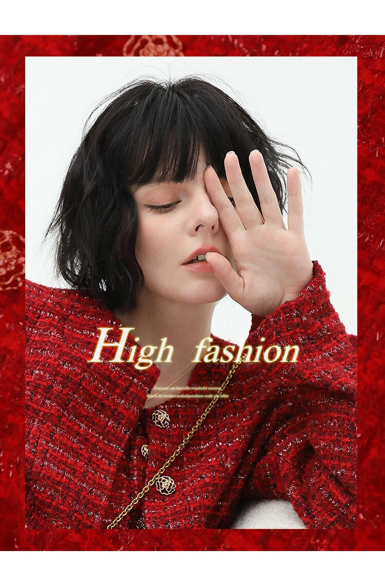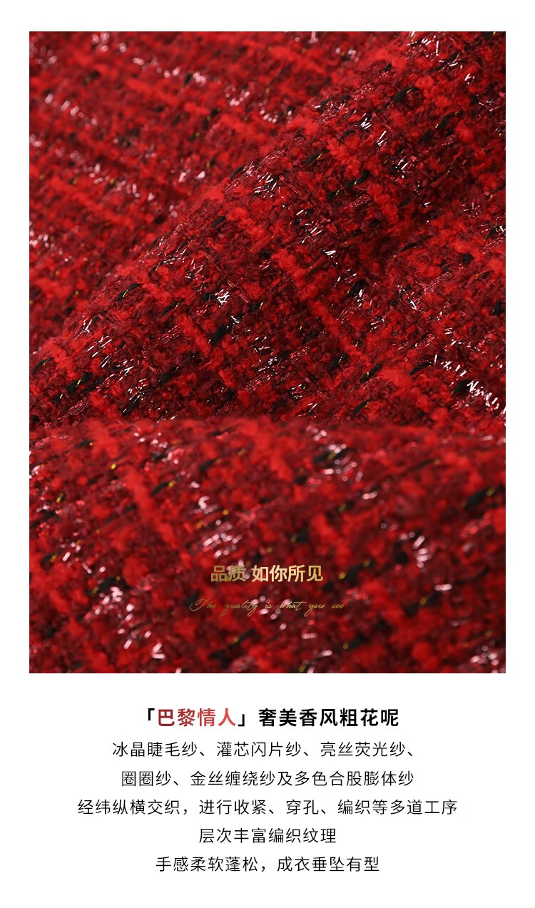 COCOBELLA假两件亮丝小香风花呢外套女精致裸领红色西装WL529