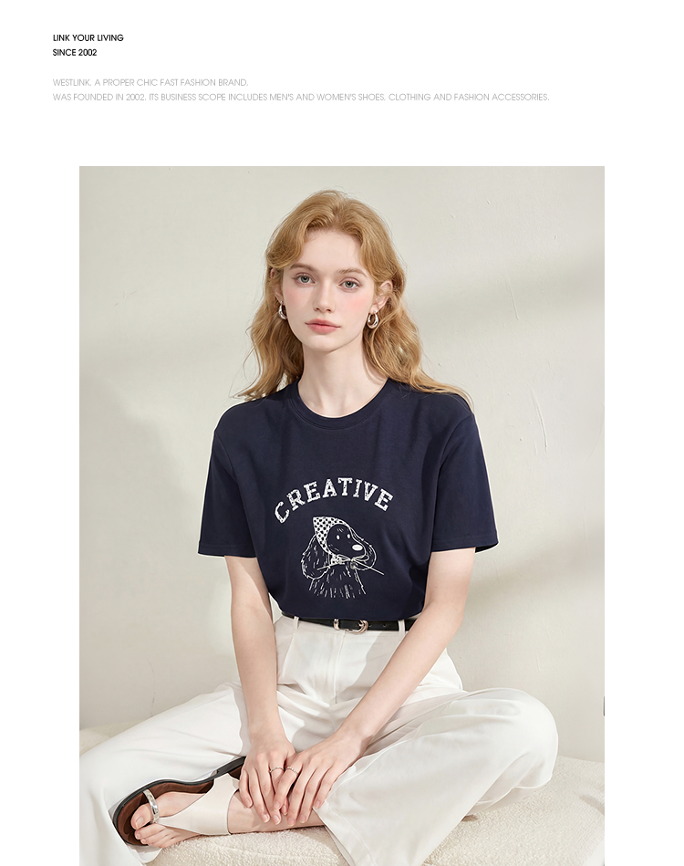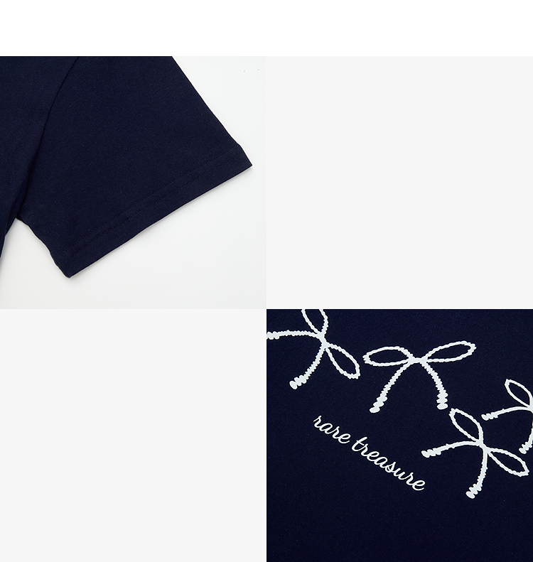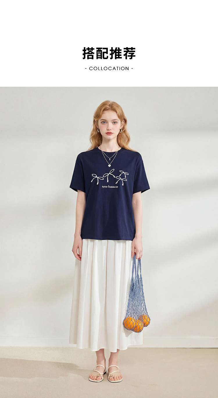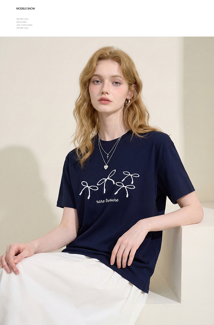 西遇2026夏季新款蝴蝶结印花短袖T恤女圆领正肩宽松显瘦百搭上衣E0060196