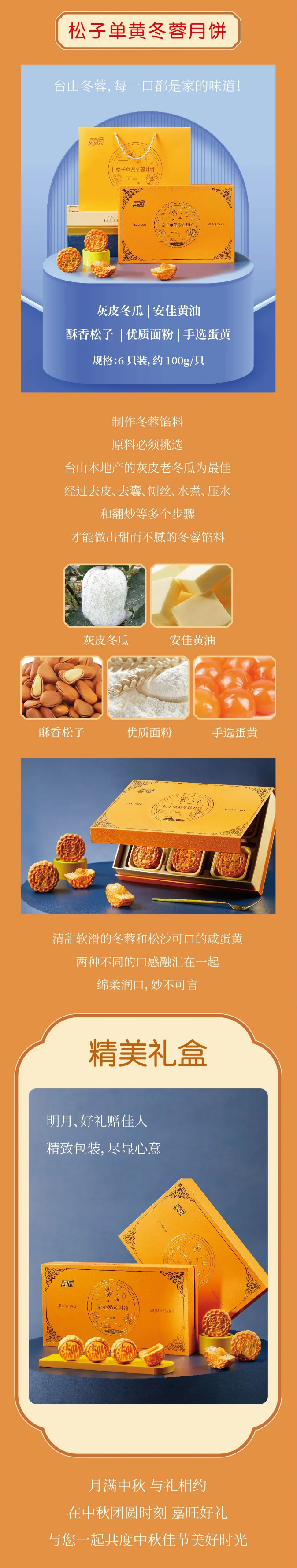 嘉旺松子单黄冬蓉月饼600g【100g*6枚】