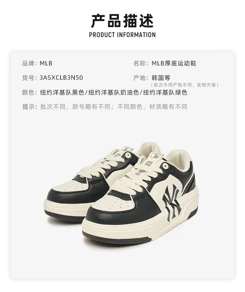 MLB男女情侣复古鞋学长鞋厚底增高明星同款