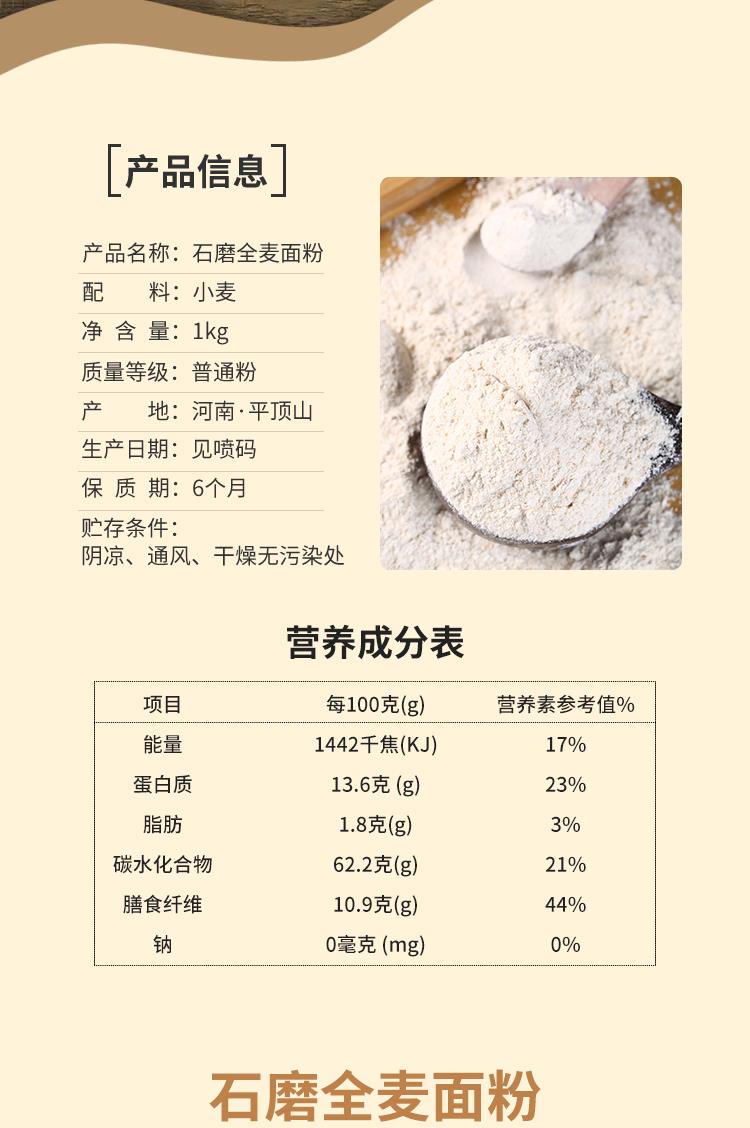 石磨全麦面粉 1kg/袋【京东快递送货上门】