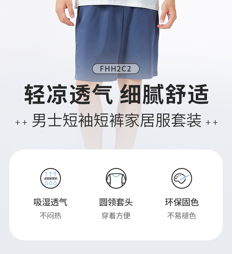 都市丽人好睡好眠男士棉质短袖套装薄冰丝棉短袖类FHH2C2
