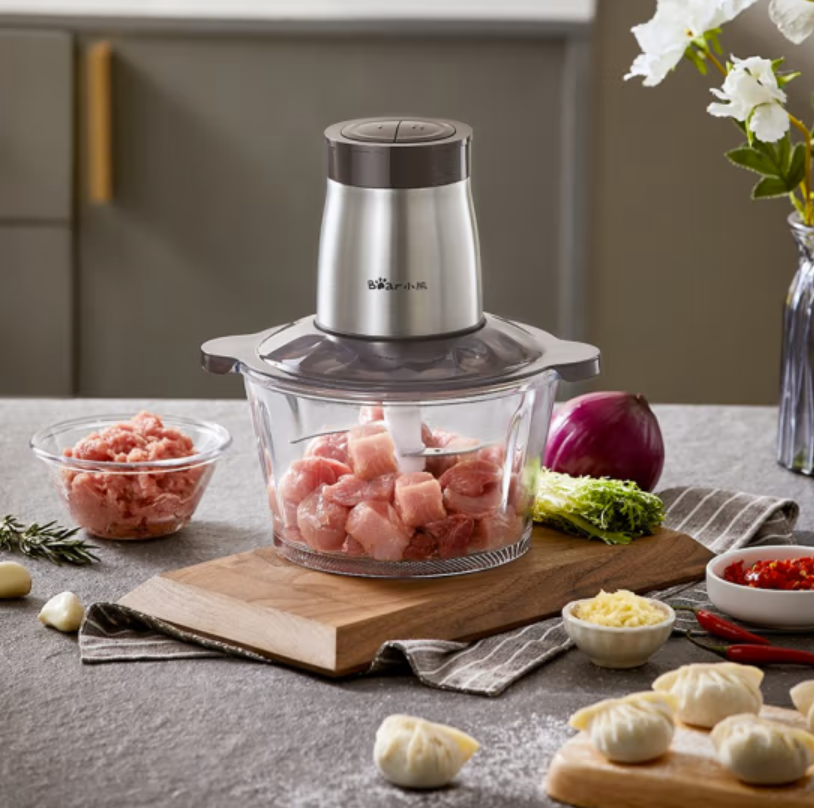 小熊(Bear)绞肉机家用电动多功能肉馅机婴儿辅食打肉机搅拌切菜 玻璃碗不锈钢刀头QSJ-D03W5 淘气