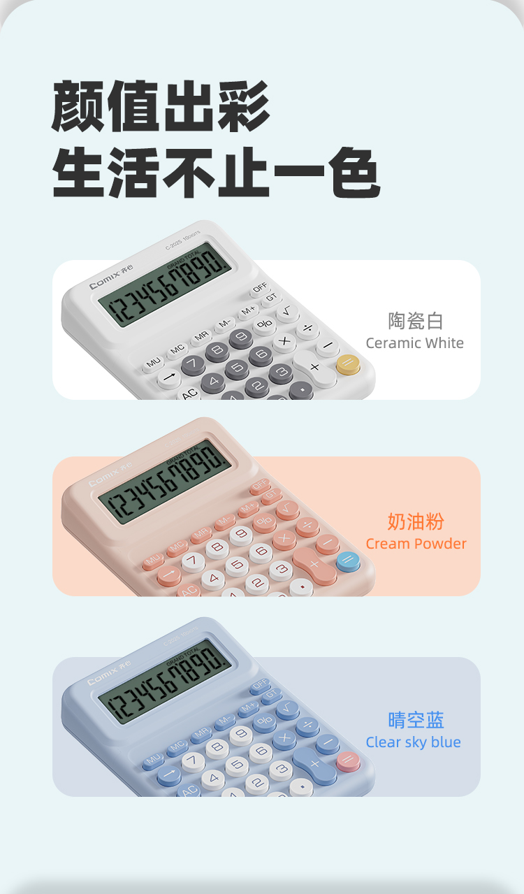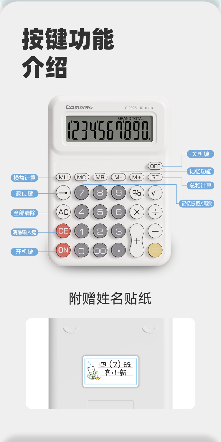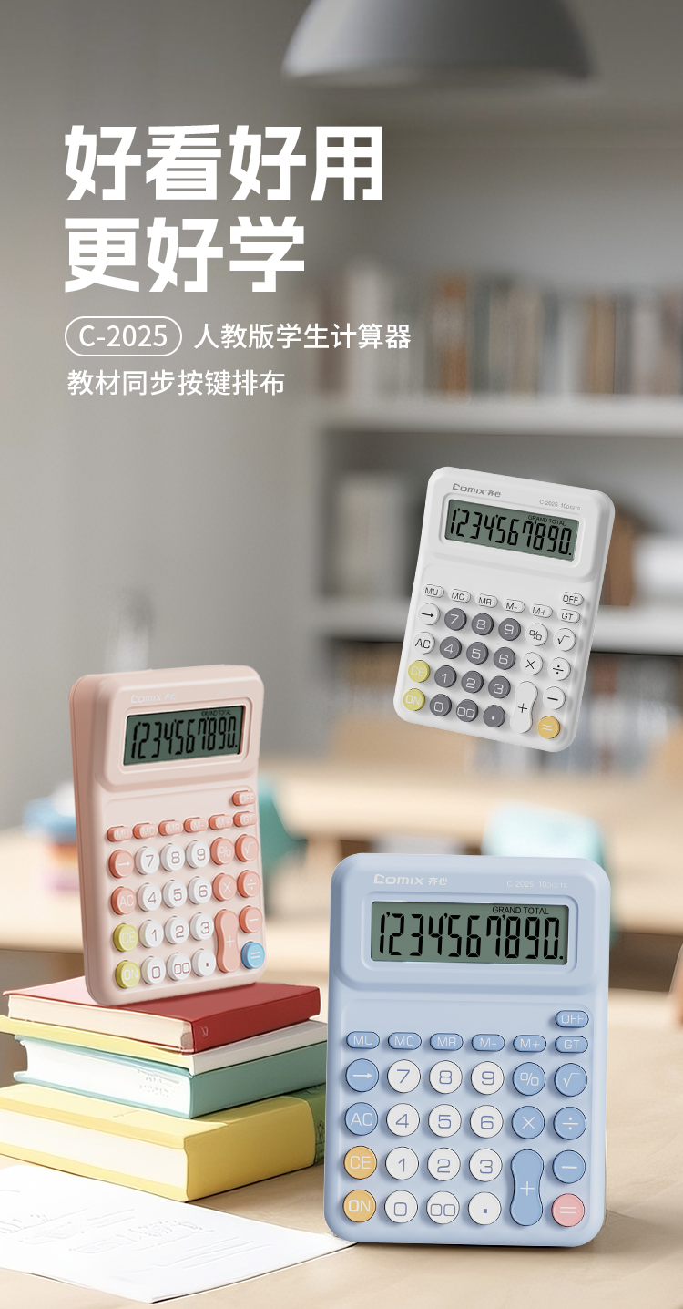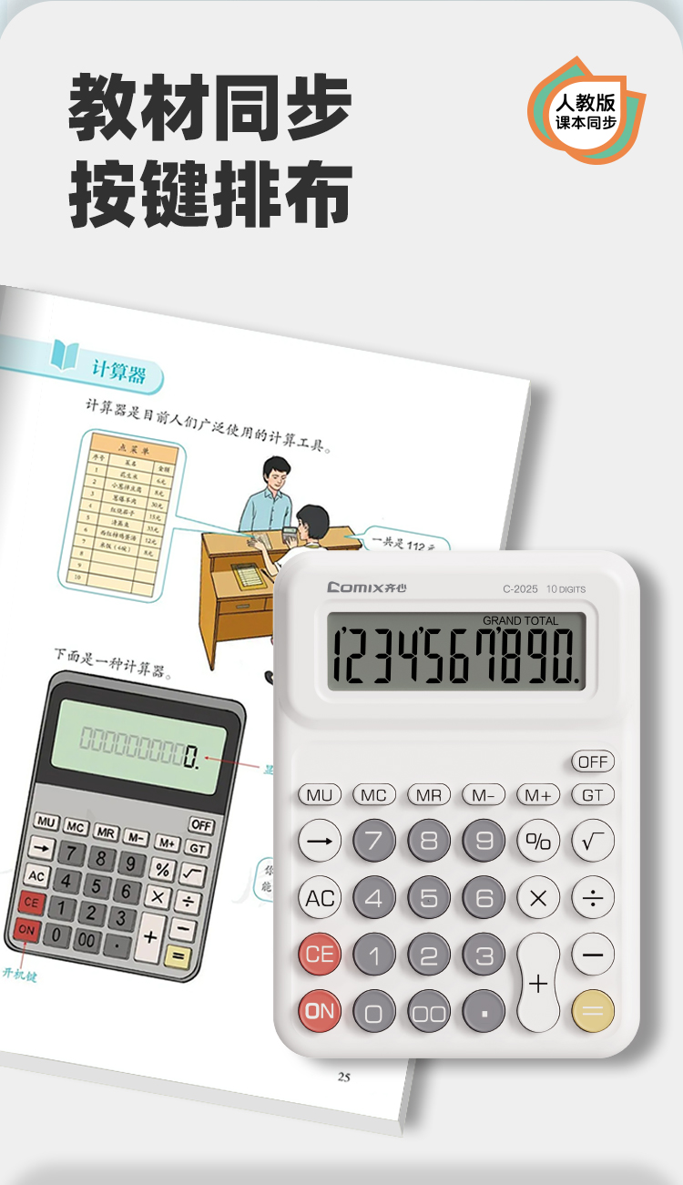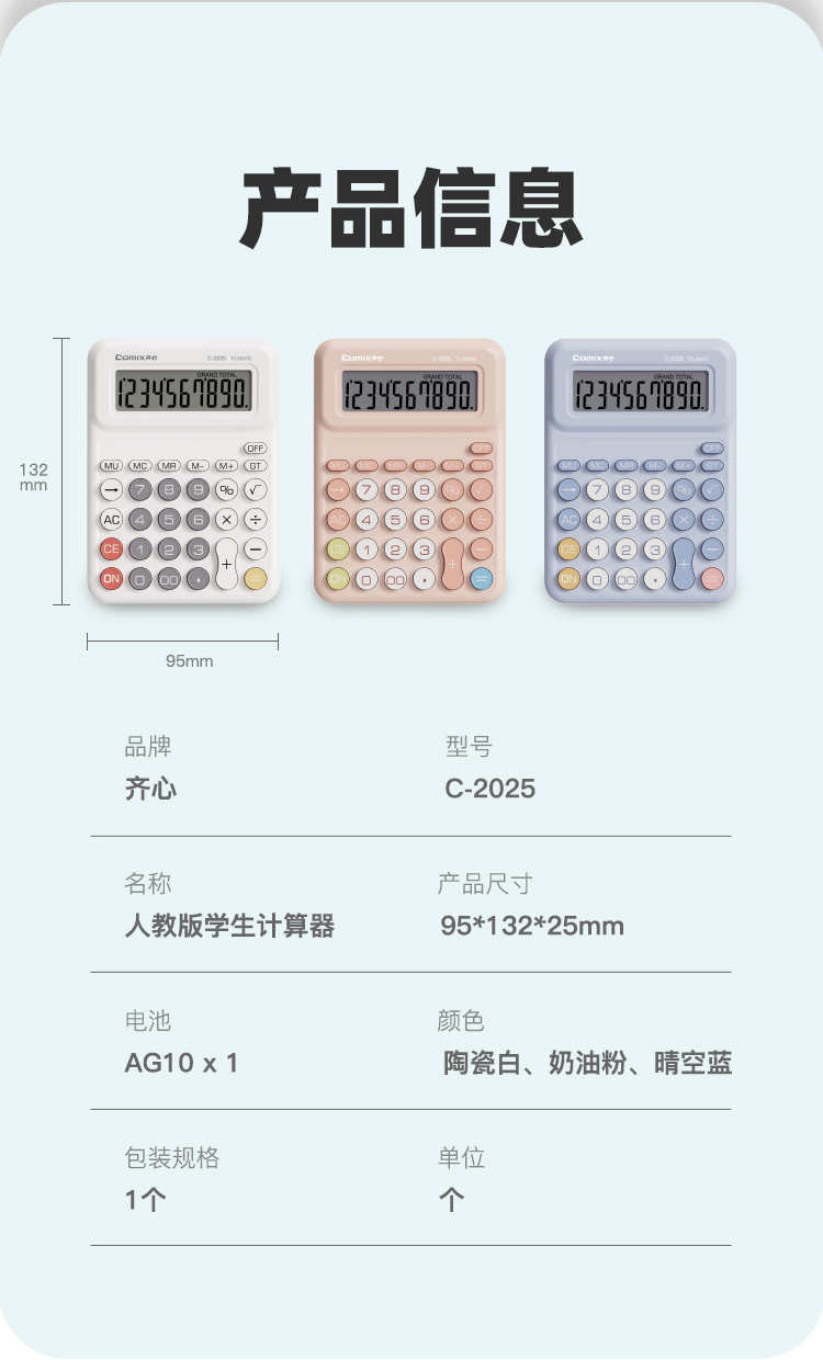 齐心小学生教学计算器 人教版课本同步学生计算器四年级上数学教具 陶瓷白 1个