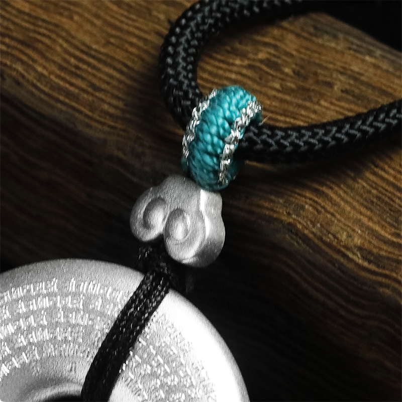这款银质平安扣得到了故宫的官方授权,平安扣的形制,跟故宫中的珍品馆藏“白玉螭纹壁”很像!有驱灾辟邪、保出入平安的意思,也是这枚平安扣的设计理念。