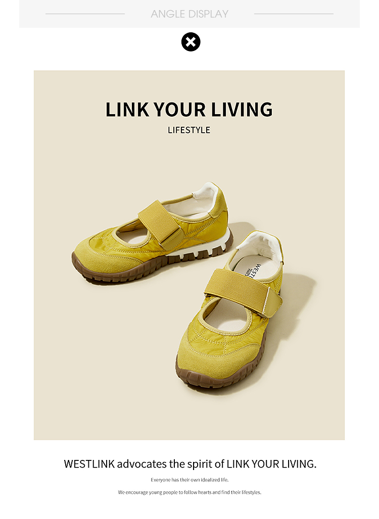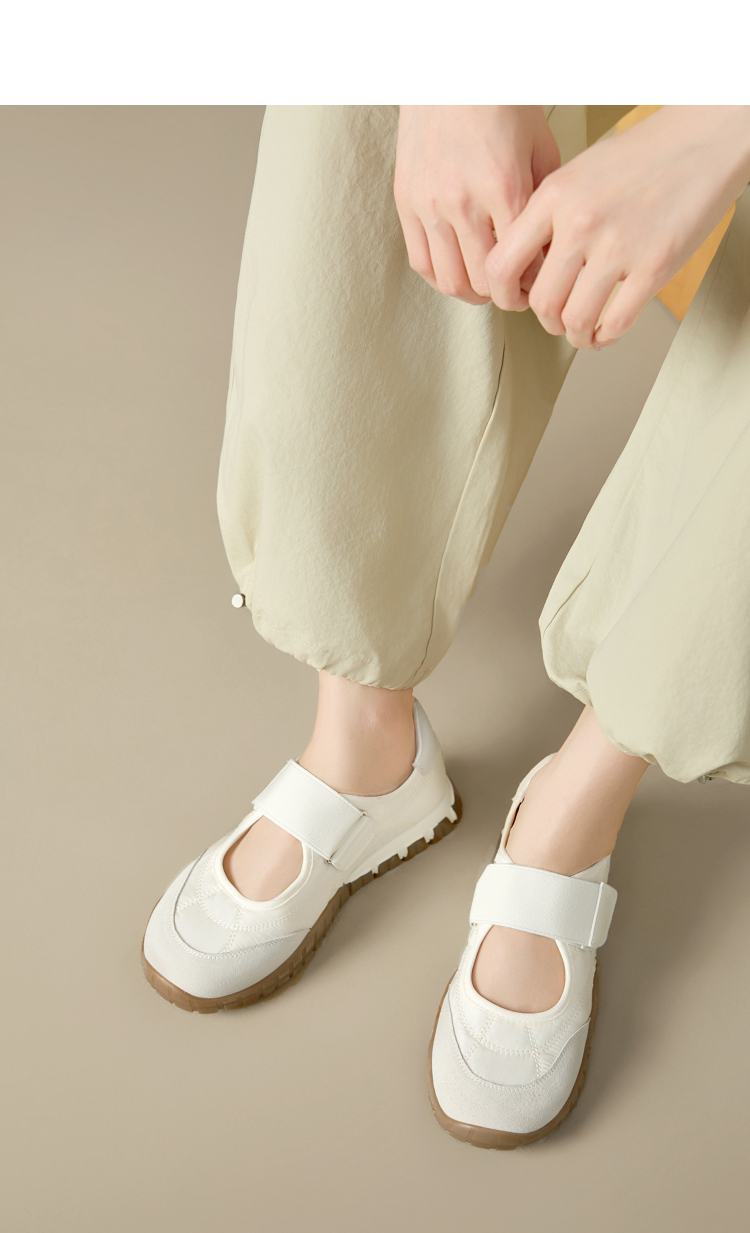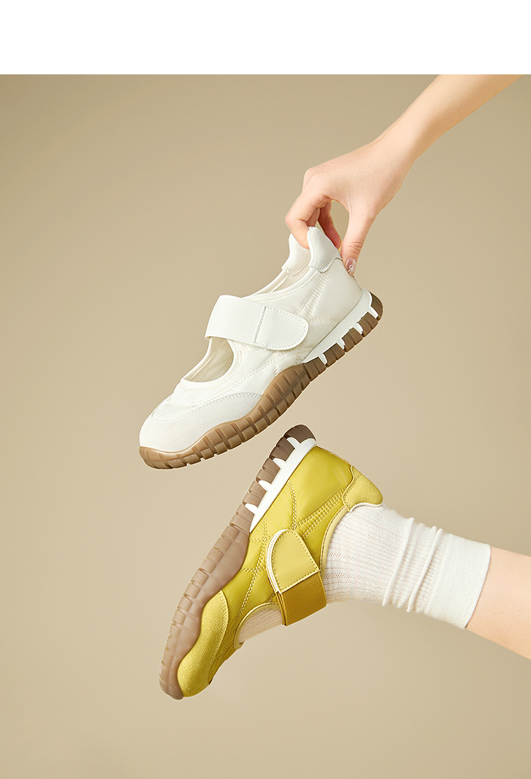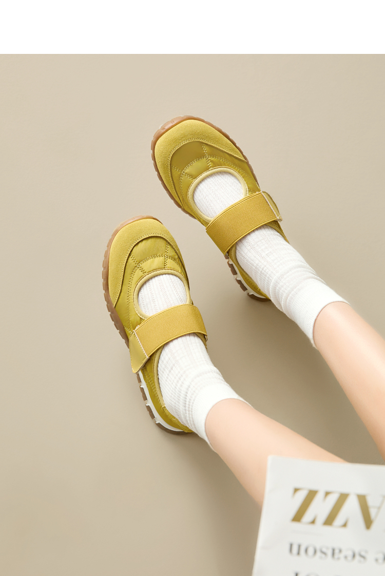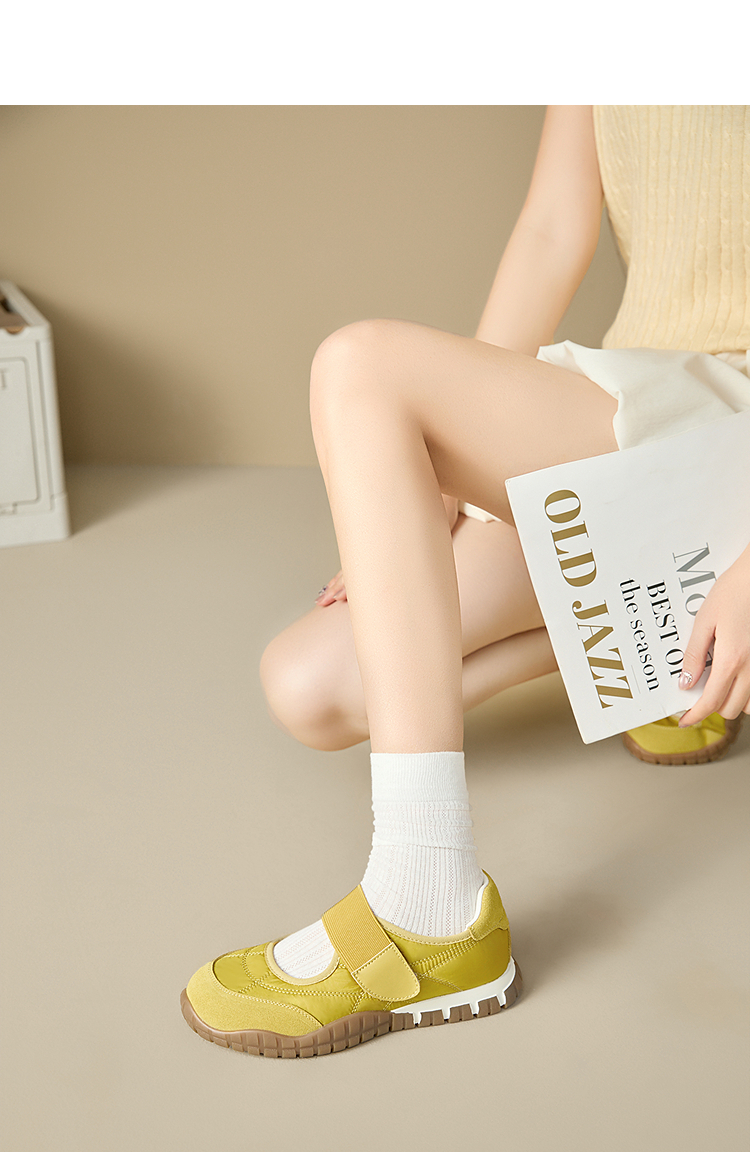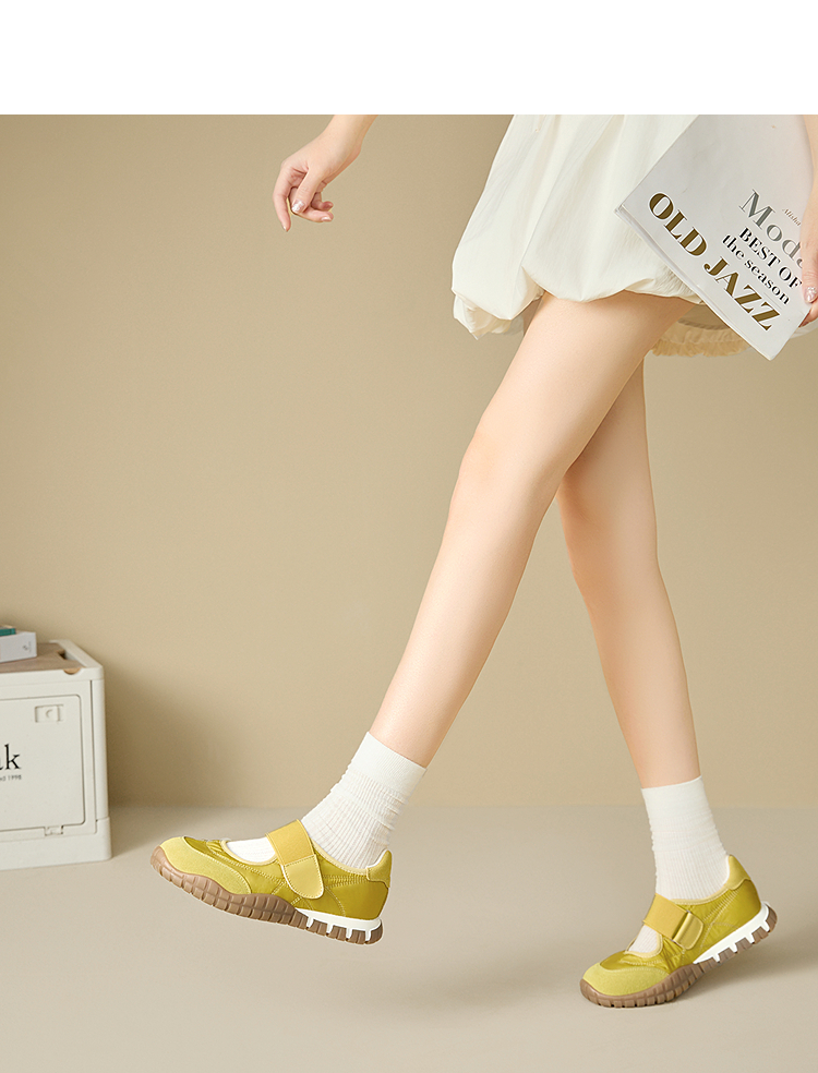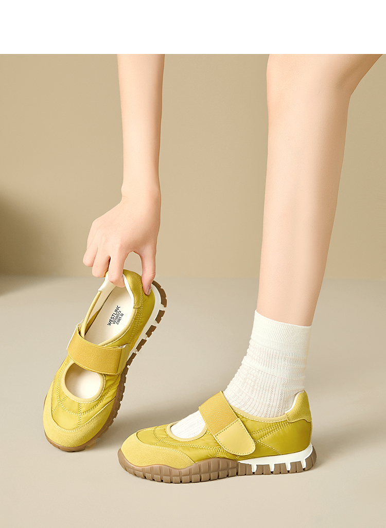 西遇运动芭蕾鞋女新款春夏魔术贴复古休闲鞋厚底黄色玛丽珍鞋V0156573