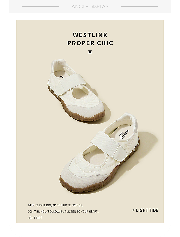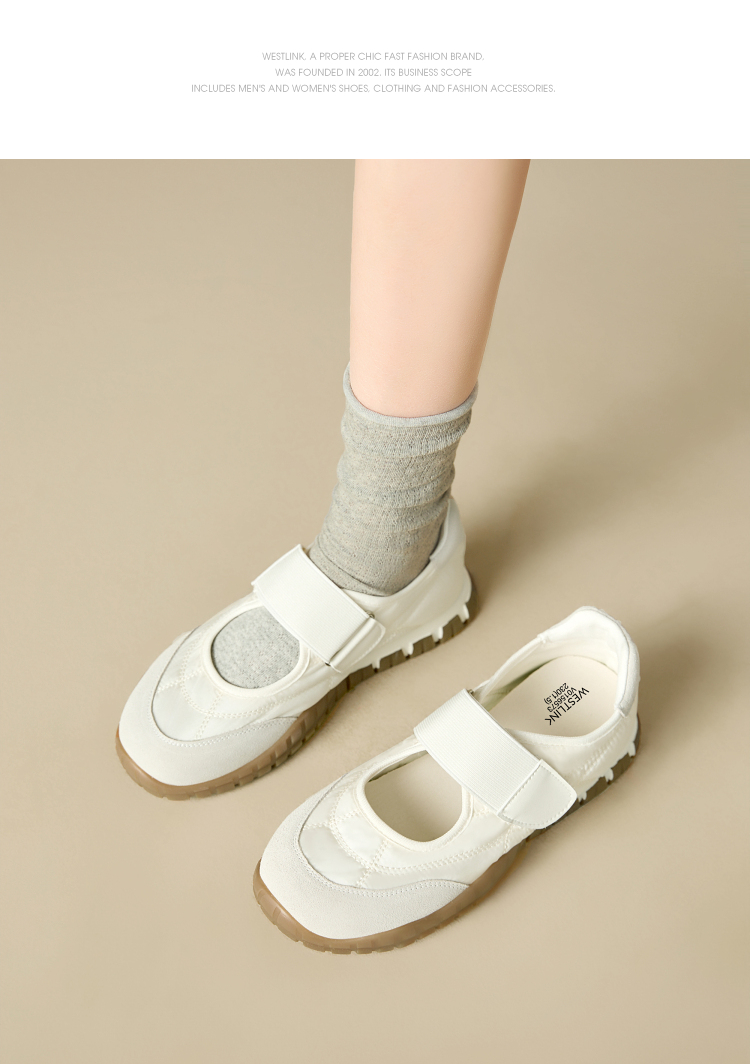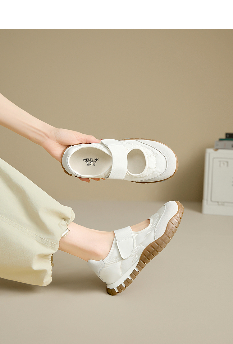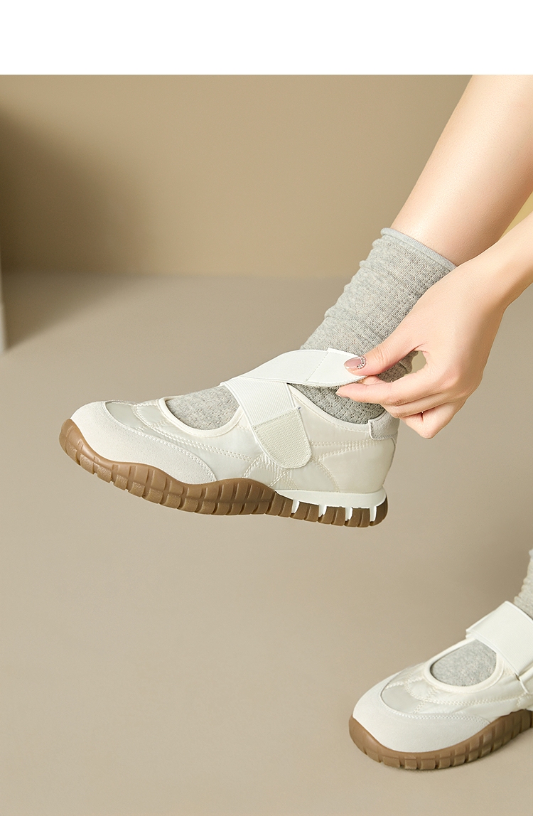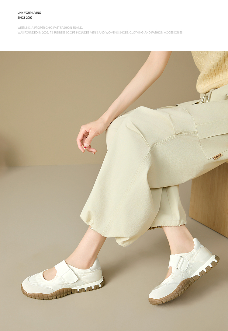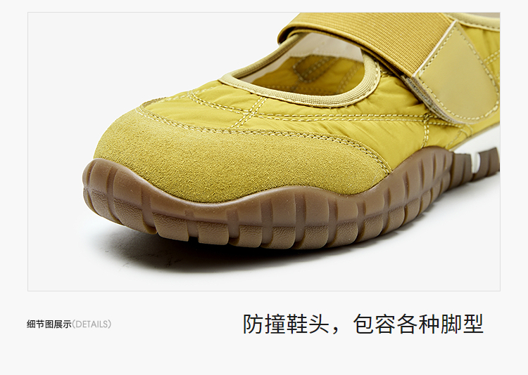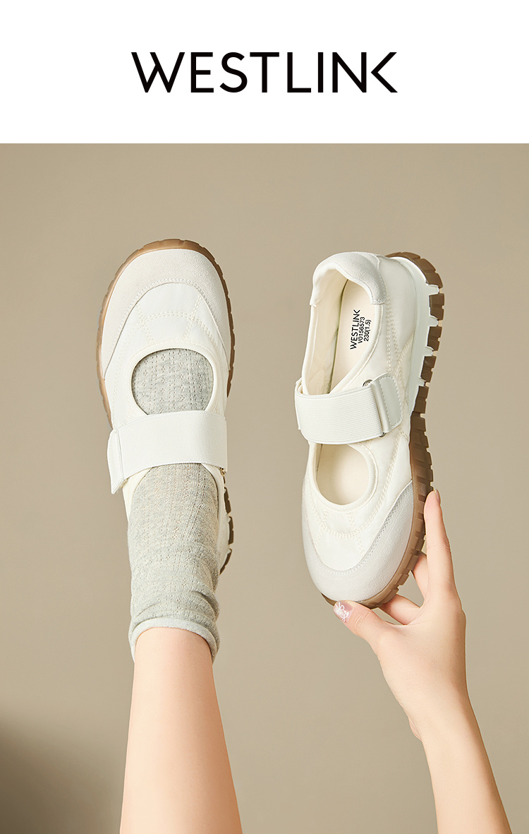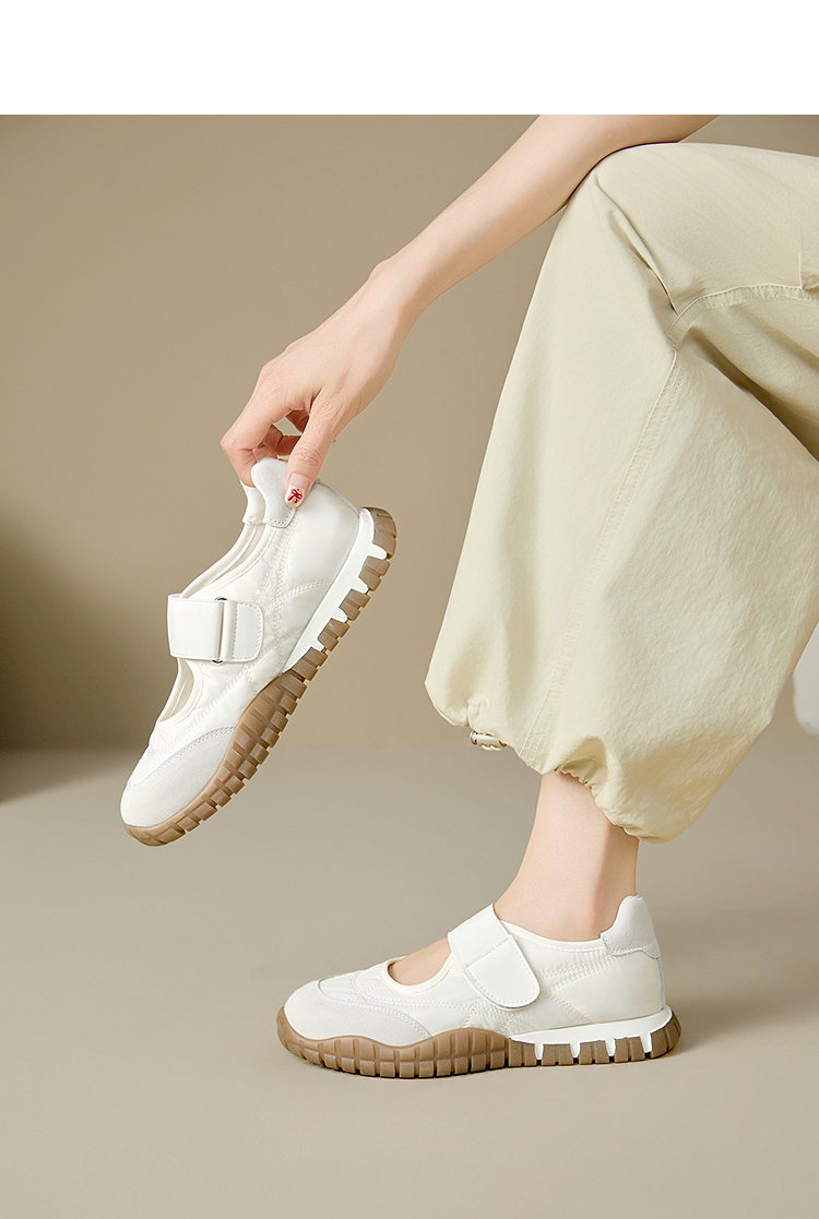 西遇运动芭蕾鞋女新款春夏魔术贴复古休闲鞋厚底黄色玛丽珍鞋V0156573