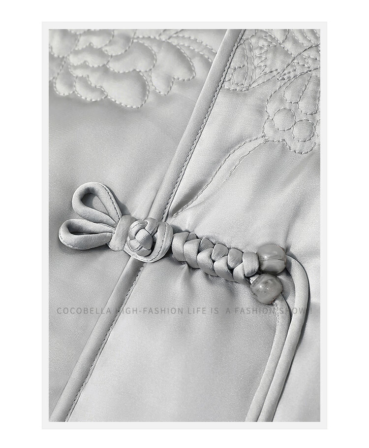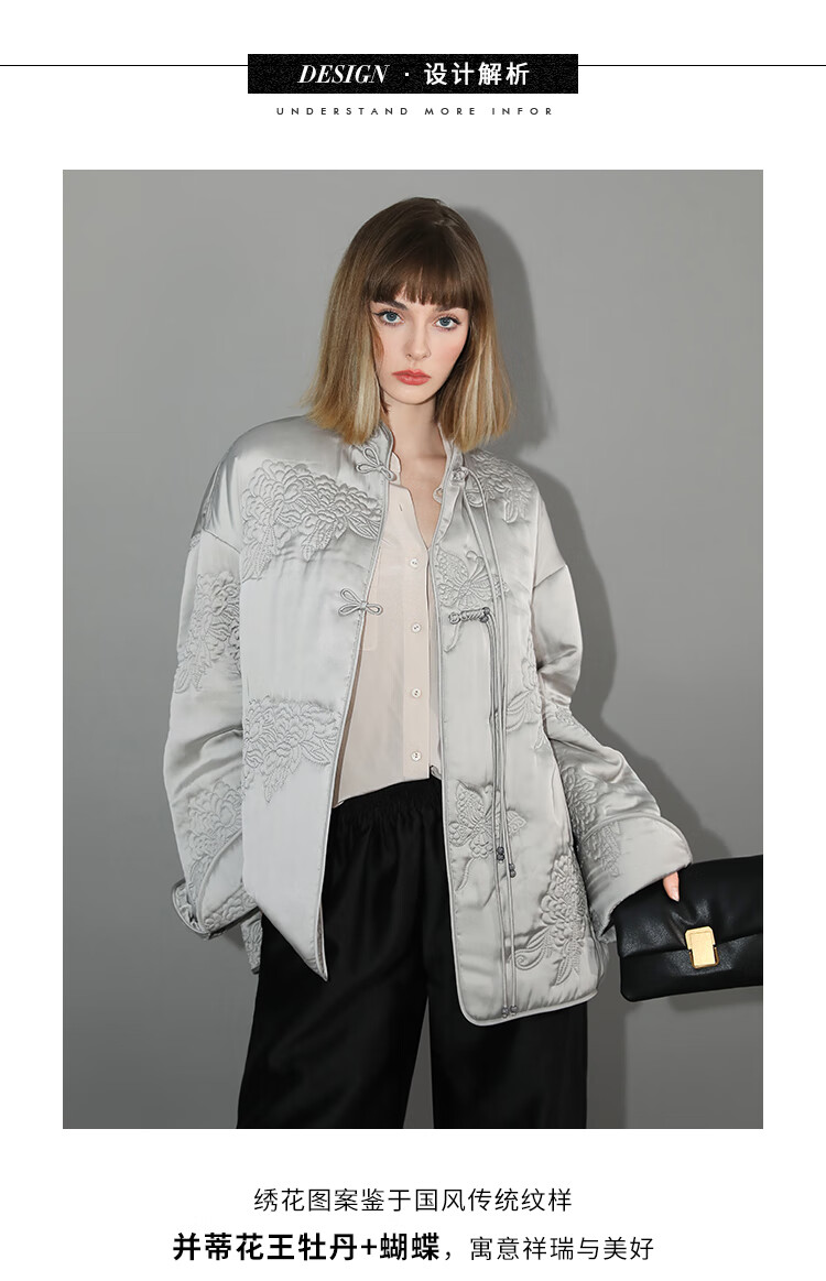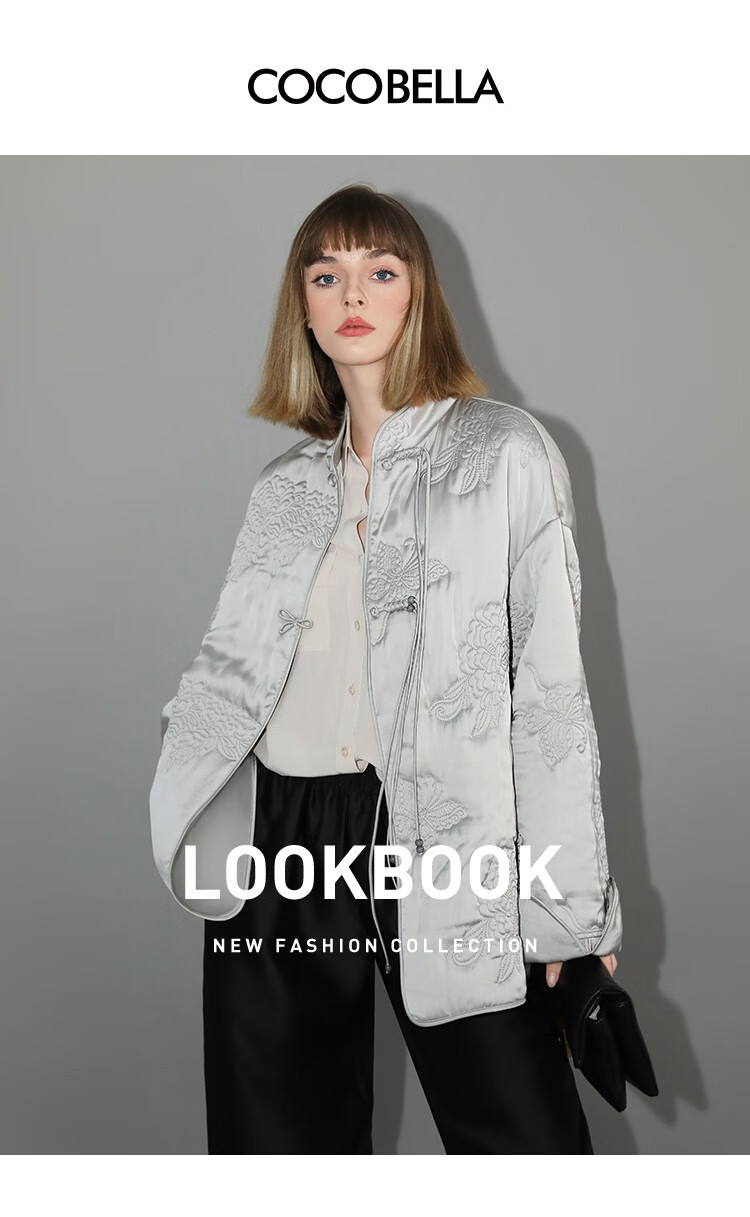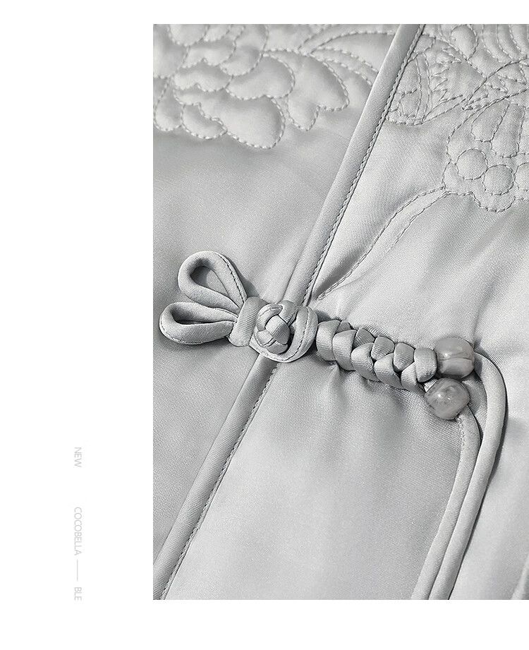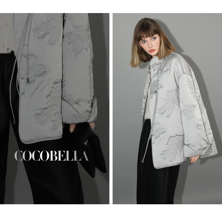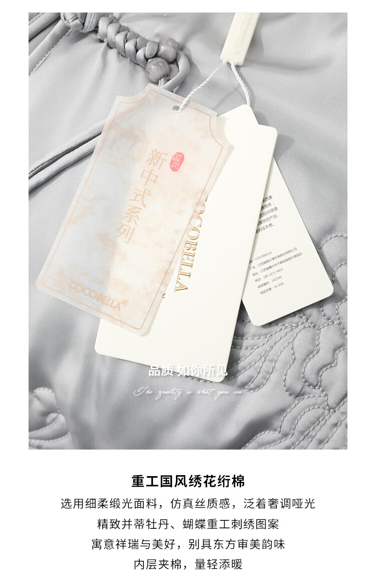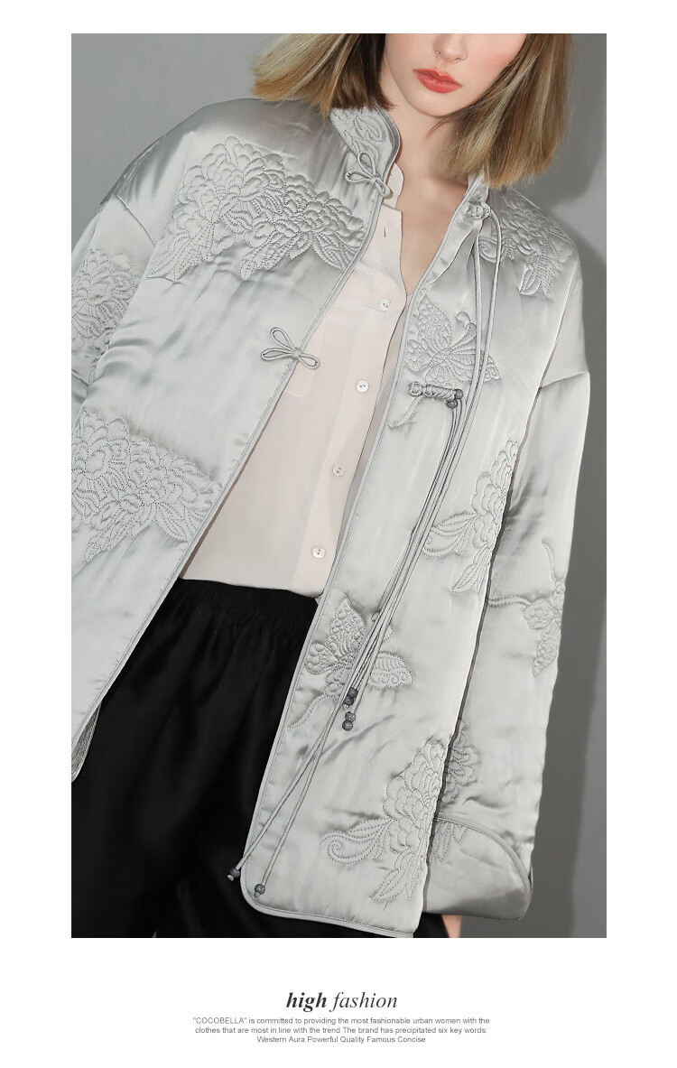 COCOBELLA新中式缎面刺绣盘扣棉服女国风轻型绗棉外套MF3002