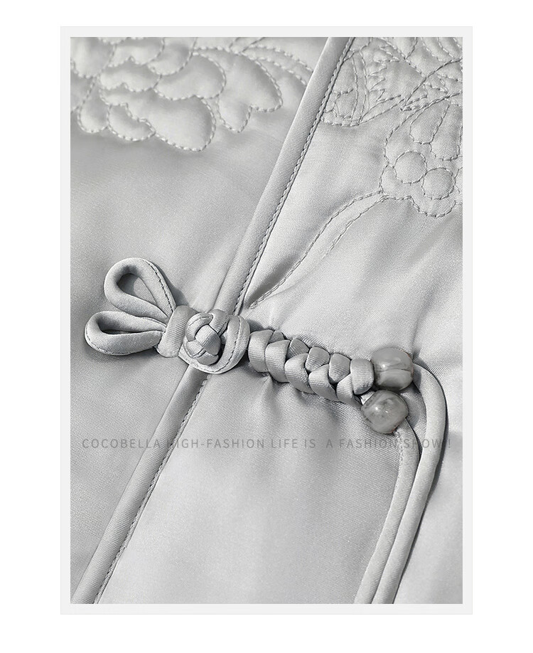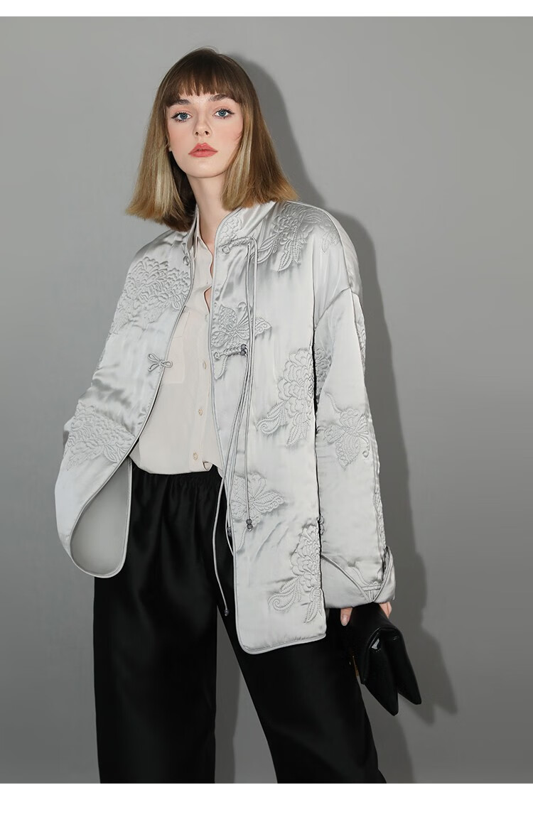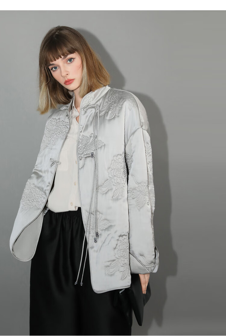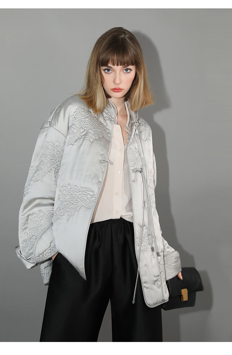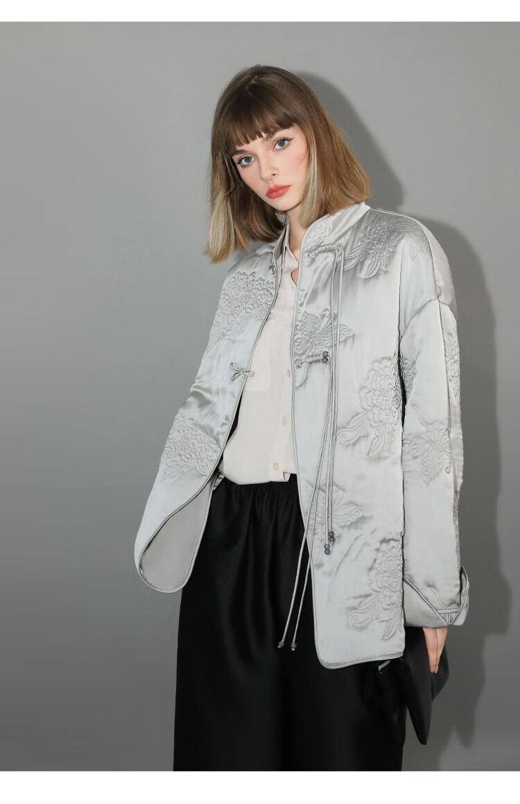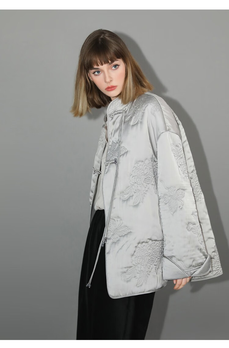 COCOBELLA新中式缎面刺绣盘扣棉服女国风轻型绗棉外套MF3002