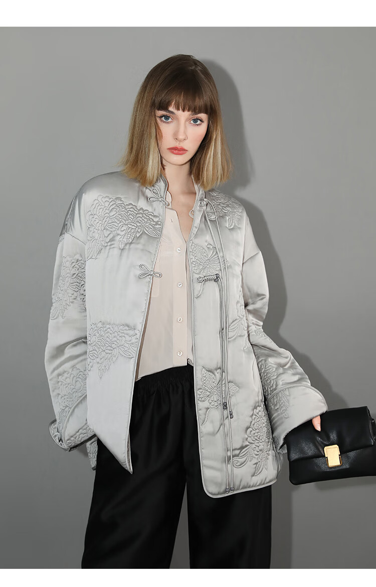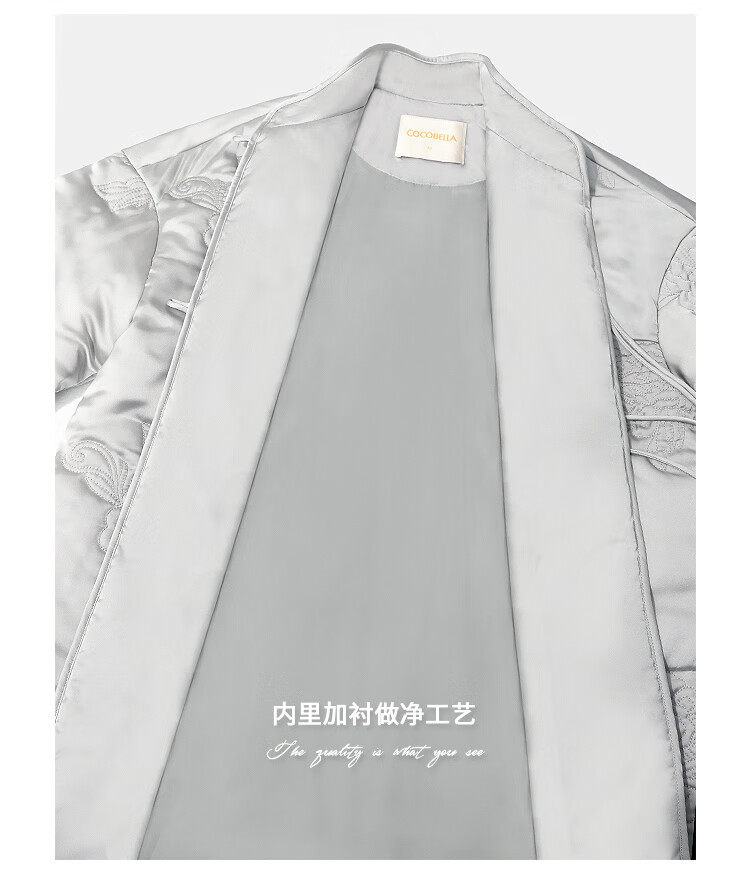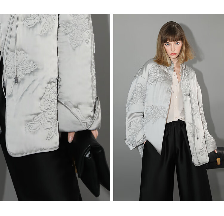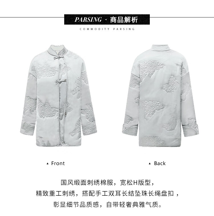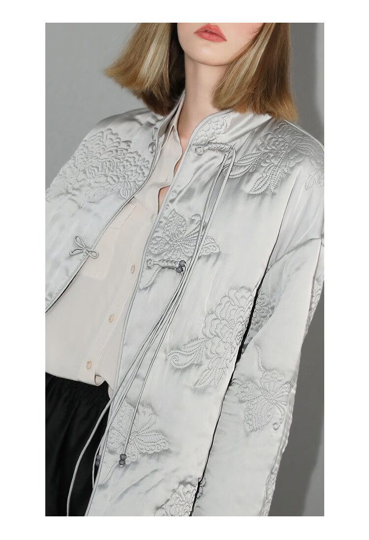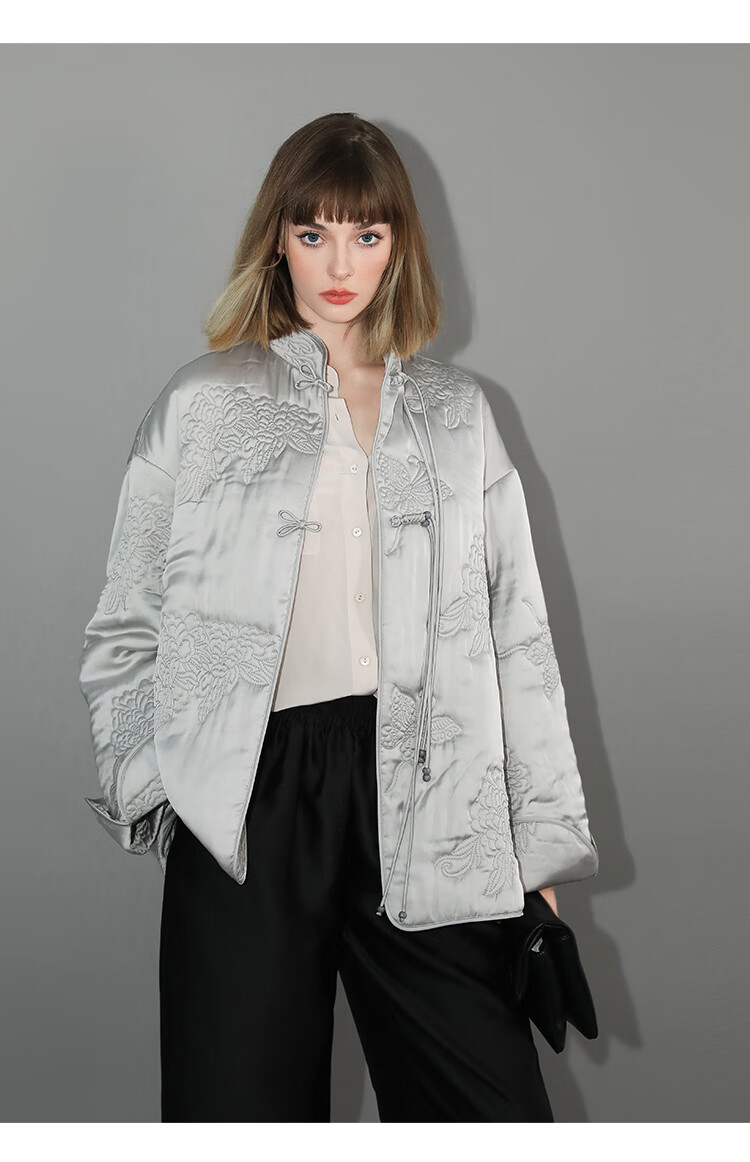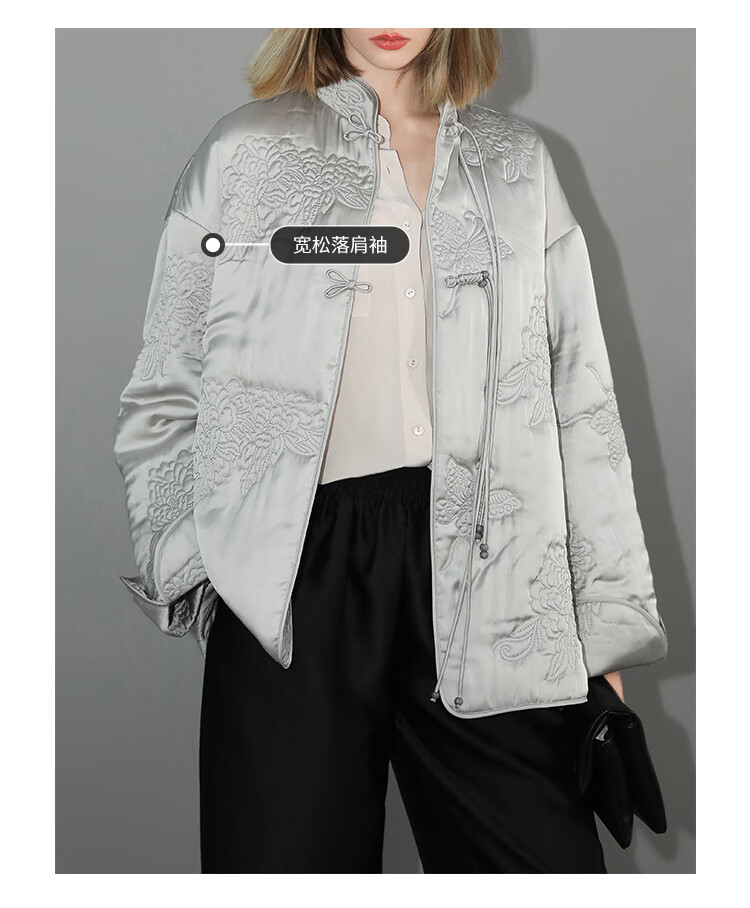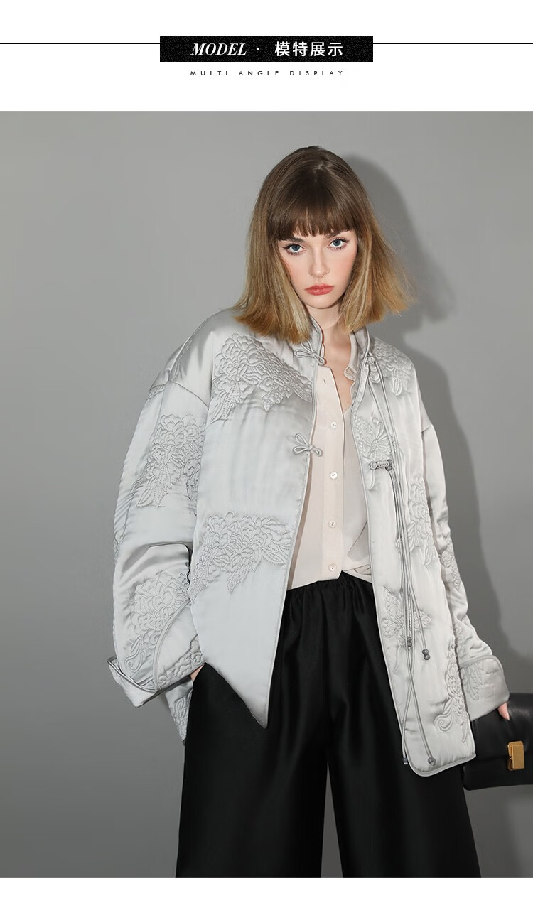 COCOBELLA新中式缎面刺绣盘扣棉服女国风轻型绗棉外套MF3002