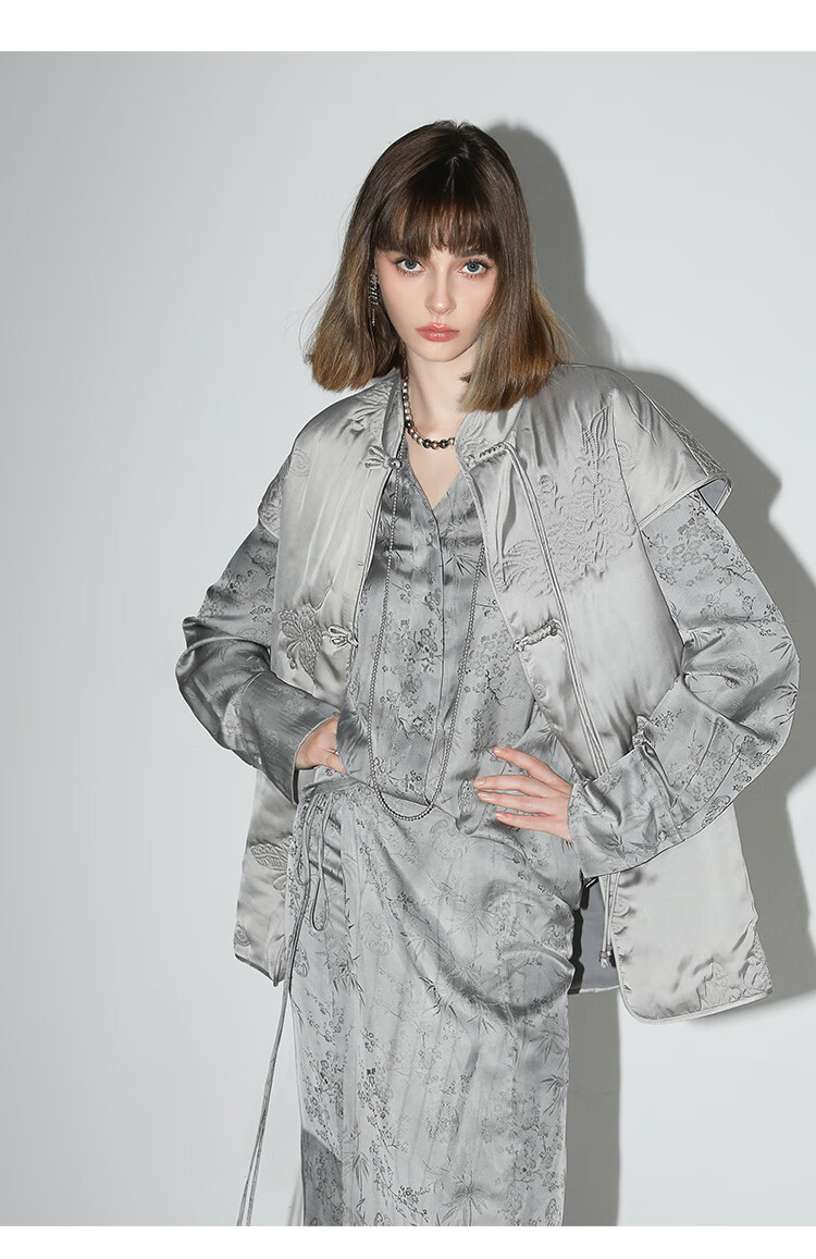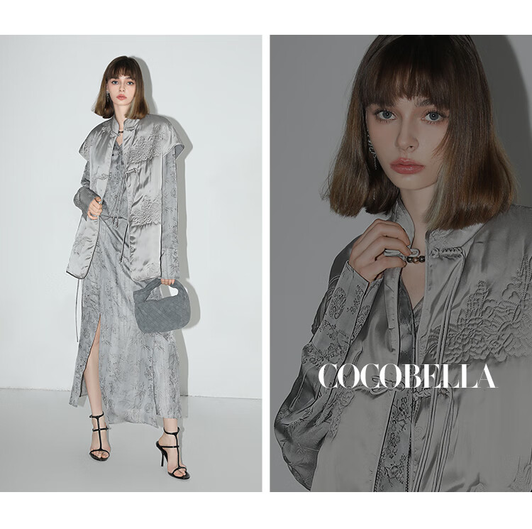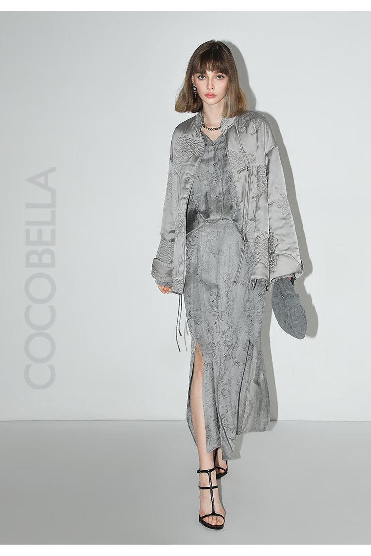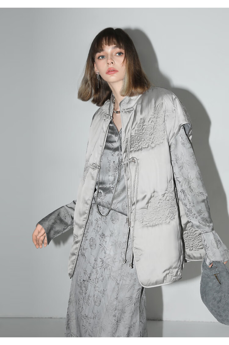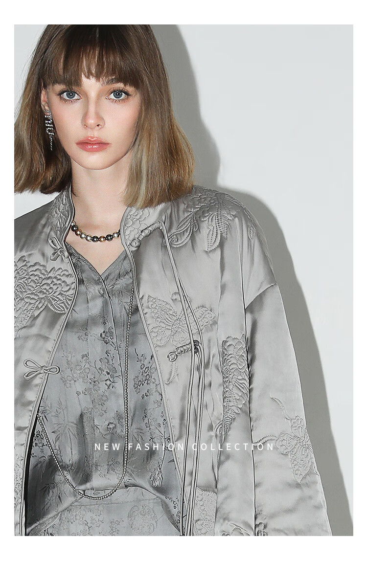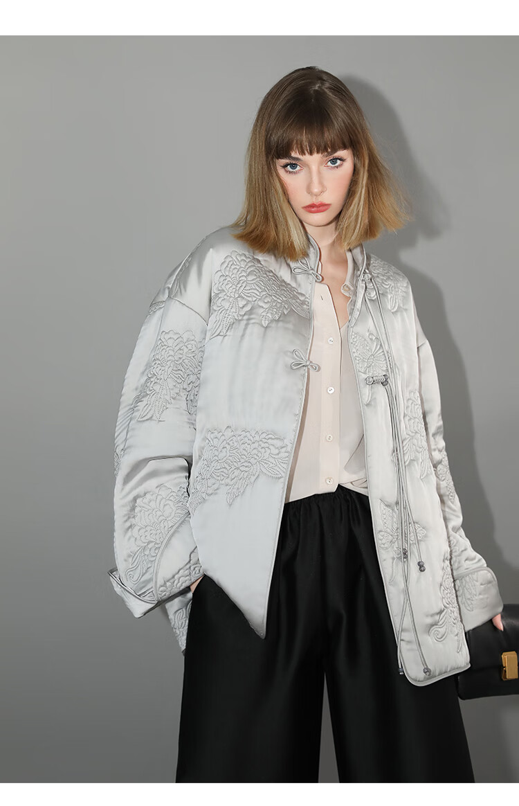 COCOBELLA新中式缎面刺绣盘扣棉服女国风轻型绗棉外套MF3002