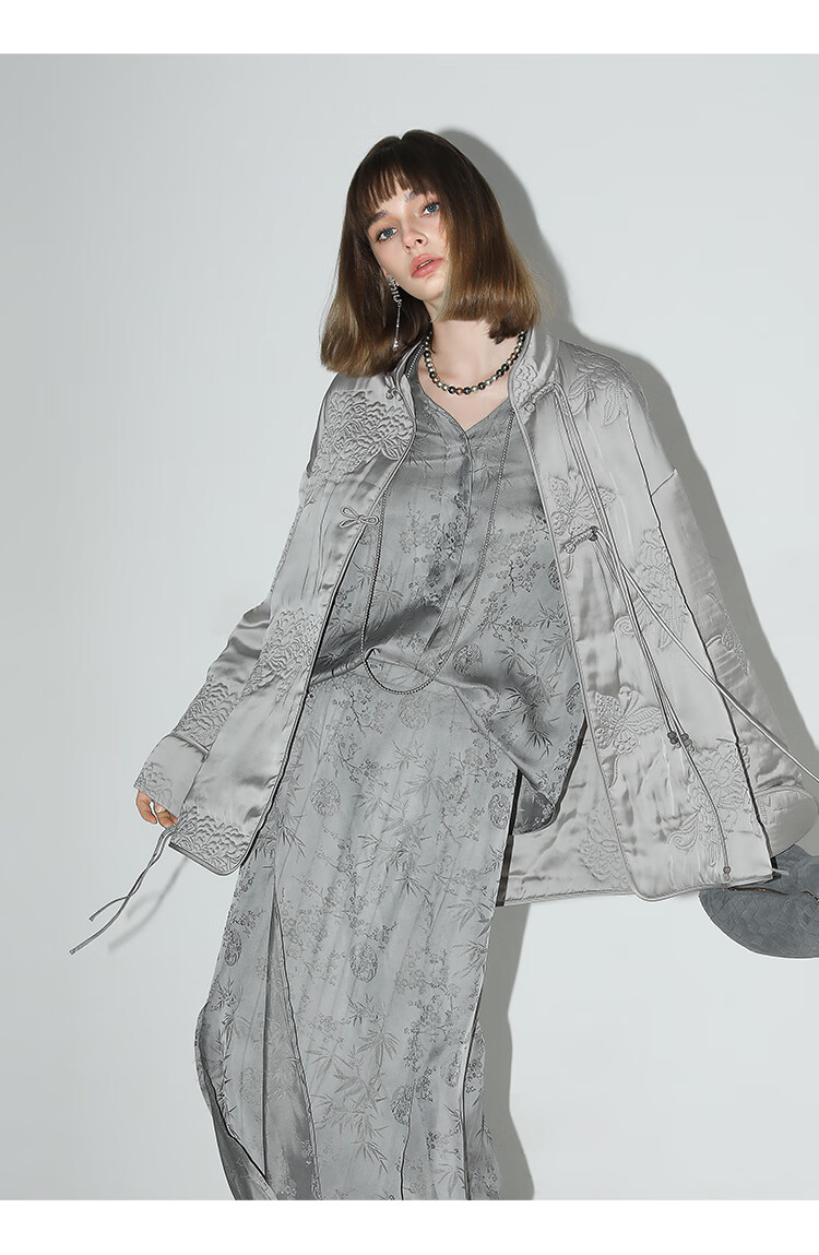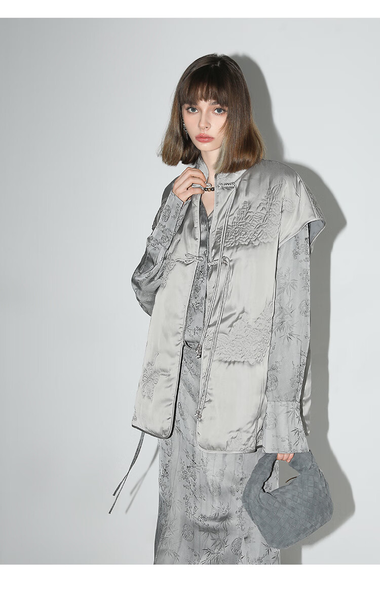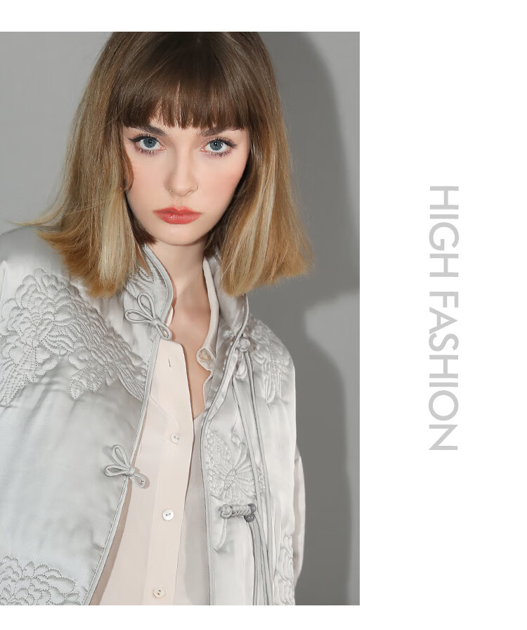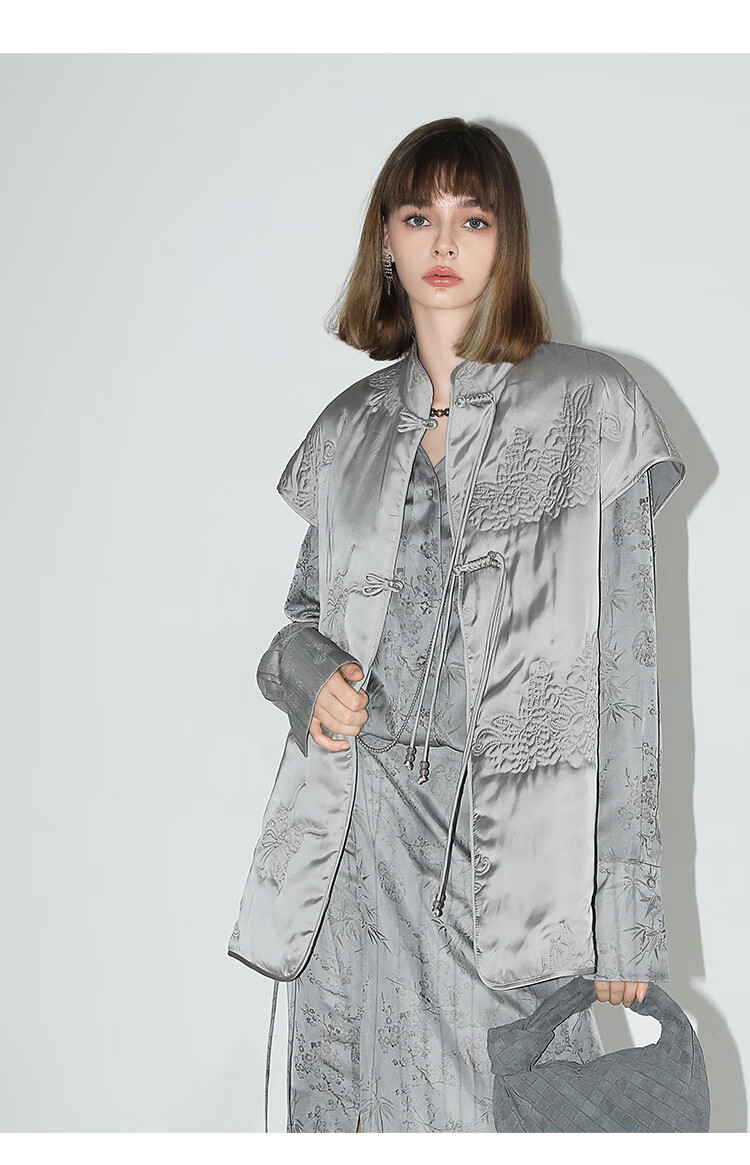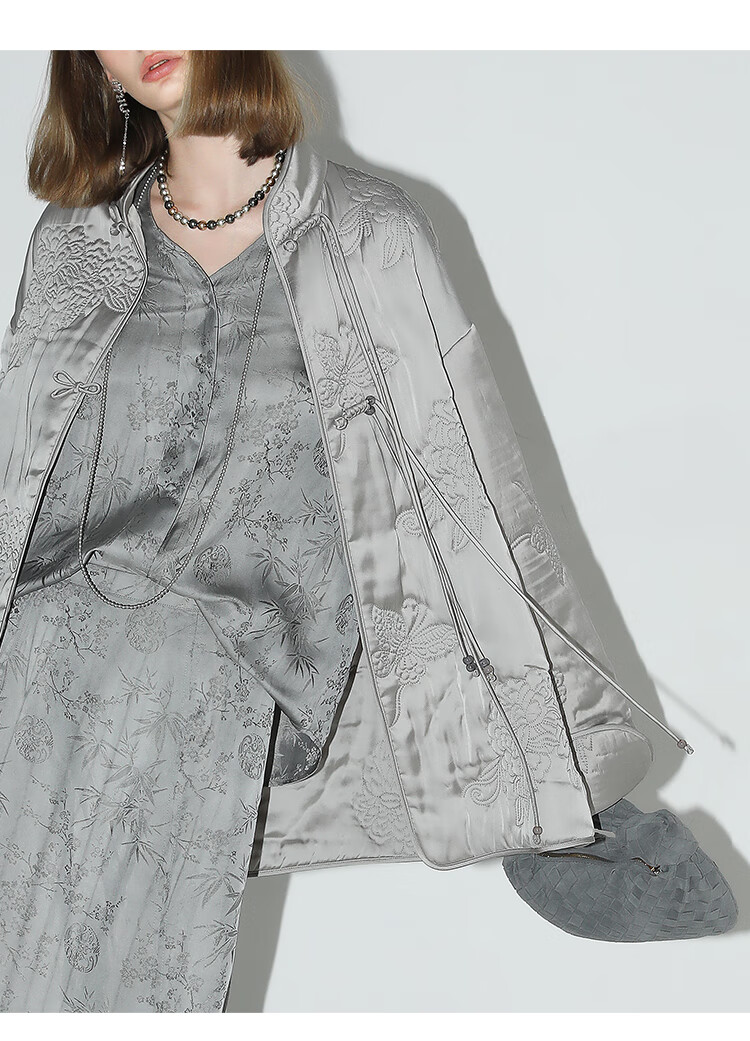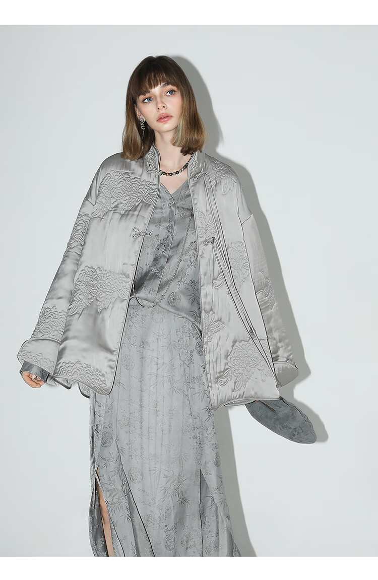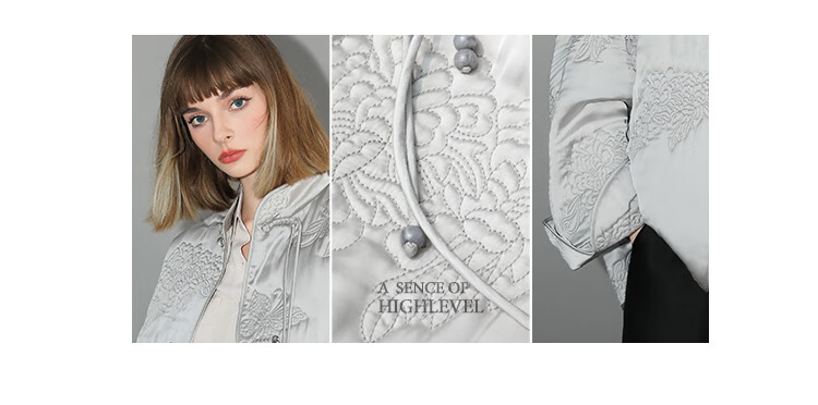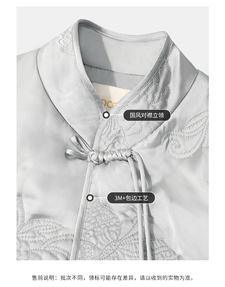 COCOBELLA新中式缎面刺绣盘扣棉服女国风轻型绗棉外套MF3002