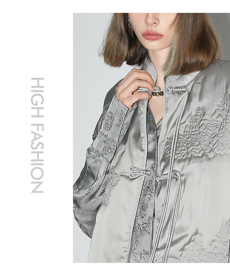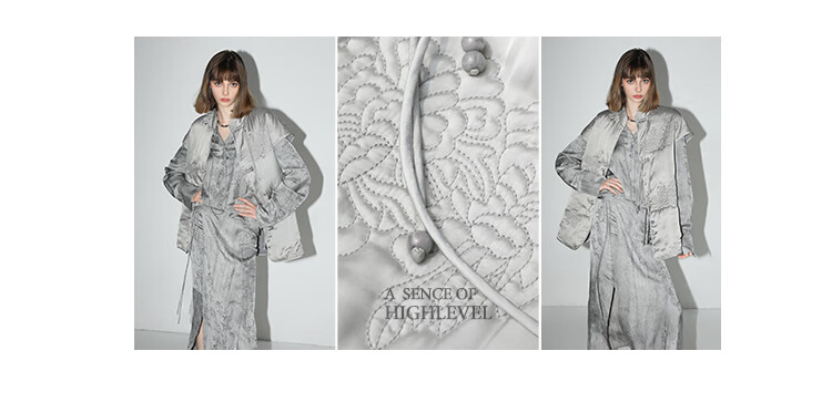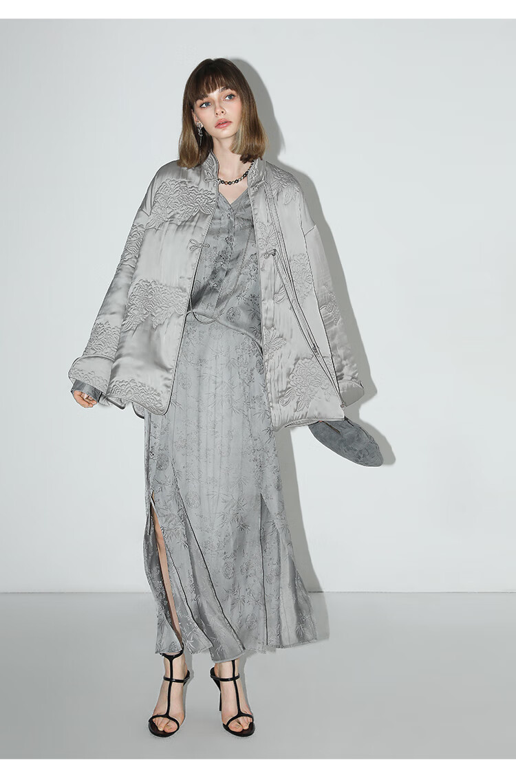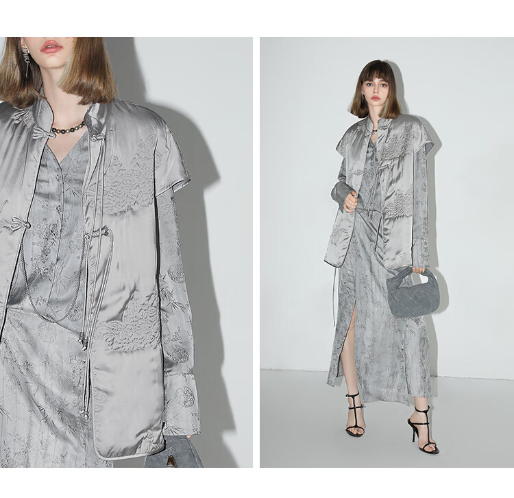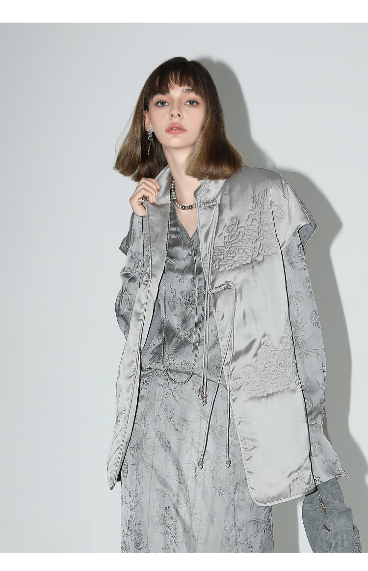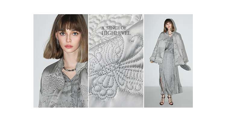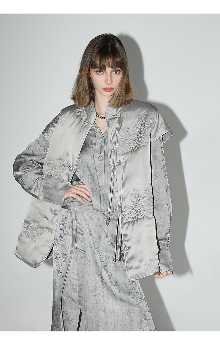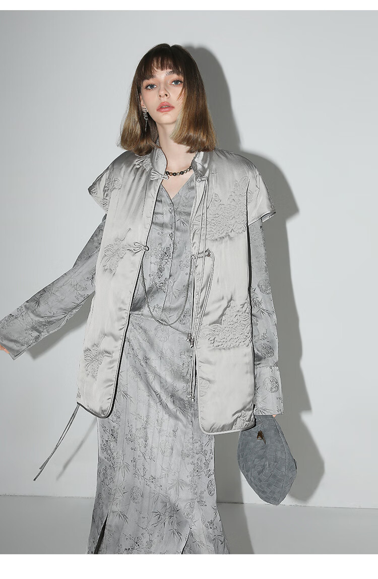 COCOBELLA新中式缎面刺绣盘扣棉服女国风轻型绗棉外套MF3002