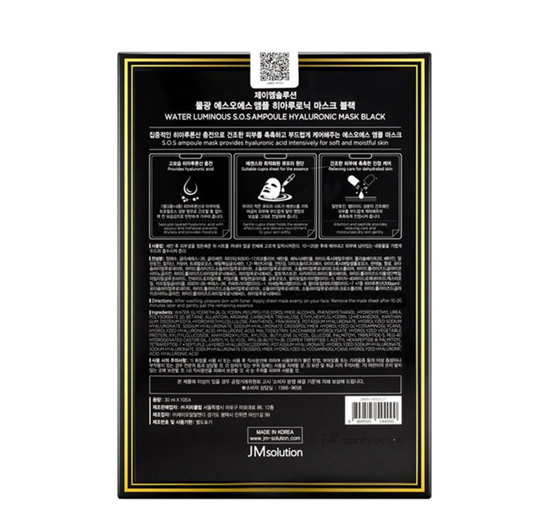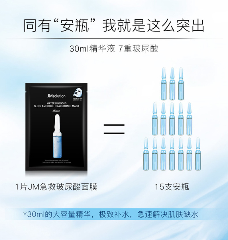 JM肌司研 黑臻玻尿酸安瓶面膜 10片/盒