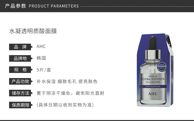 AHC 第3代玻尿酸面膜 蓝色 5片 韩国