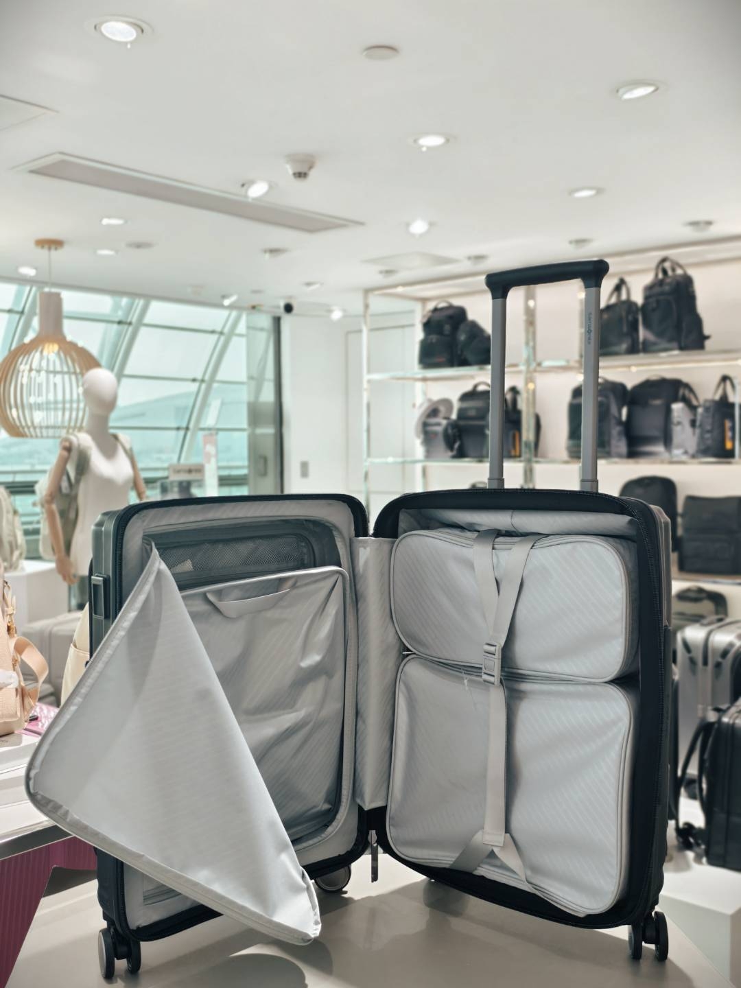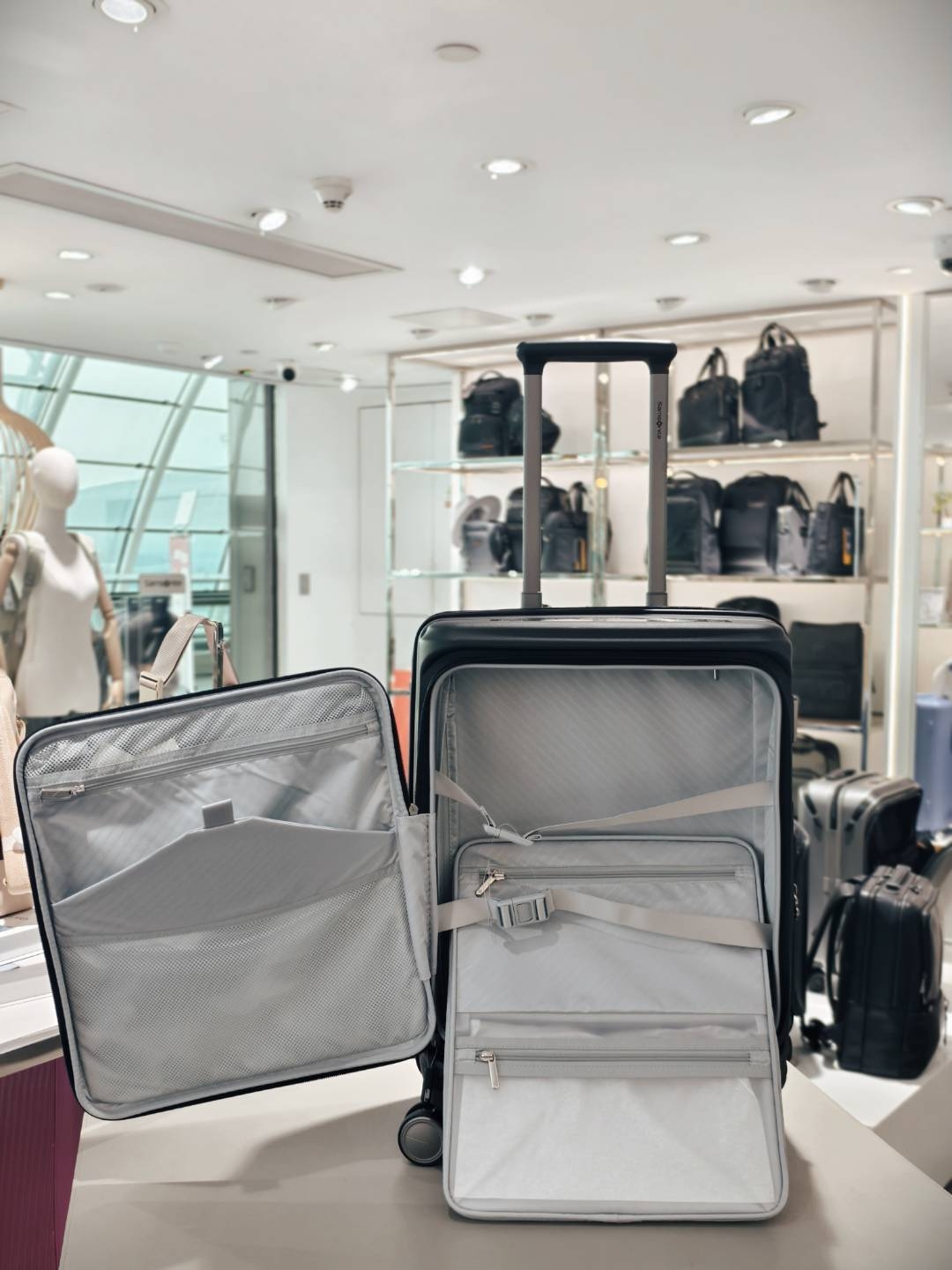 细节:20寸新秀丽拉杆箱,选用进口PP,双开收纳。