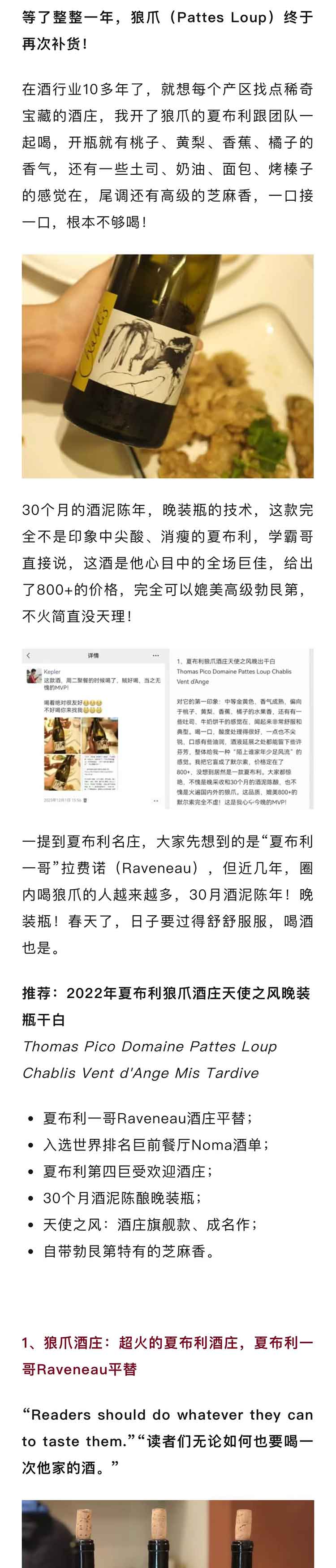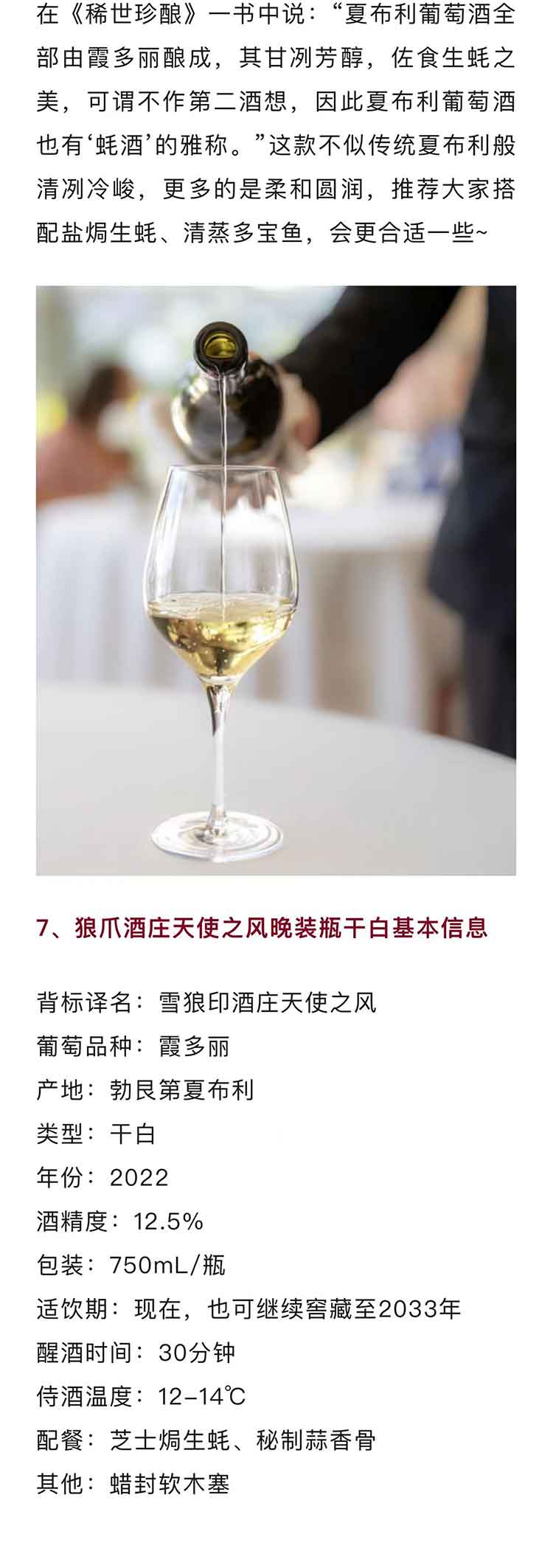 法国勃艮第夏布利2022年狼爪酒庄天使之风晚装瓶干白