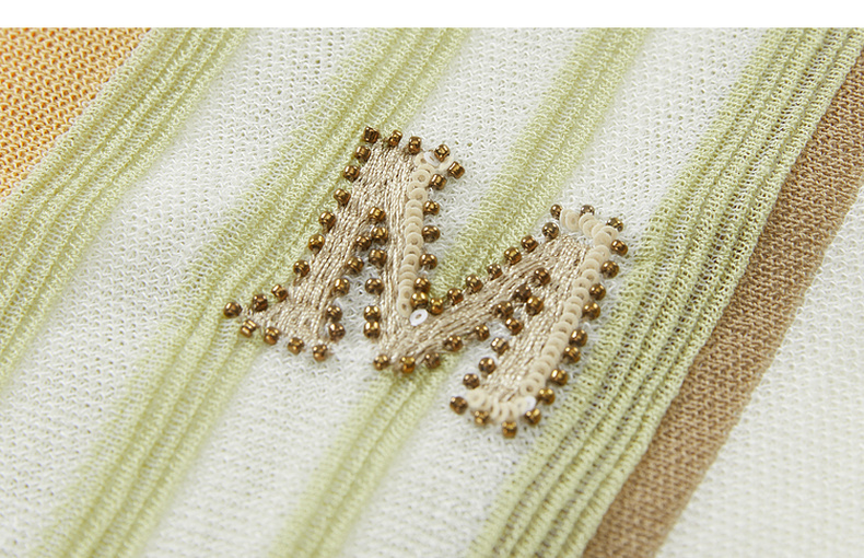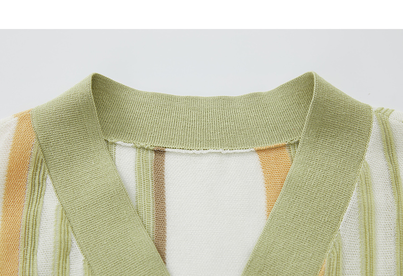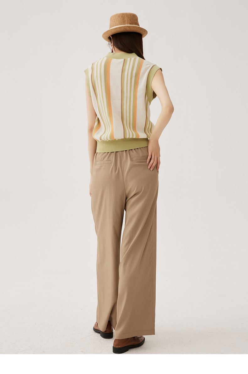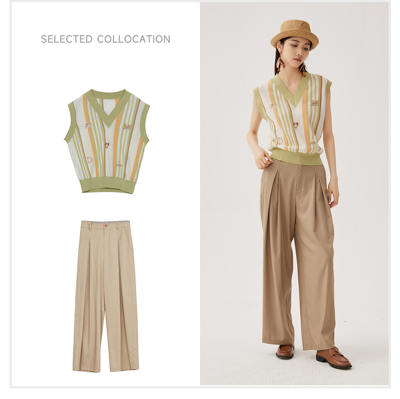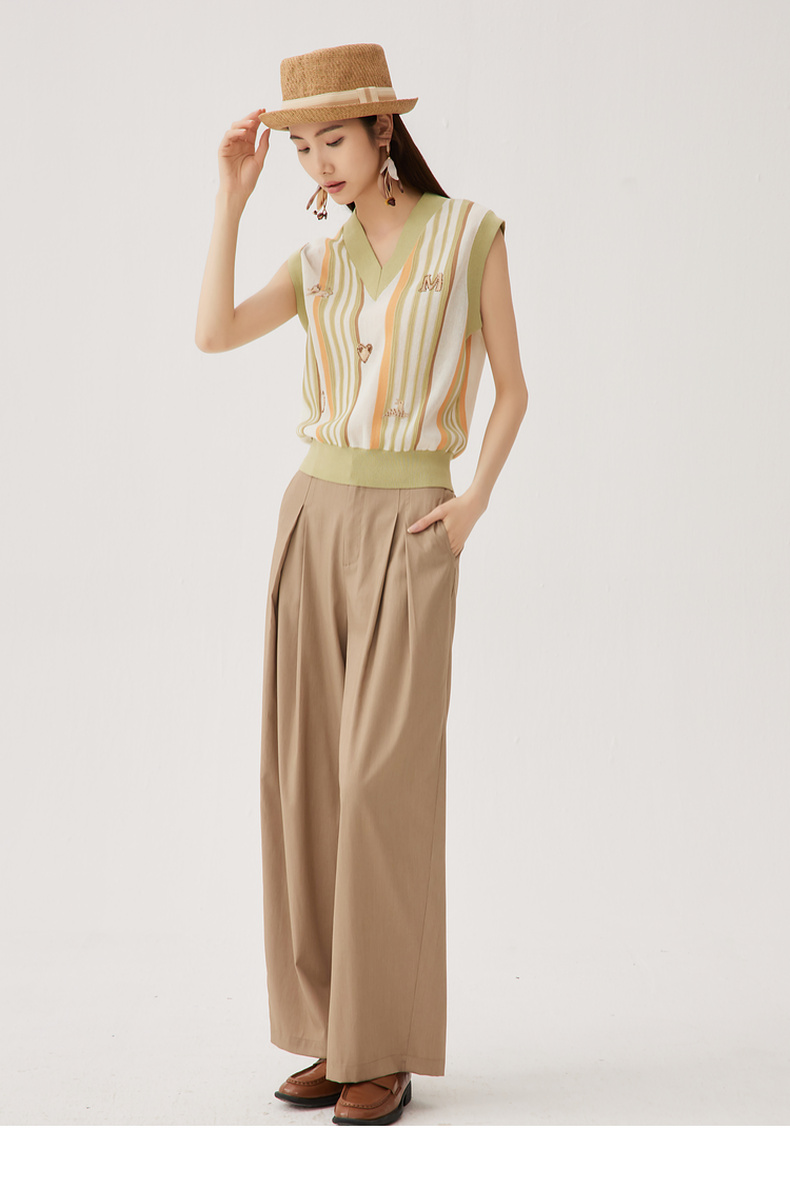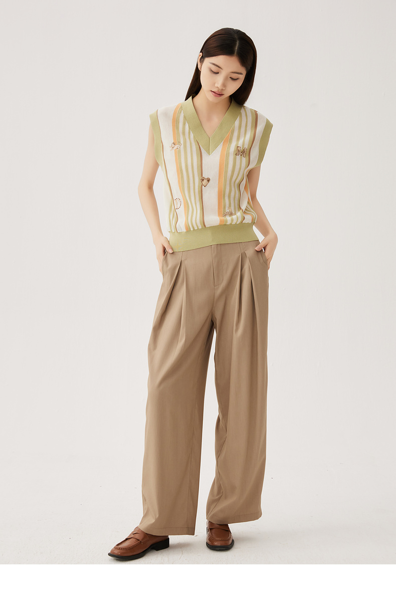 谜底针织马甲女2024秋新品文艺风彩条V领套头针织衫毛衫243MZ1260