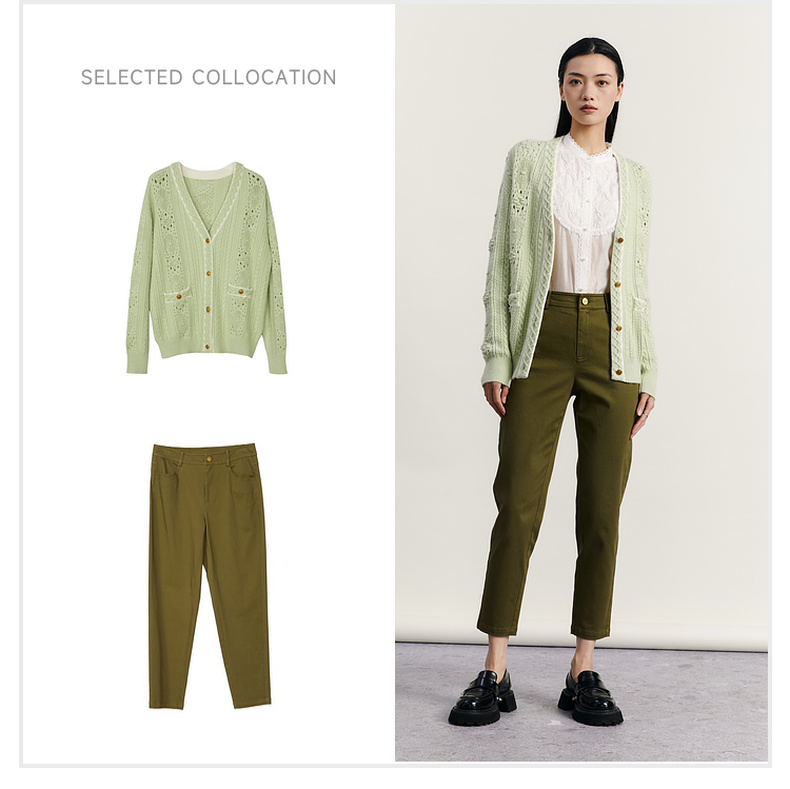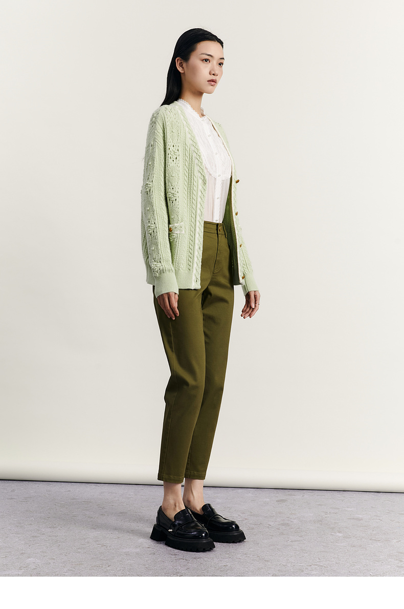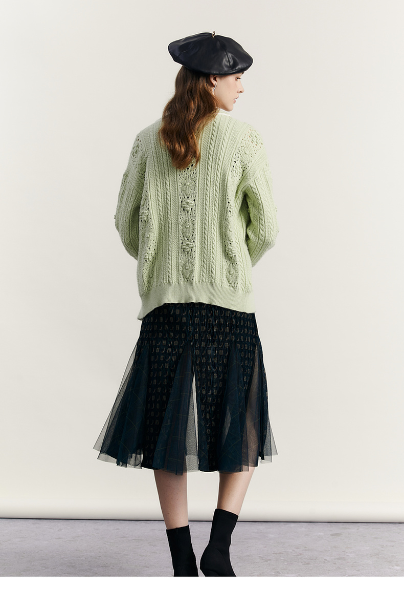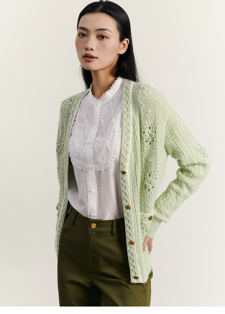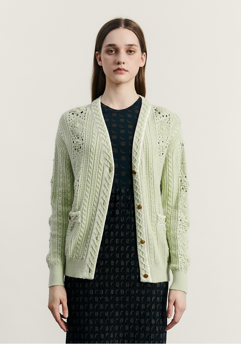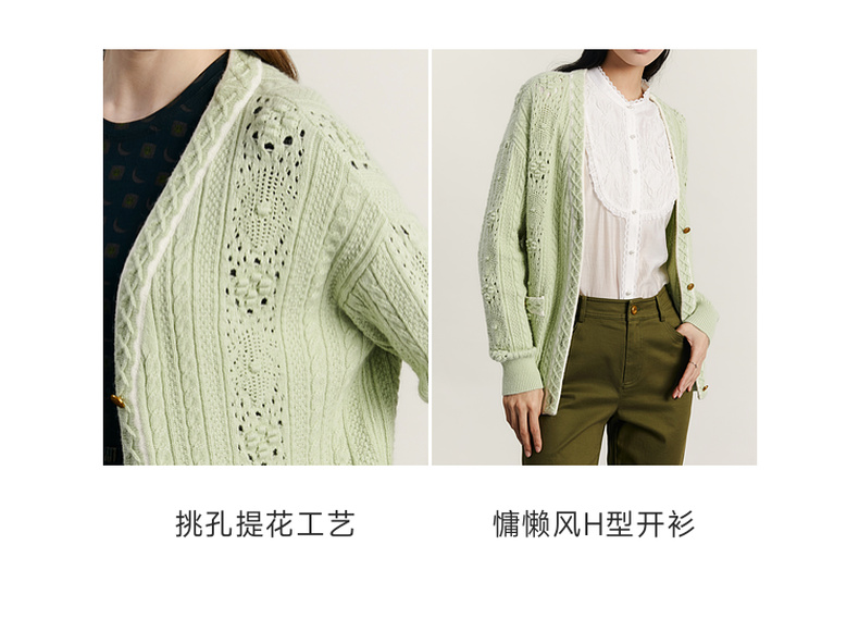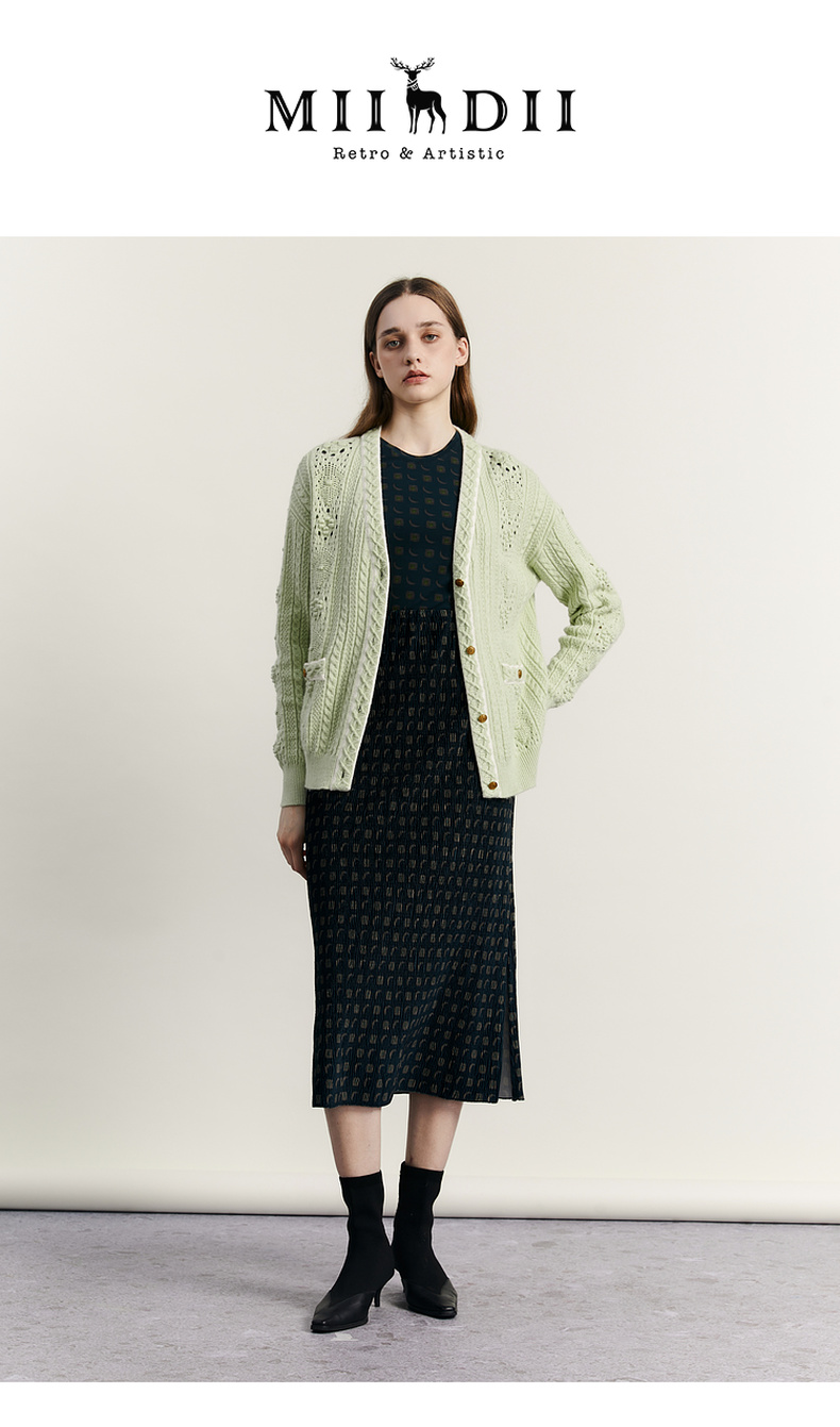 谜底V领针织开衫女2023秋新款复古文艺中长款针织衫长袖233MZ1280
