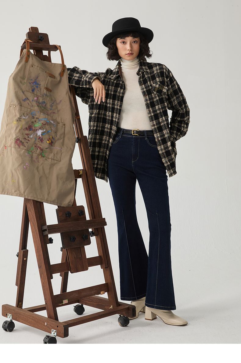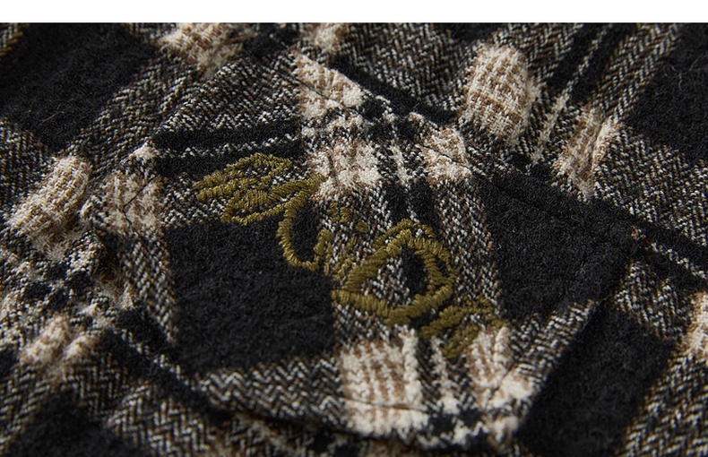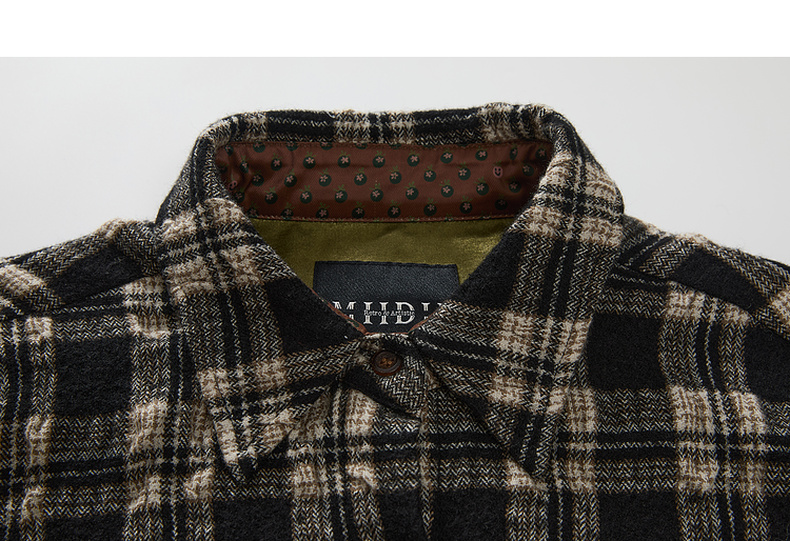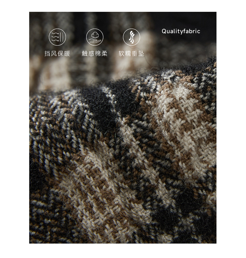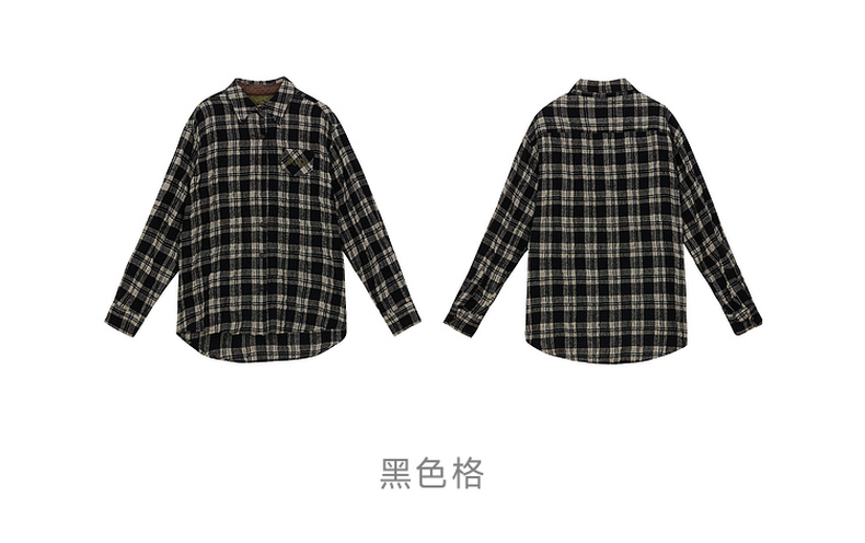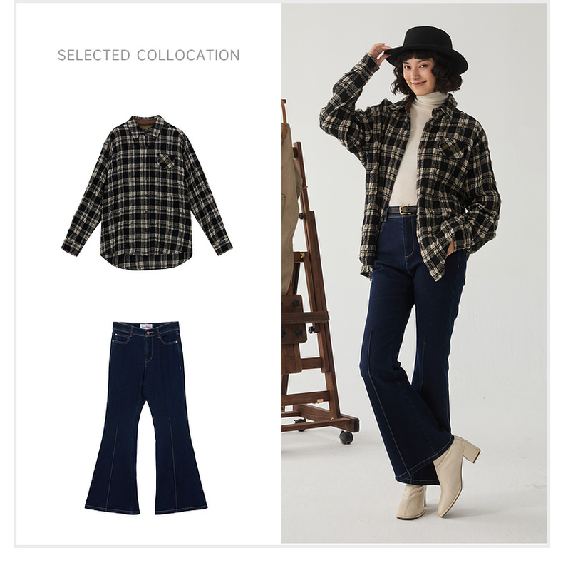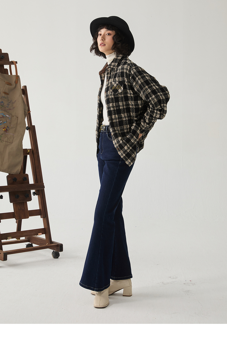 谜底黑白格子衬衫长袖女2024冬季新品宽松羊毛混纺衬衣244GC1484