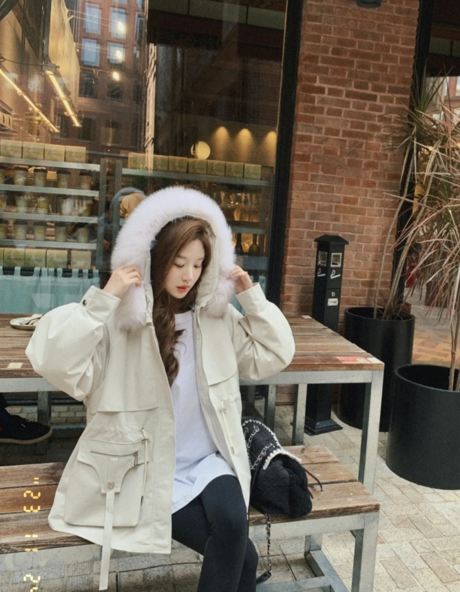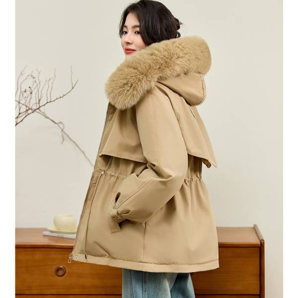 【Vogue Feminity 大毛领加厚派克服】连帽毛领设计 既可拆卸也可以御寒保暖 腰部抽绳设计 遮肉显瘦