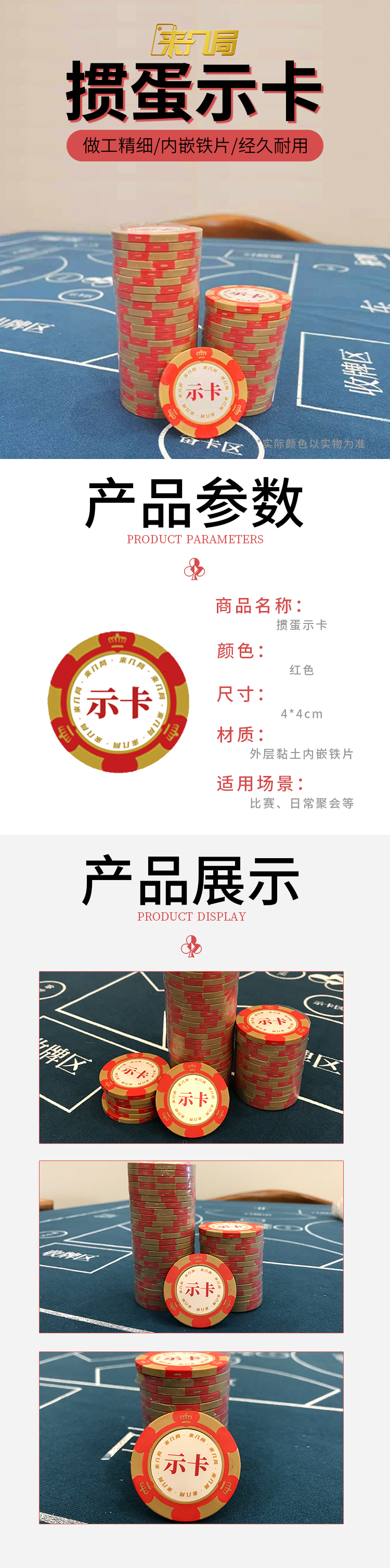 筹码币掼蛋扑克牌麻将馆示卡棋牌室专用专业